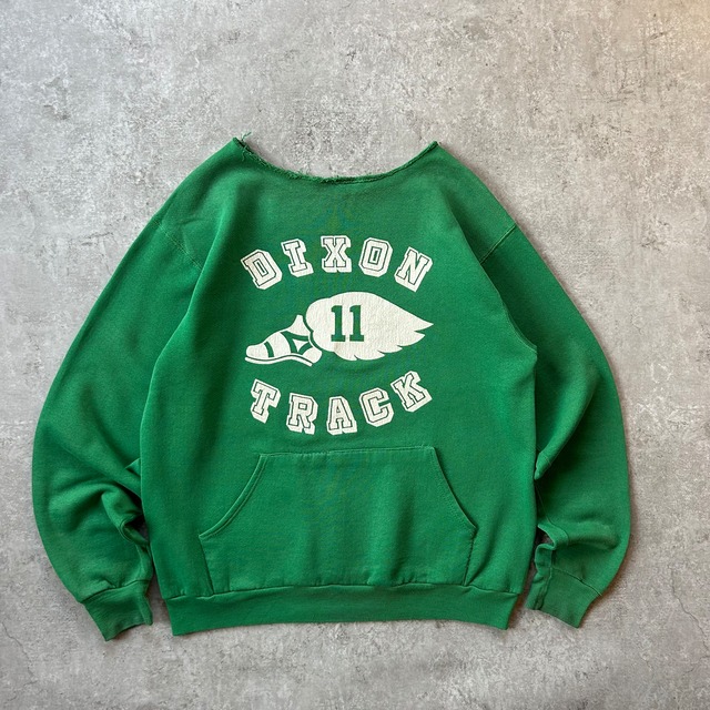 ▪️一言▪️ 1980年代〜1990年代頃のスウェットです。 スウェット/パーカー系の中でも人気の高いウィングフットのプリントの一着。 ボディの質感的に80年代後半〜90年代頃かと思いますが、プリントは古着好きに刺さるデザインかと。 フードが欠損しておりそのまま着ることもできますが、お好みで後付けパーカーにしても◎ ▪️ブランド▪️ unknown ▪️カラー▪️ グリーン 緑 ▪️年代▪️ 1980年代-1990年代頃 ▪️表記サイズ▪️ L相当 ▪️実寸▪️ 肩幅:50cm 身幅:55cm 身丈:64.5cm ▪️生産国▪️ (恐らく)USA製 ▪️素材▪️ cotton/polyester 50/50% ▪️状態▪️ ・フードが欠損しております ・ポケットの縫製にリペア跡がございます ・背面に汚れがございます *古着慣れされている方は問題なく着て頂けると思います *その他、細かな見落としがある可能性がございます 古着 ヴィンテージ ビンテージ