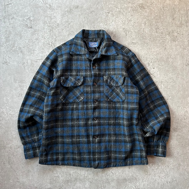 50s ペンドルトン ボードシャツ/ウールシャツ M ブルー×ブラック 好配色