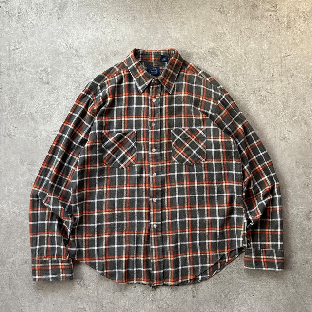 70s80s シアーズ ネルシャツ L チャコールグレー×オレンジ