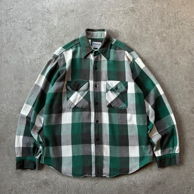 70s フロストプルーフ ネルシャツ USA製 M グリーン×ブラック