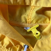 アウトドアアイテムらしい発色の良いイエローボディで、アノラックとしては着丈が短くドローコードを使用する必要のない丈感、サイズ感が◎