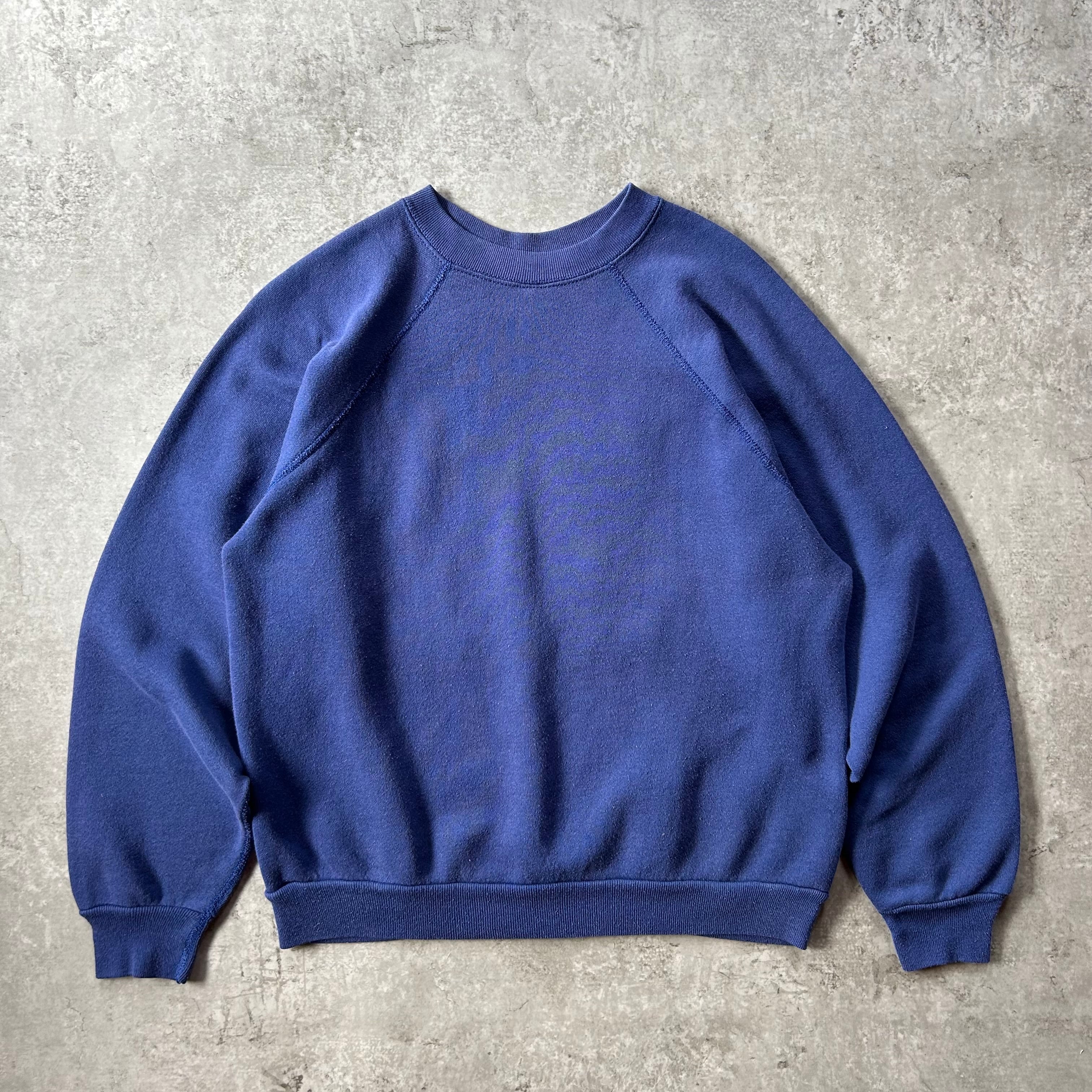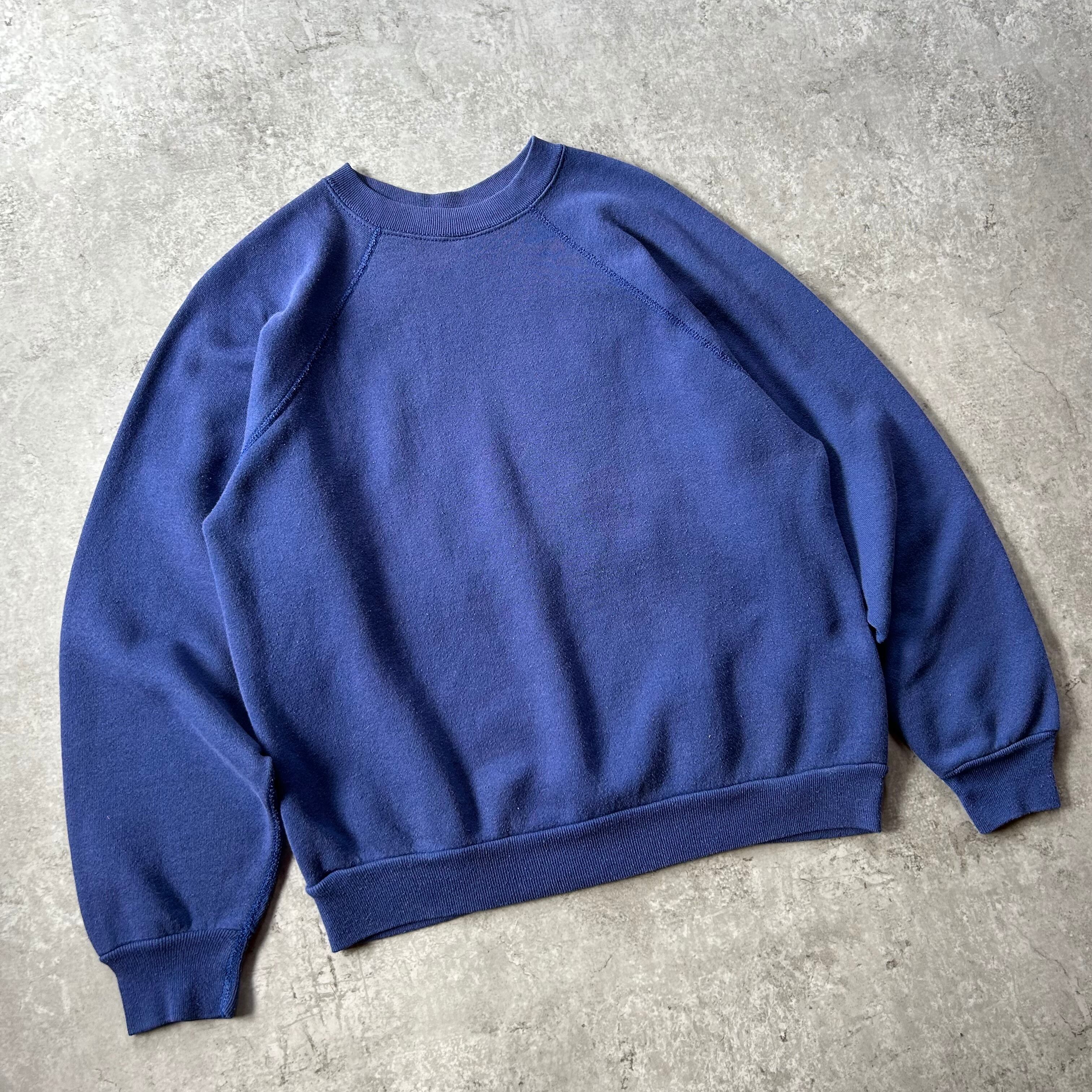 70s 無地スウェット USA製 ネイビー L相当 脇下ガゼット