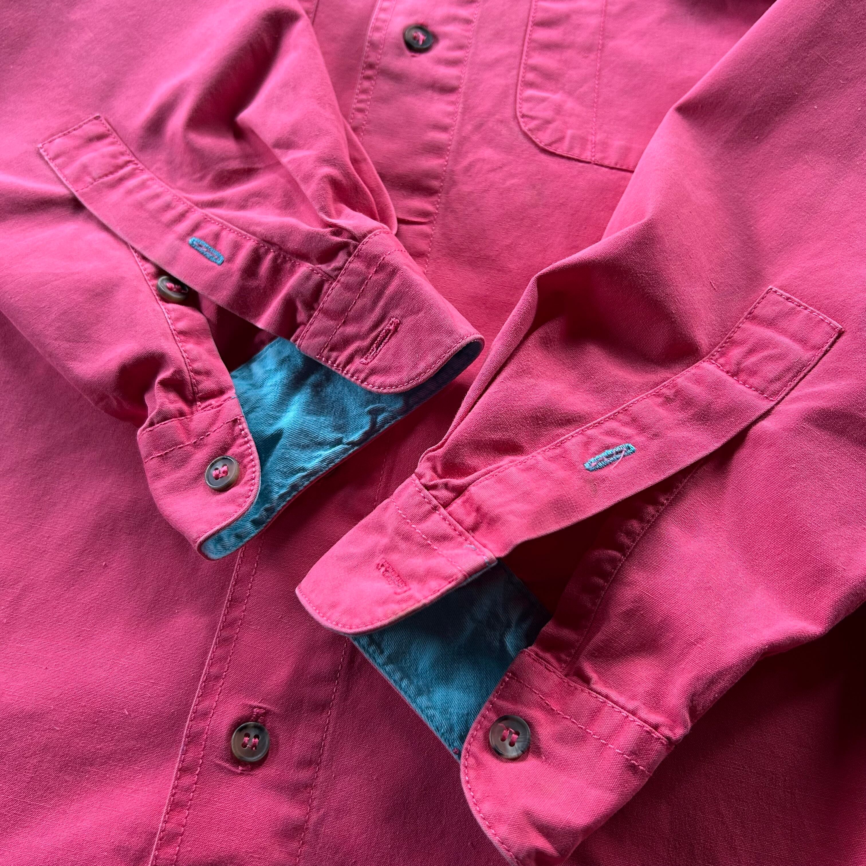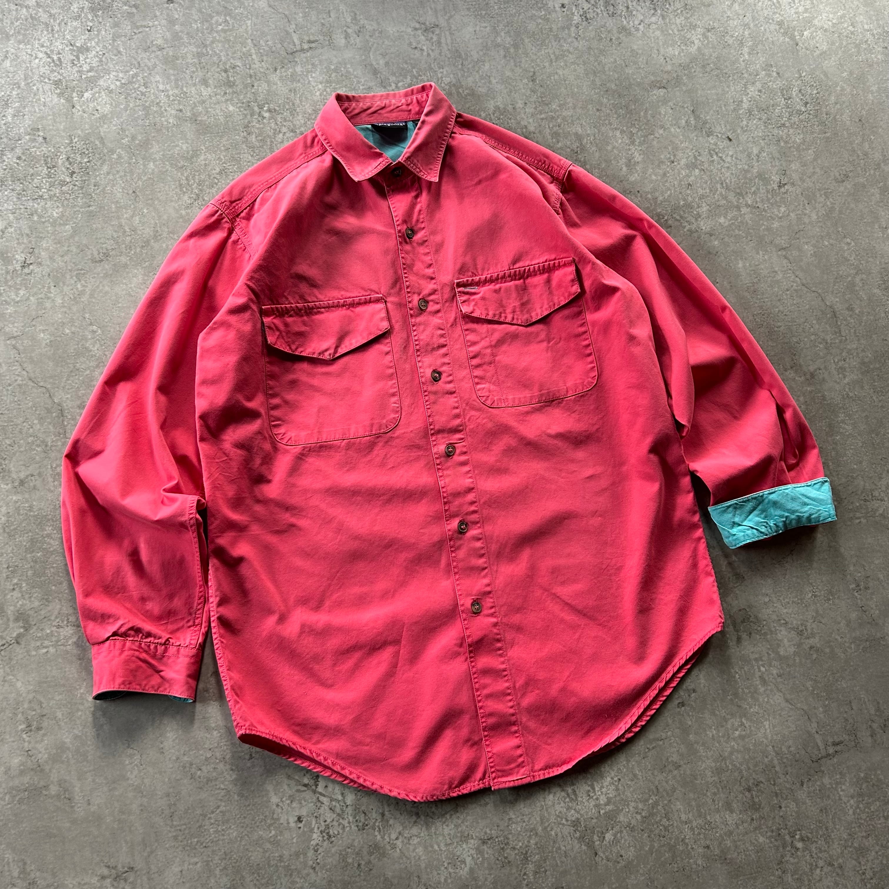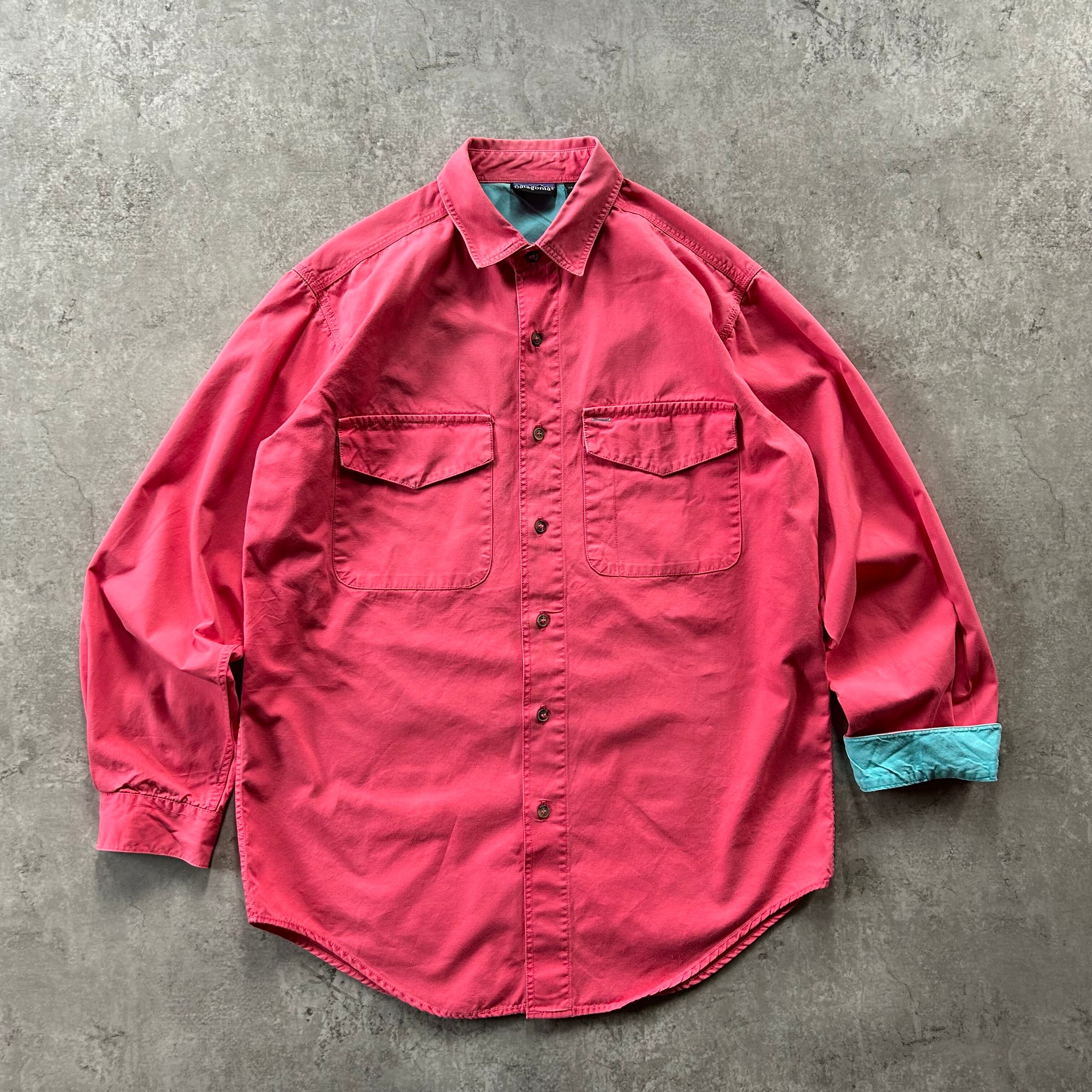 90s パタゴニア コットンシャツ/ワークシャツ ピンク×ターコイズ S