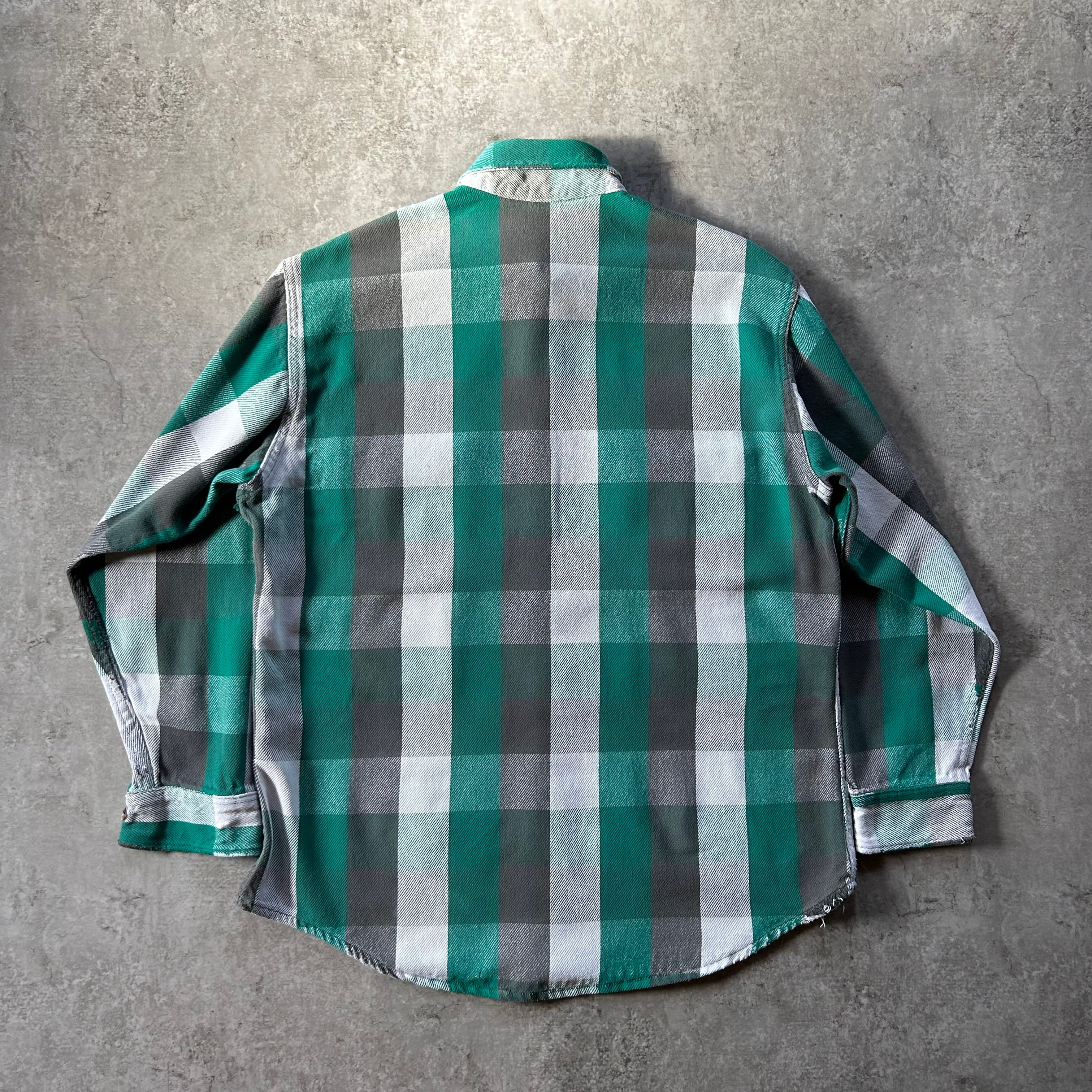 80s90s BIG MAC ヘビーネルシャツ USA製 L グリーン×ブラック