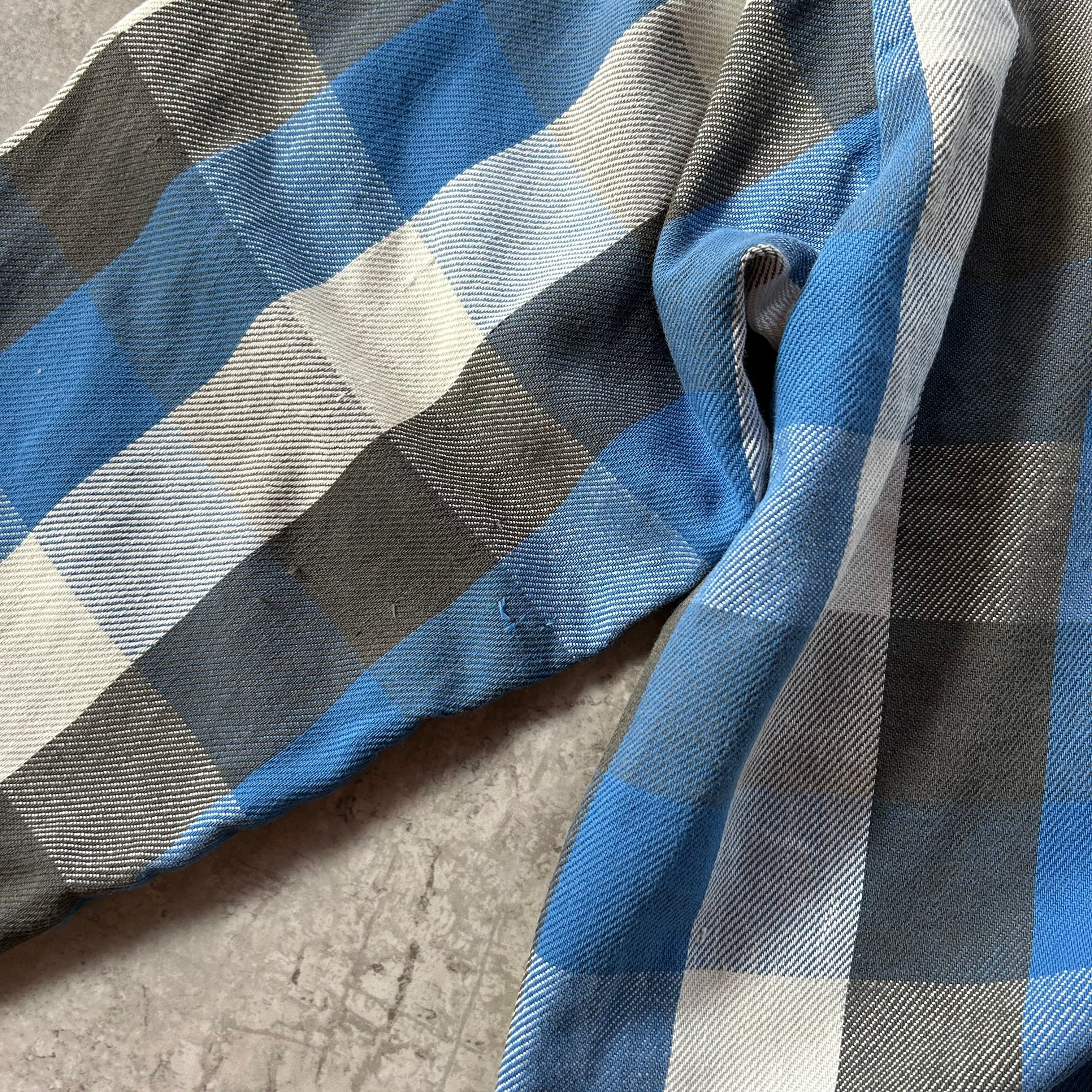 70s- ファイブブラザー ネルシャツ USA製 2XL ブルー×ブラック