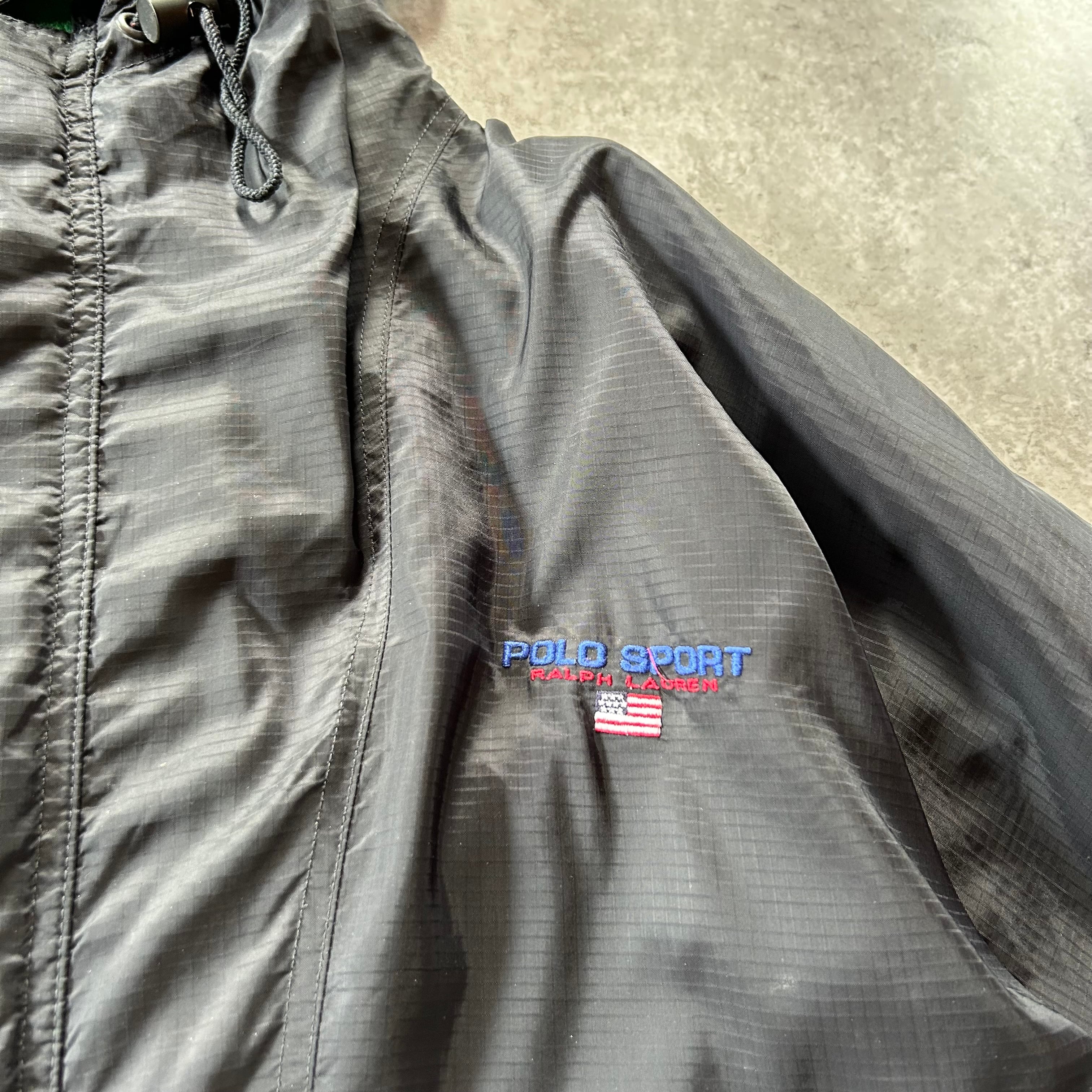 90s ポロスポーツ マウンテンパーカー ブラック 裏地フリース L