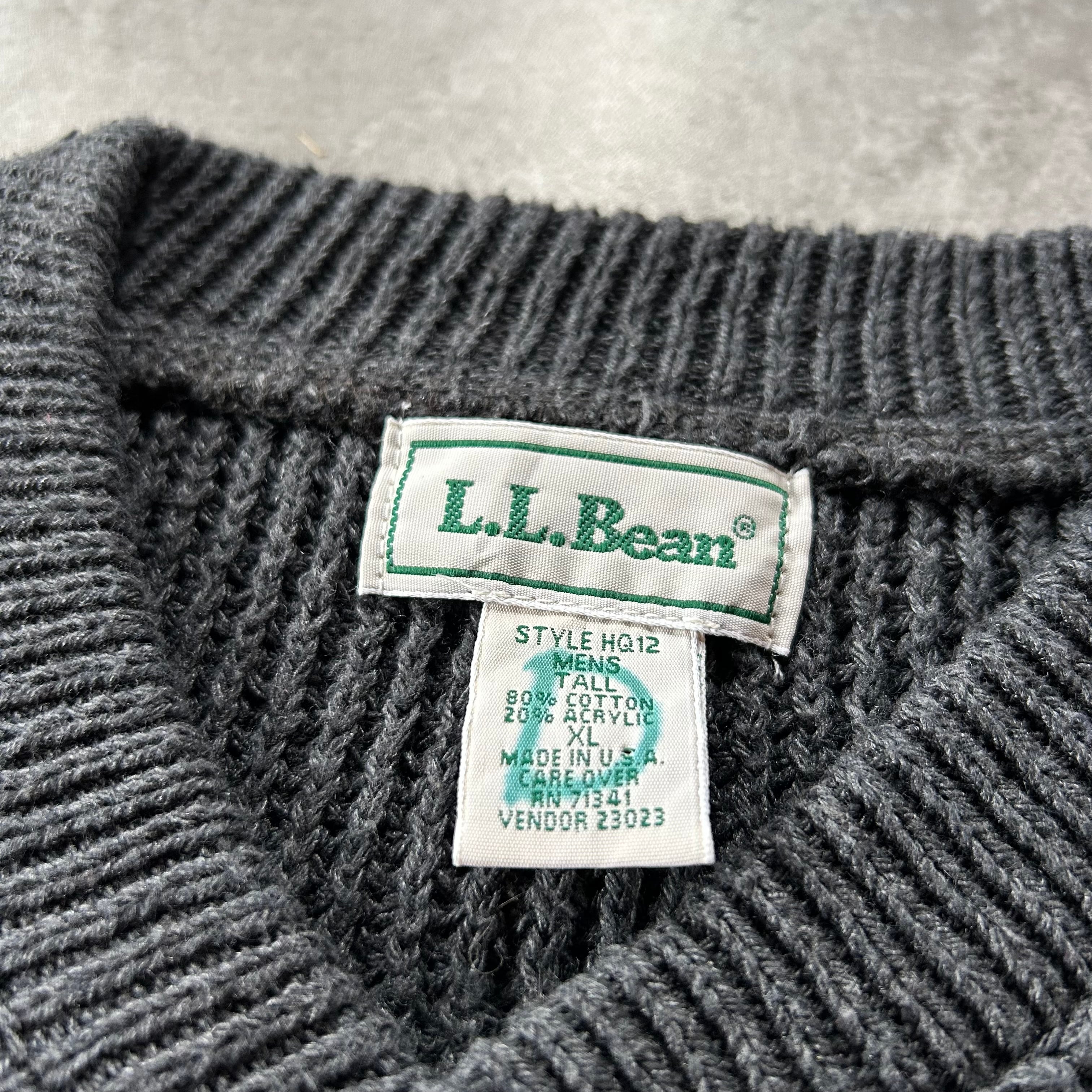 80s90s エルエルビーン コットンニット USA製 フェードブラック XL