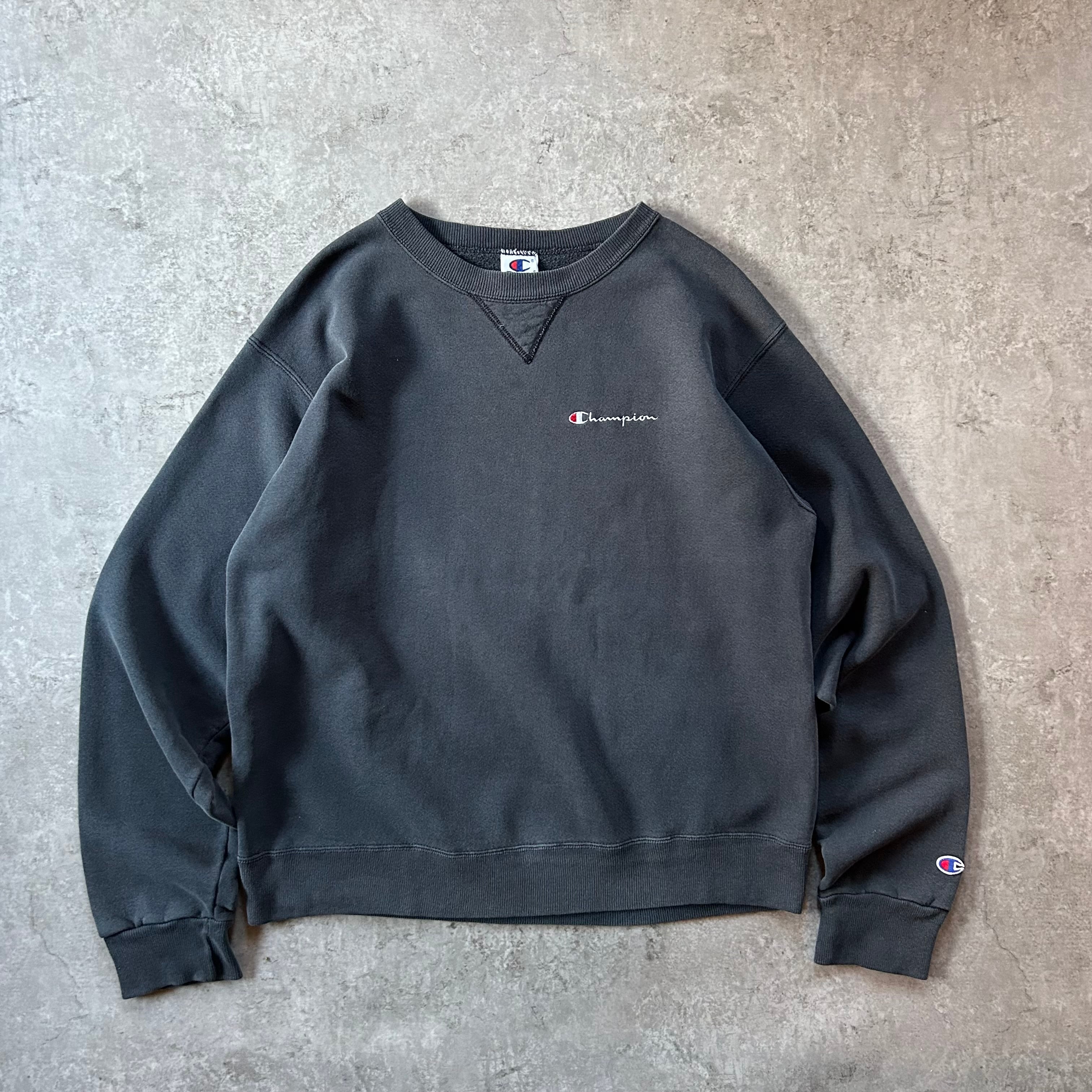 90s チャンピオン 前Vスウェット USA製 墨黒 フェードブラック L