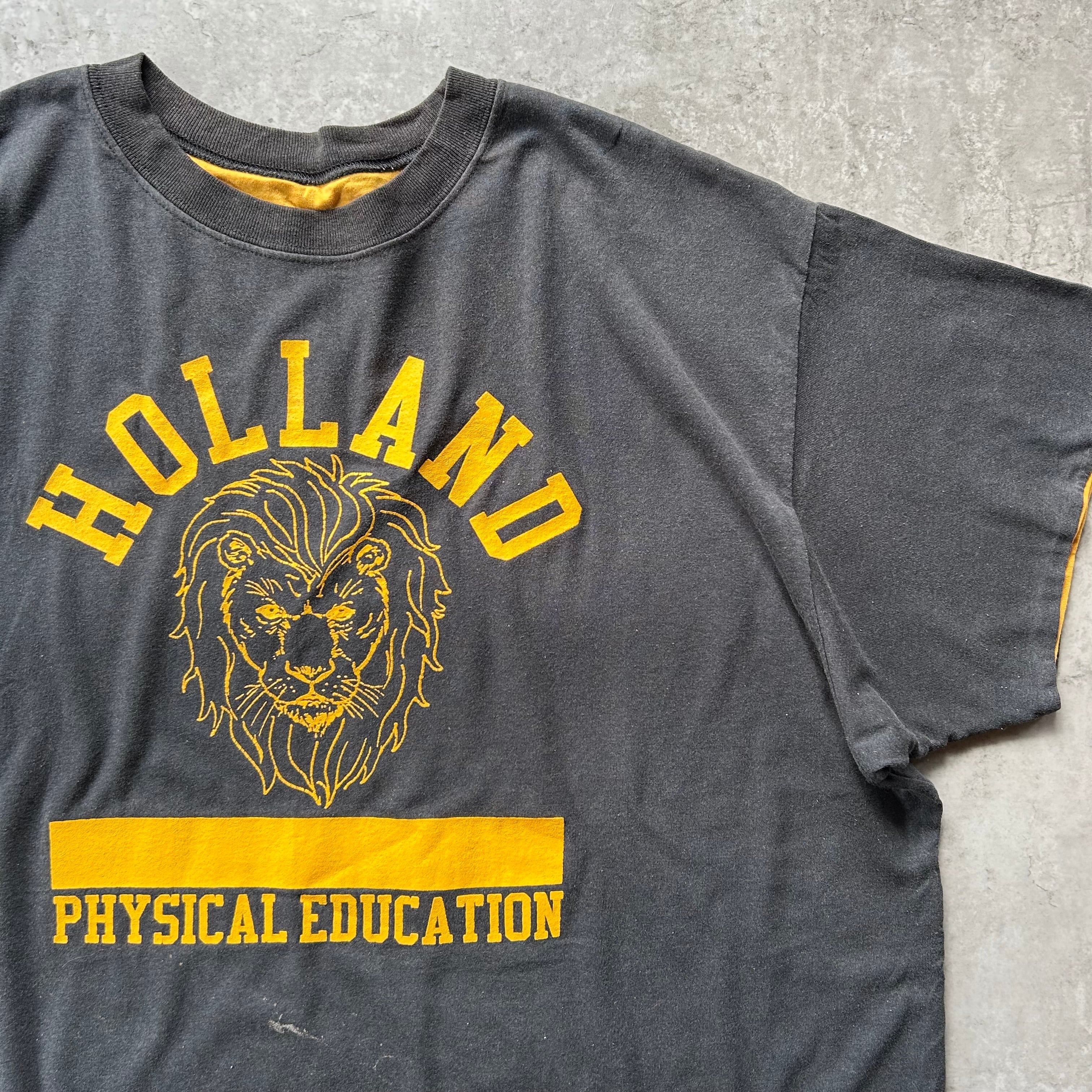 70s80s リバーシブルtシャツ USA製 ブラック×イエロー 両面 アニマル