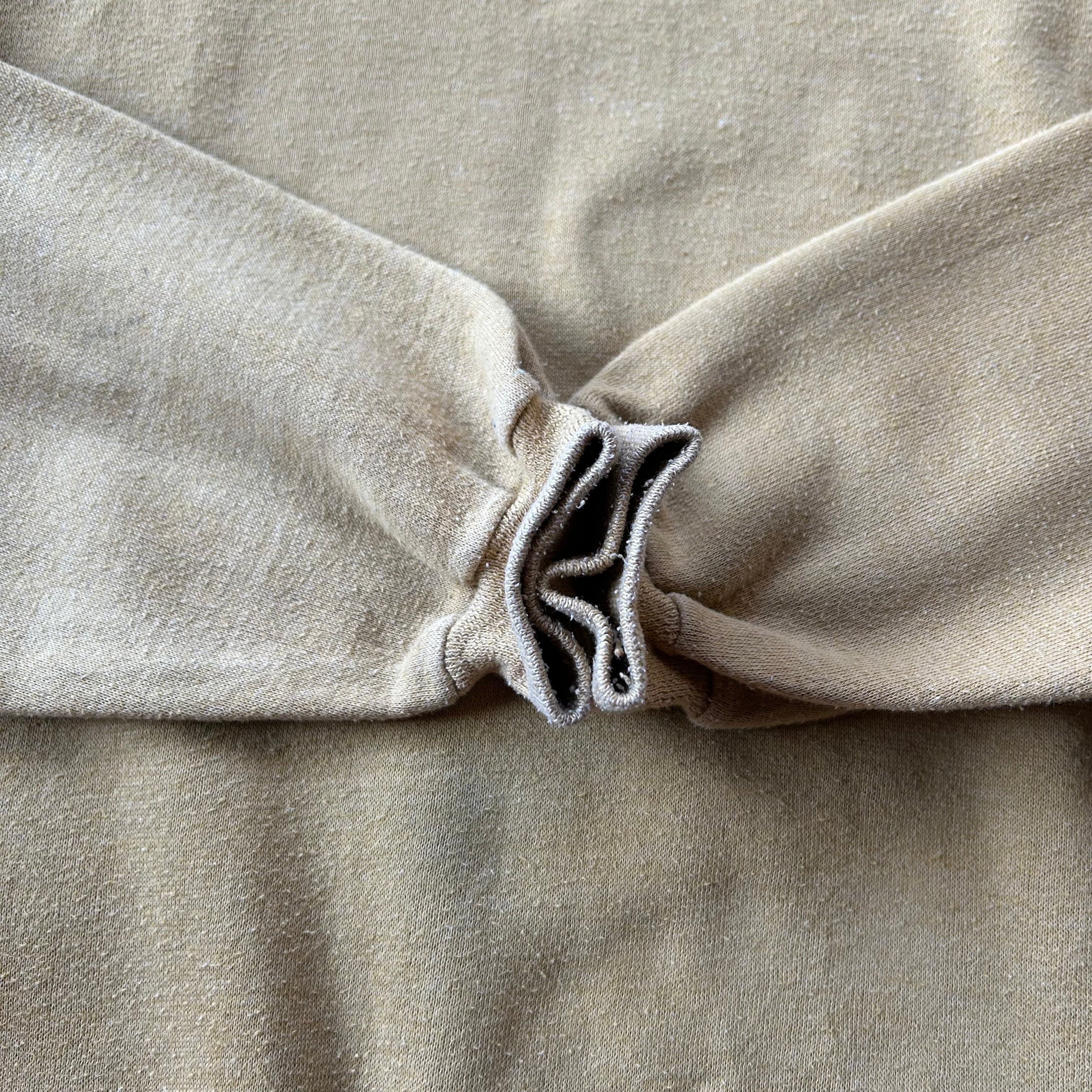 タグがなければ60年代以前のヴィンテージスウェットにも見える雰囲気あるプレーン/ブランクのマスタードボディ。