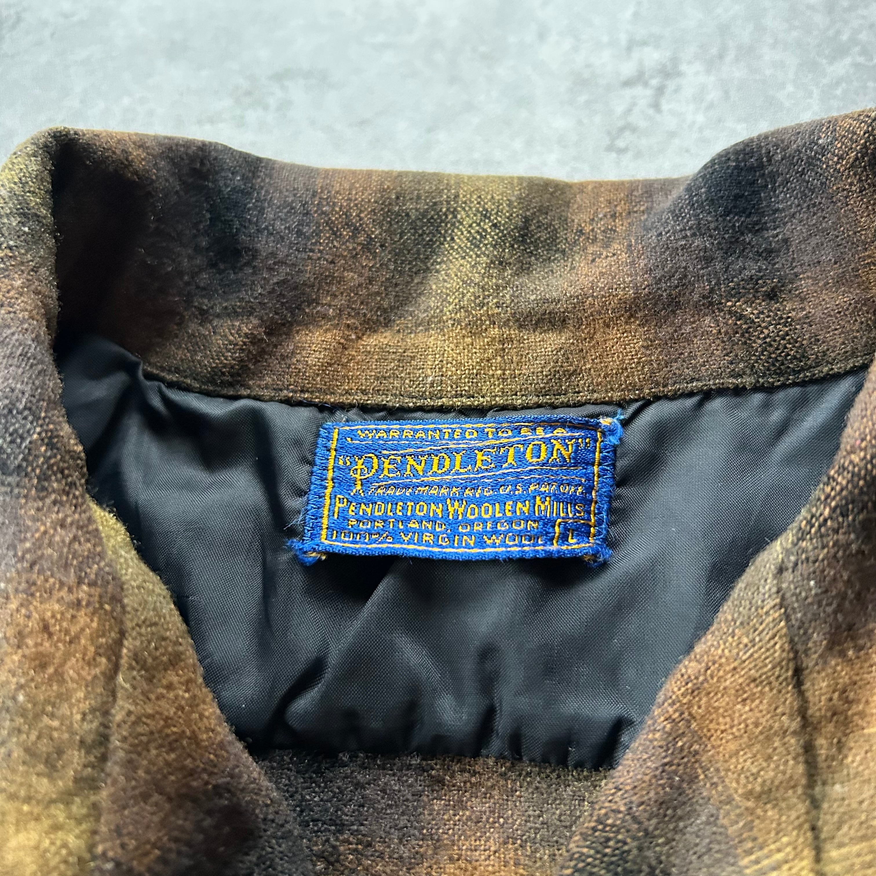 60s ペンドルトン ボードシャツ/ウールシャツ L オンブレチェック ブラウン