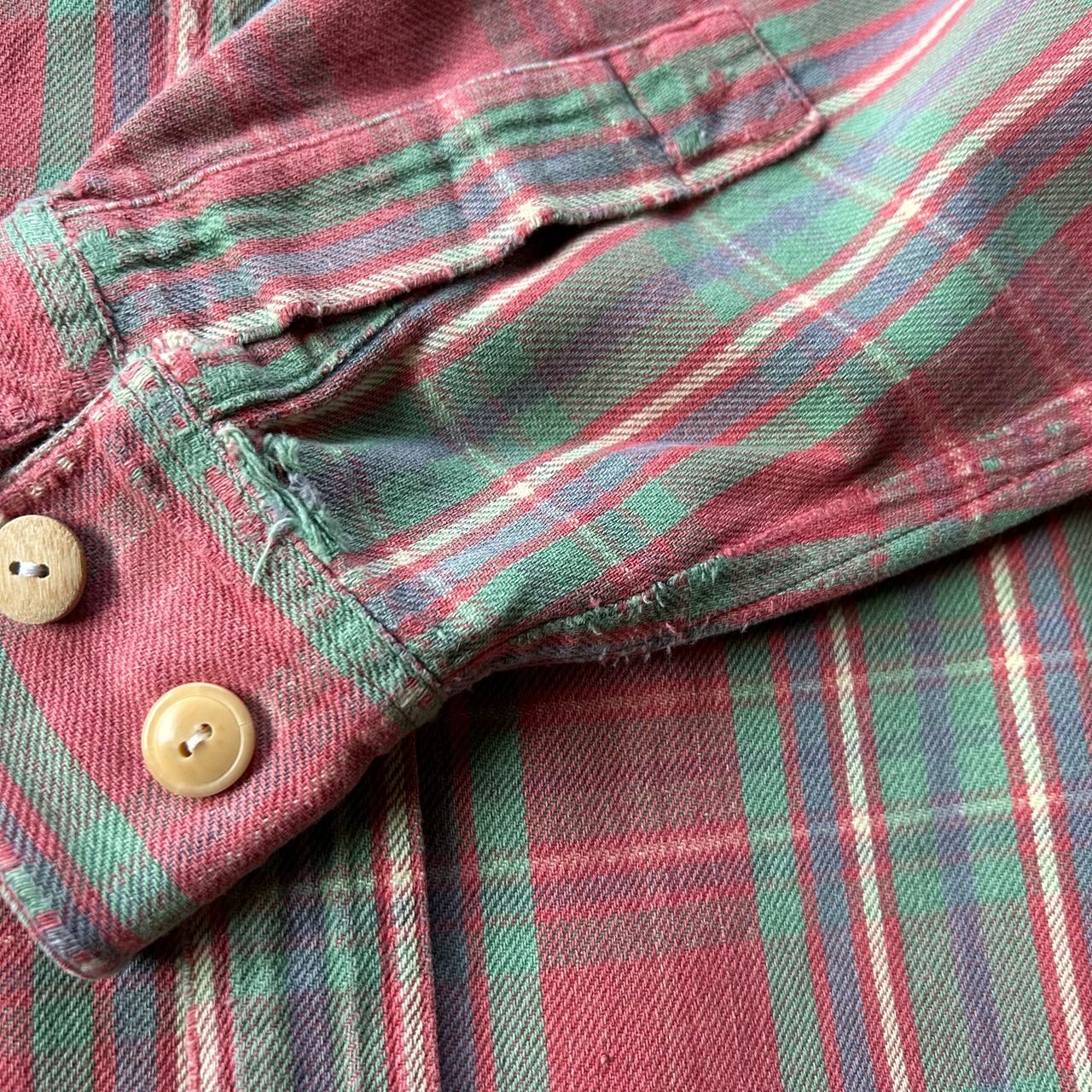 元はレッドカラーかフェードし見事なピンクボディにネルシャツでボックスシルエットはポイント高いかと。