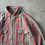 90s ポロカントリー ネルシャツ ピンク×ターコイズ S ボックスシルエット