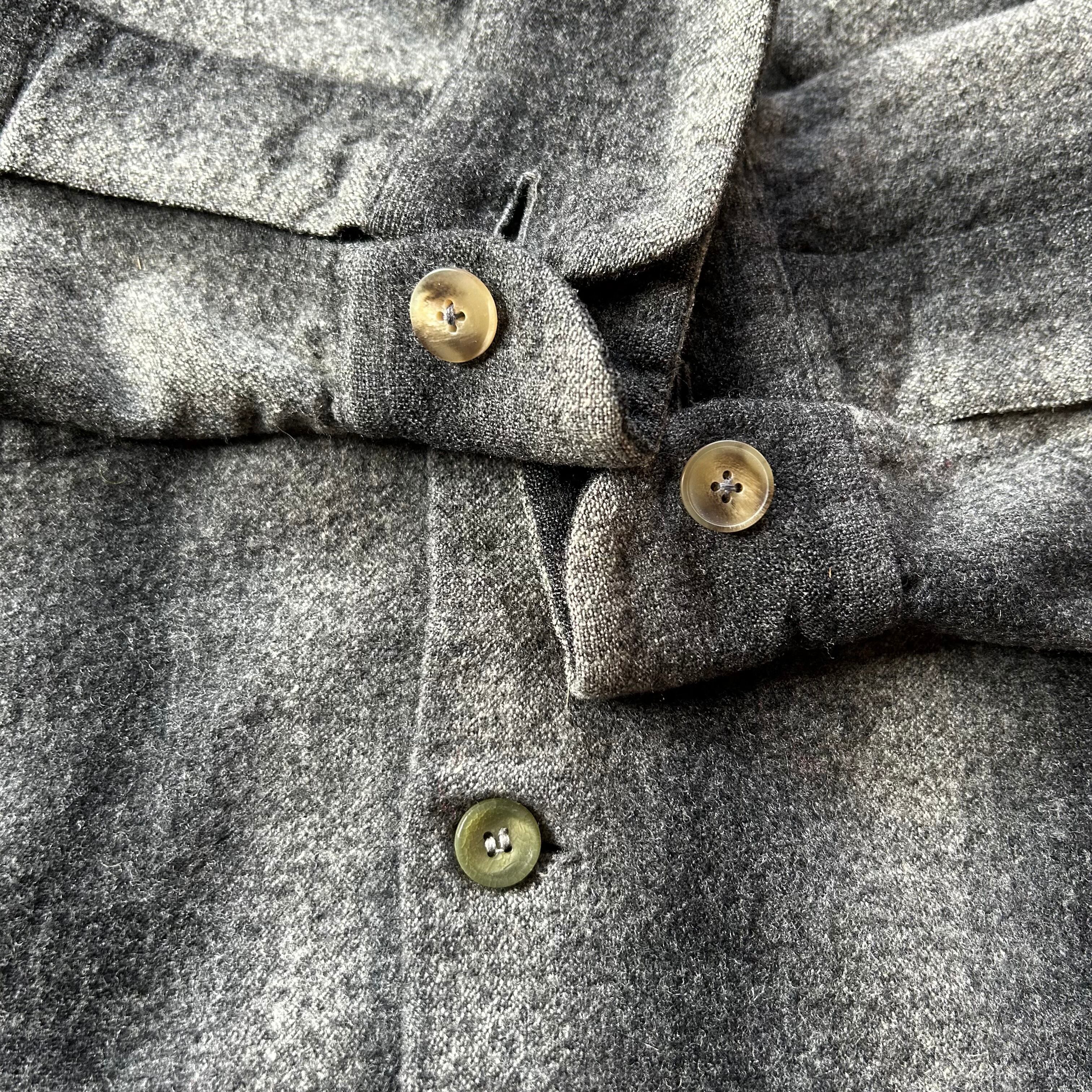 オープンカラー、ボックスシルエットはもちろんのこと50年代らしいボタンのデザインが◎