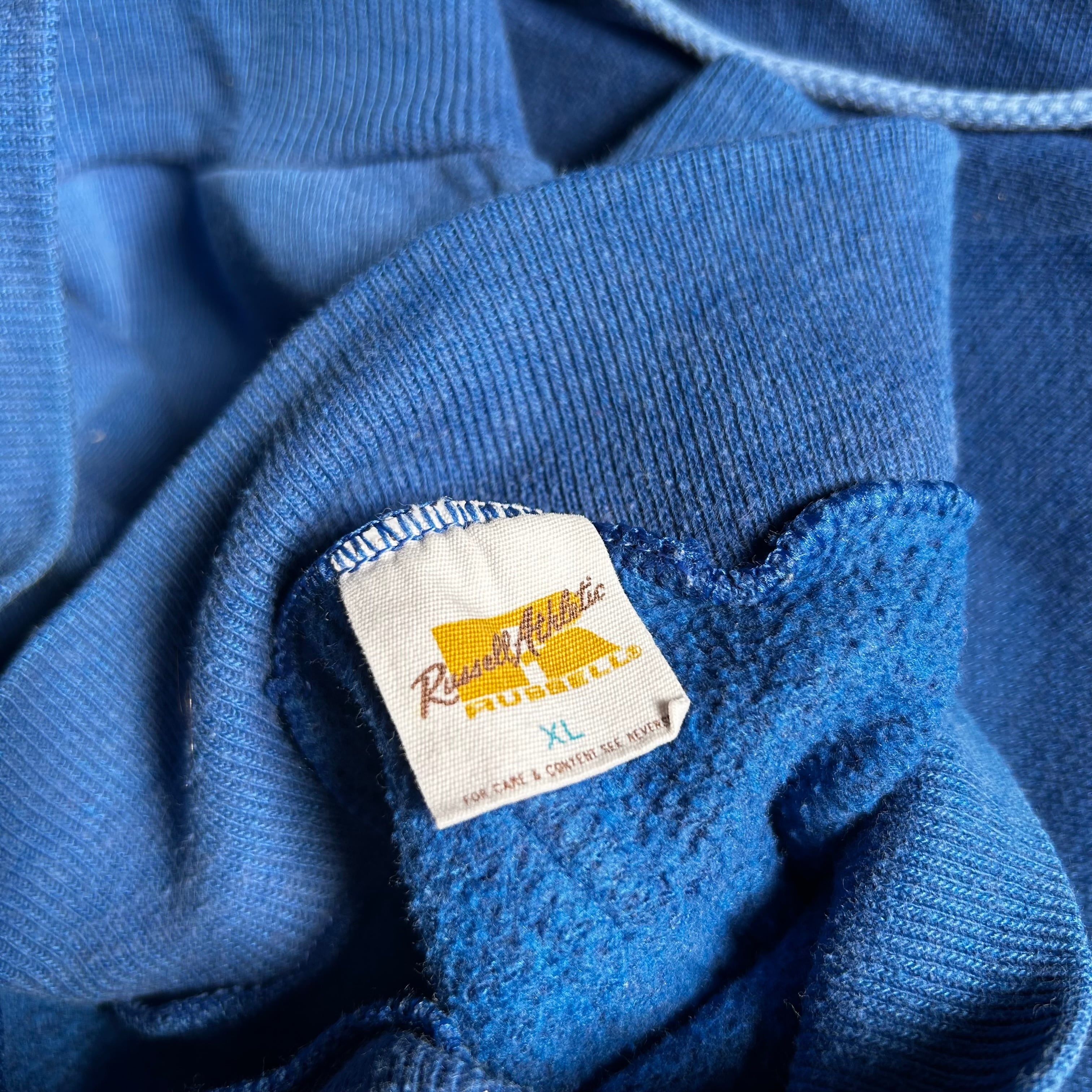 70s ラッセルアスレティック パーカー USA製 XL ブルー バックプリント