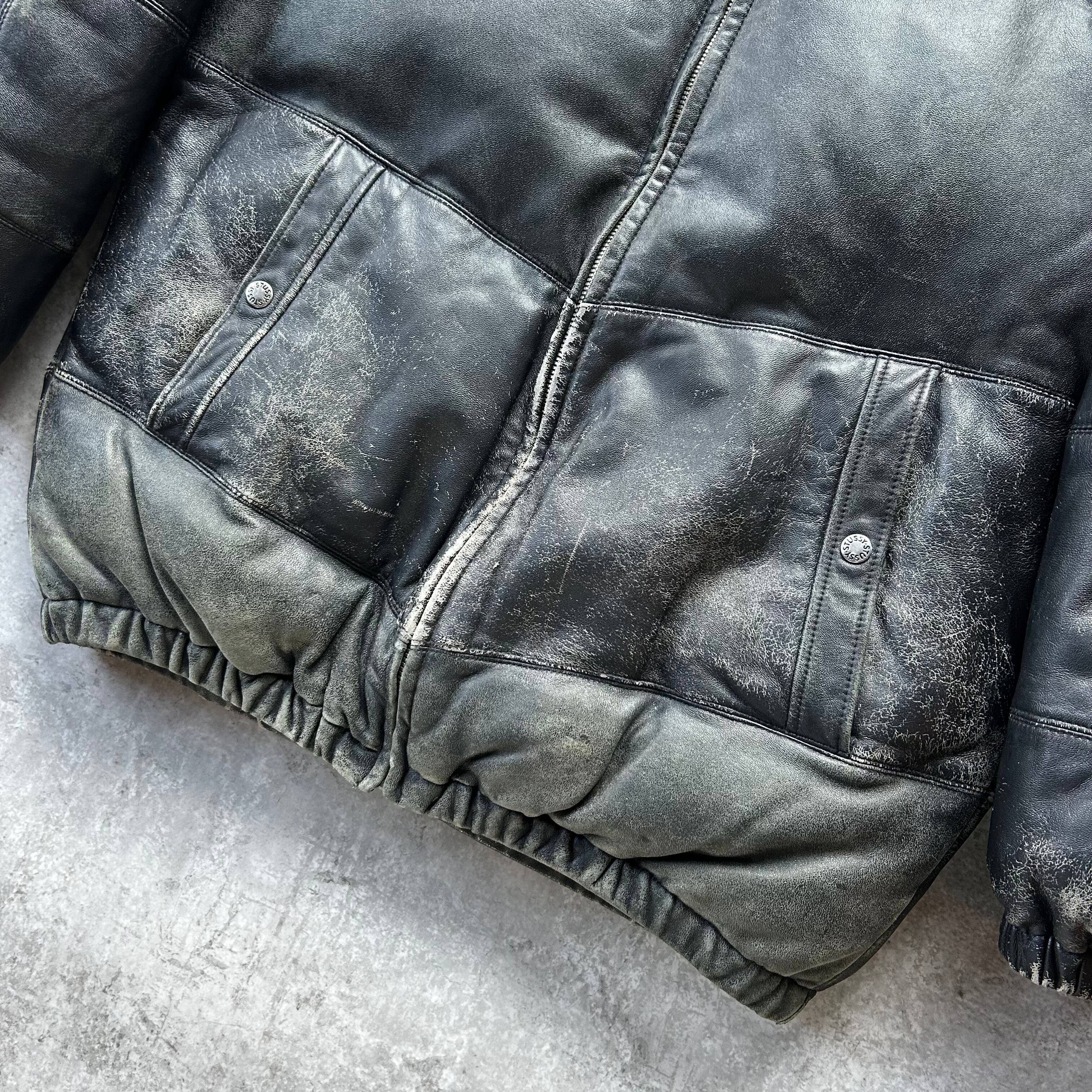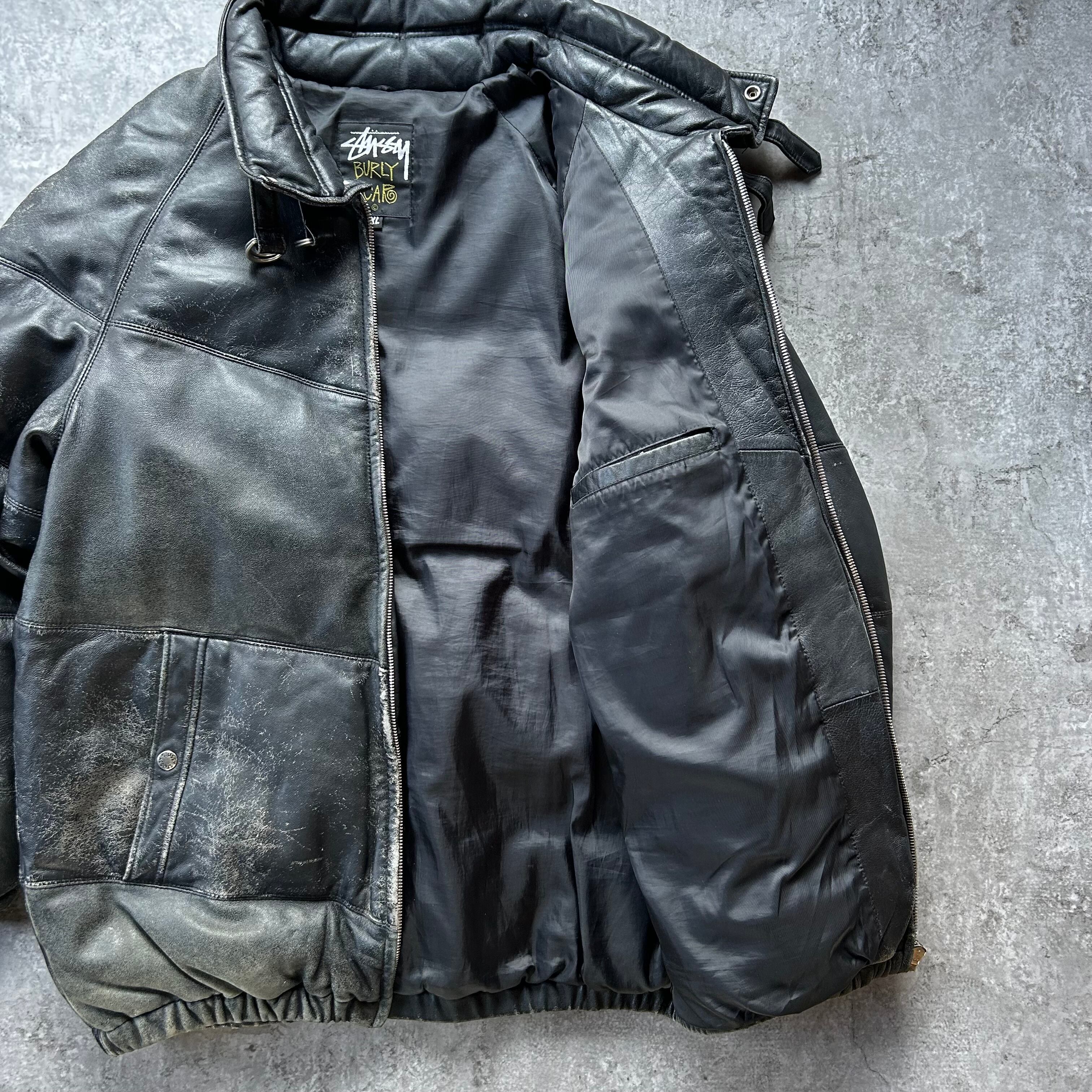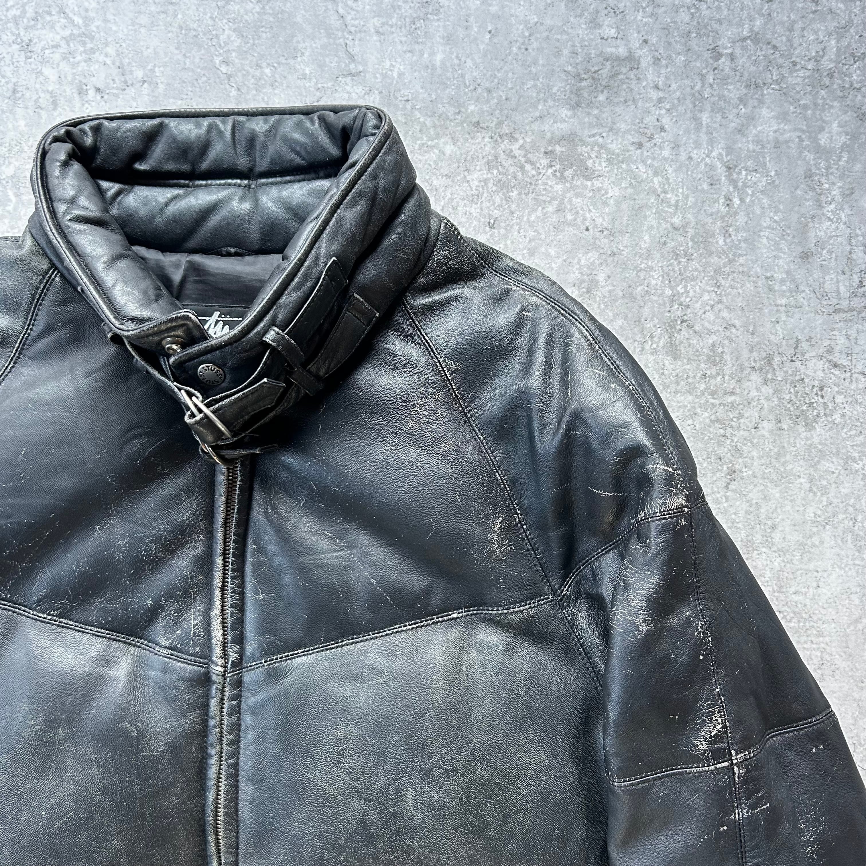 00s old stussy ラムレザーダウンジャケット ブラック XL