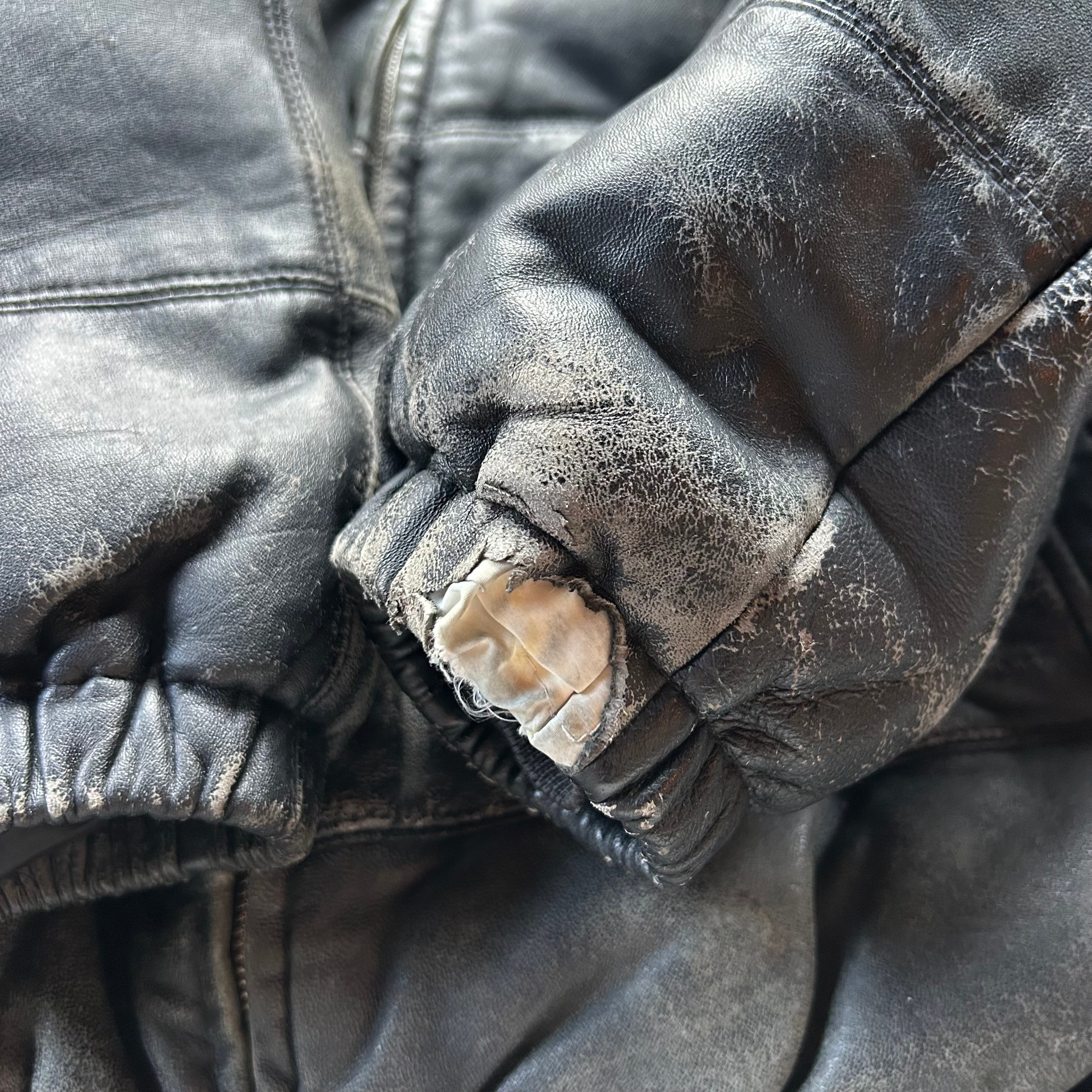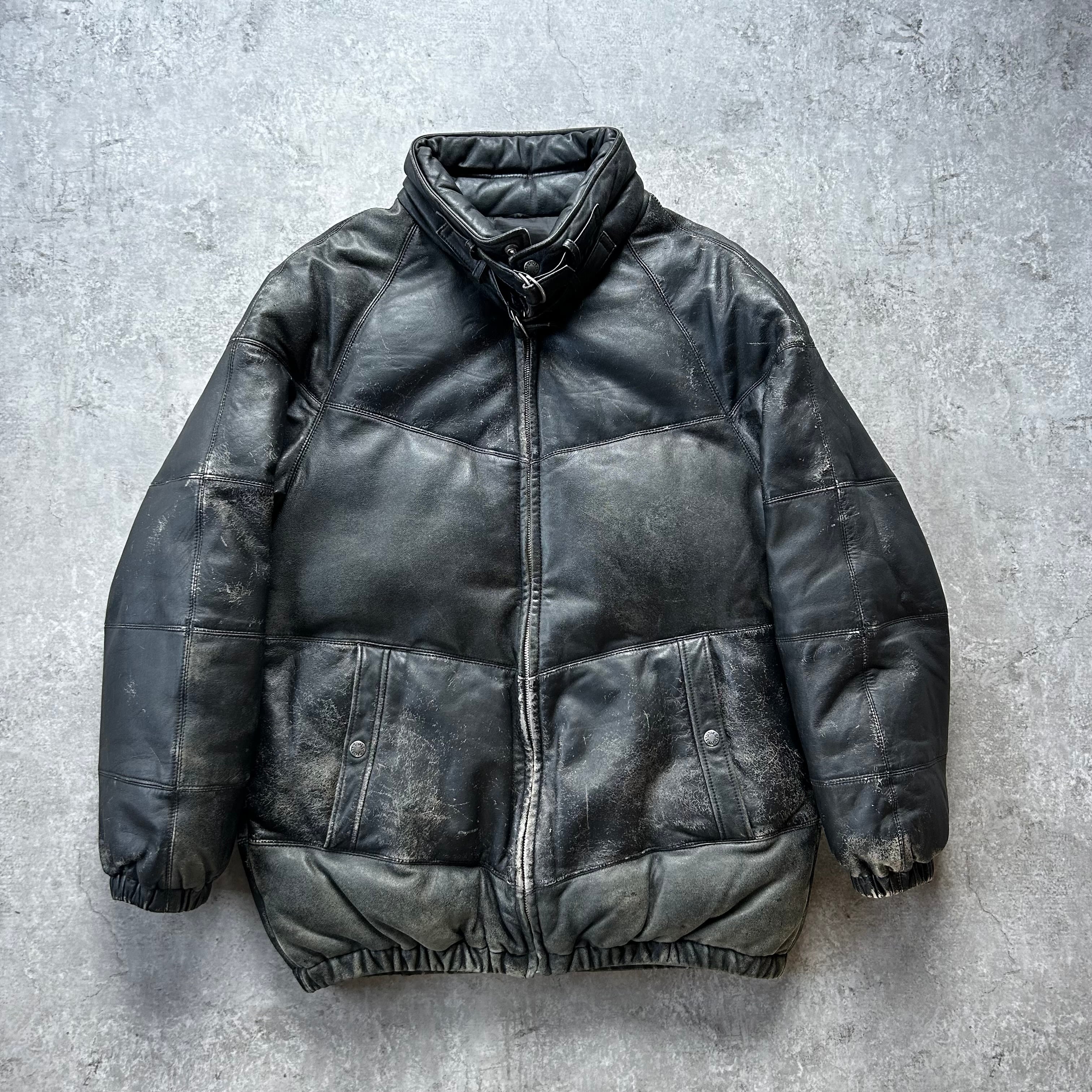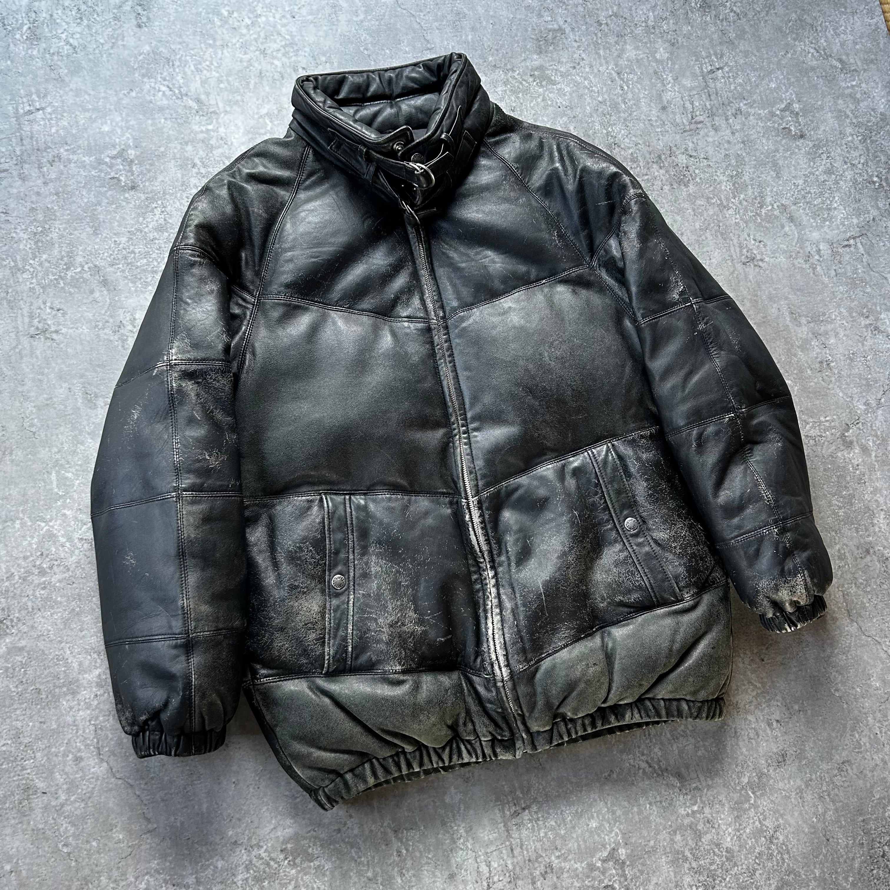 00s old stussy ラムレザーダウンジャケット ブラック XL