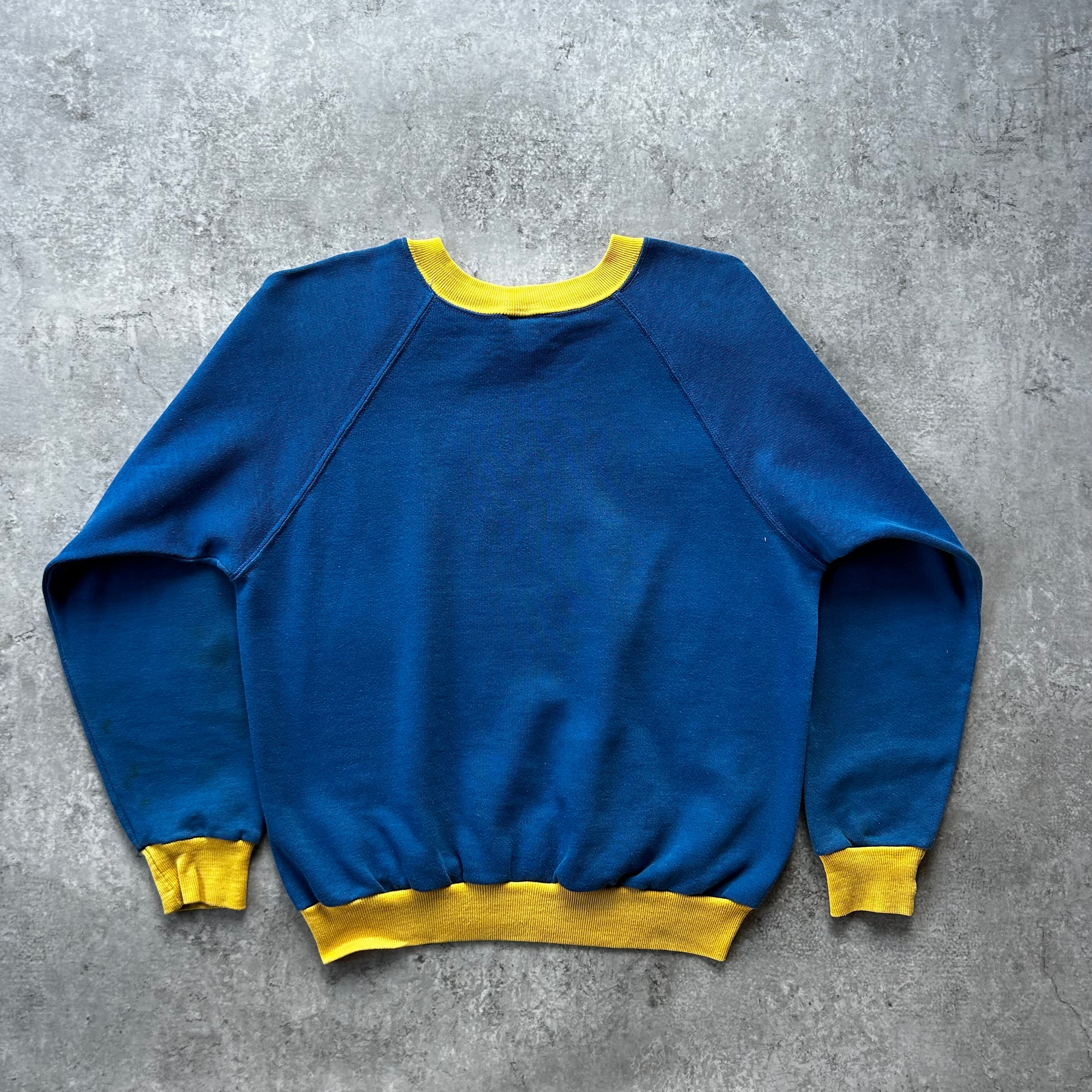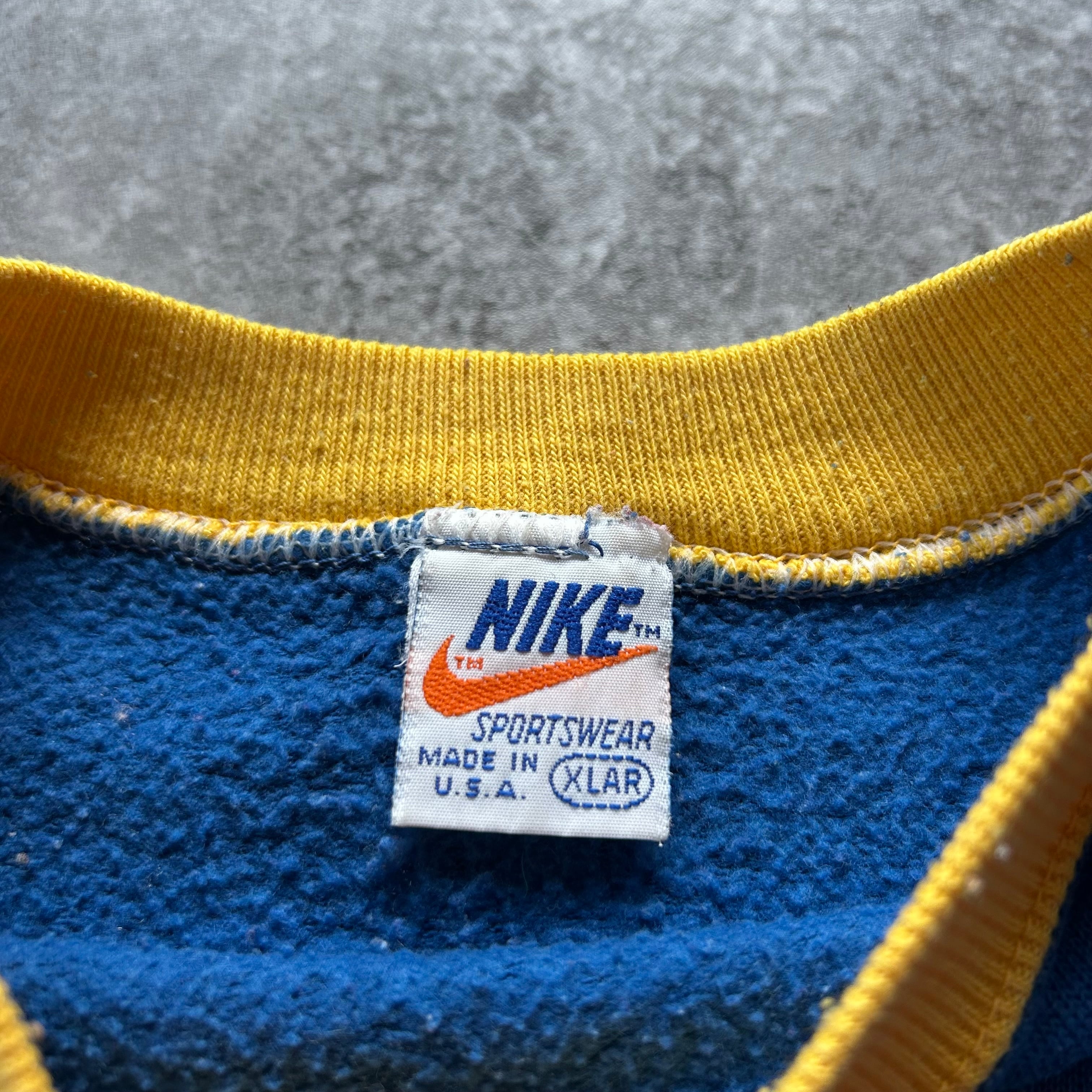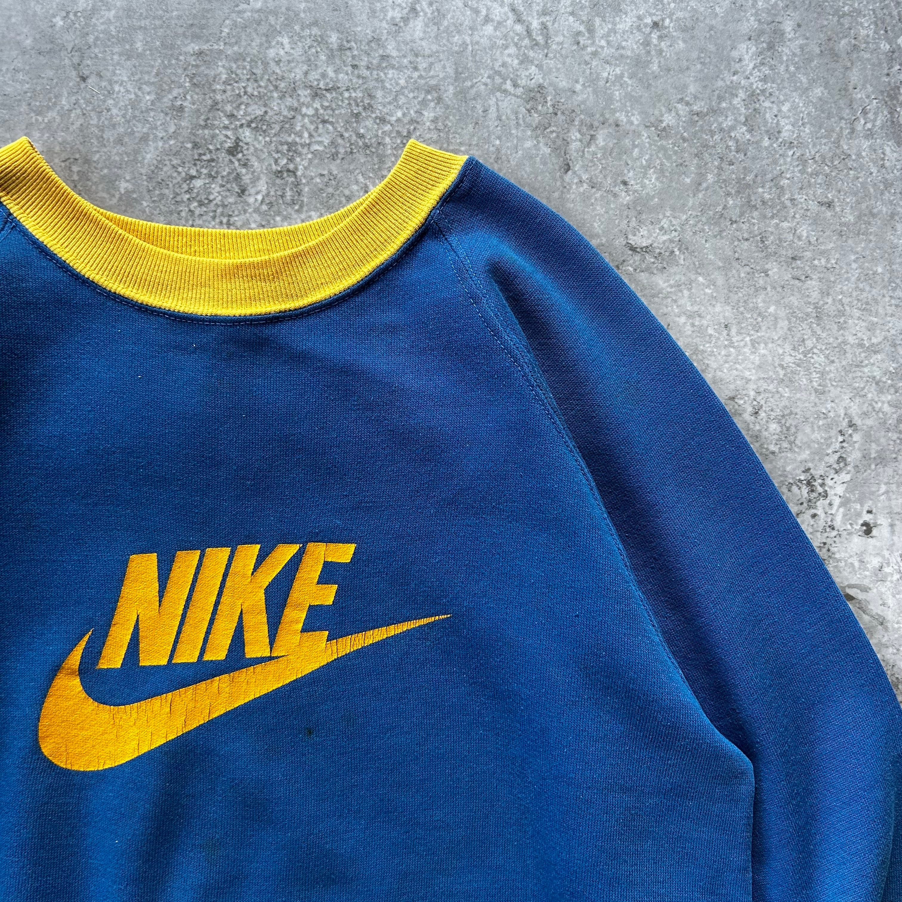 70s NIKE ナイキ ツートンスウェット USA製 XL ブルー×イエロー