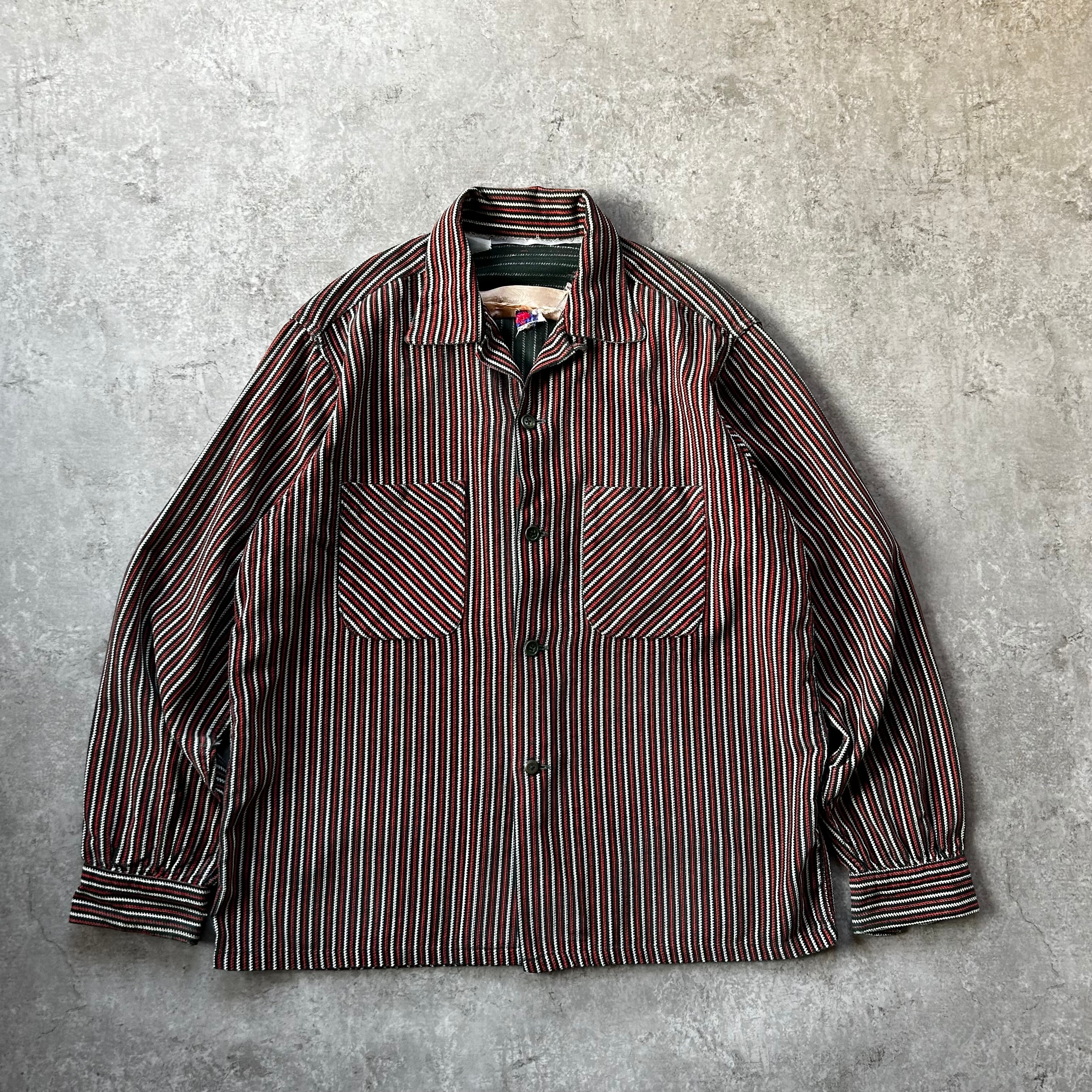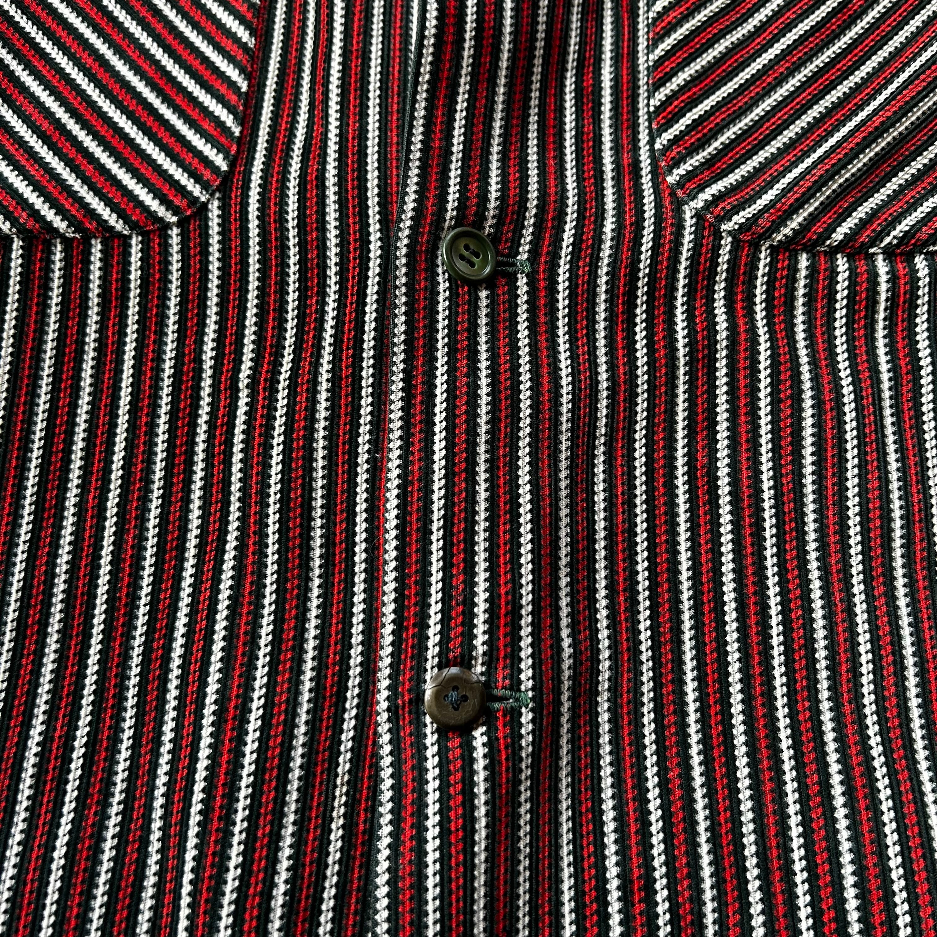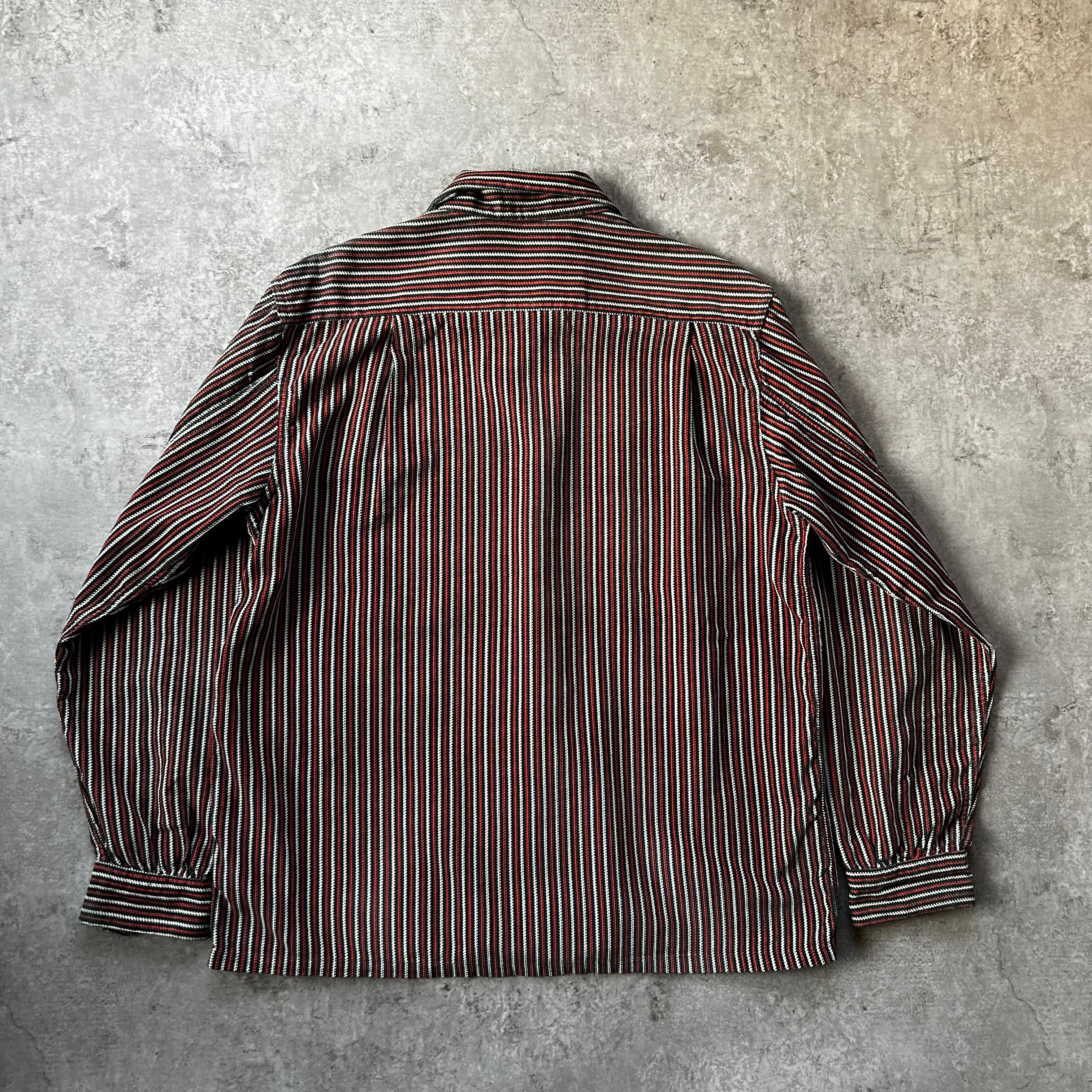 ヴィンテージならではの開襟(オープンカラー)、ボックスシルエットはもちろんのこと、ネイティブストライプ/ラグストライプのデザイン。