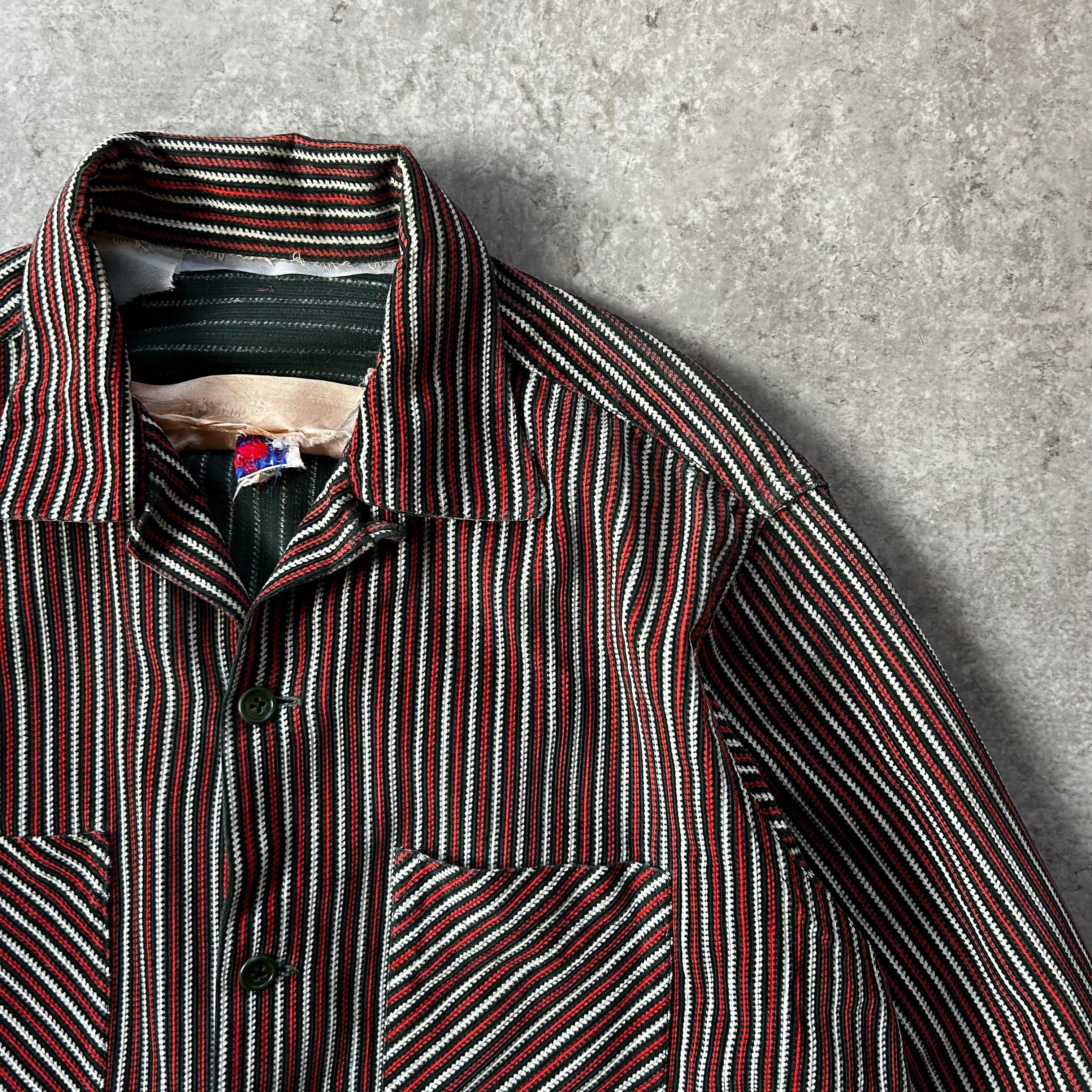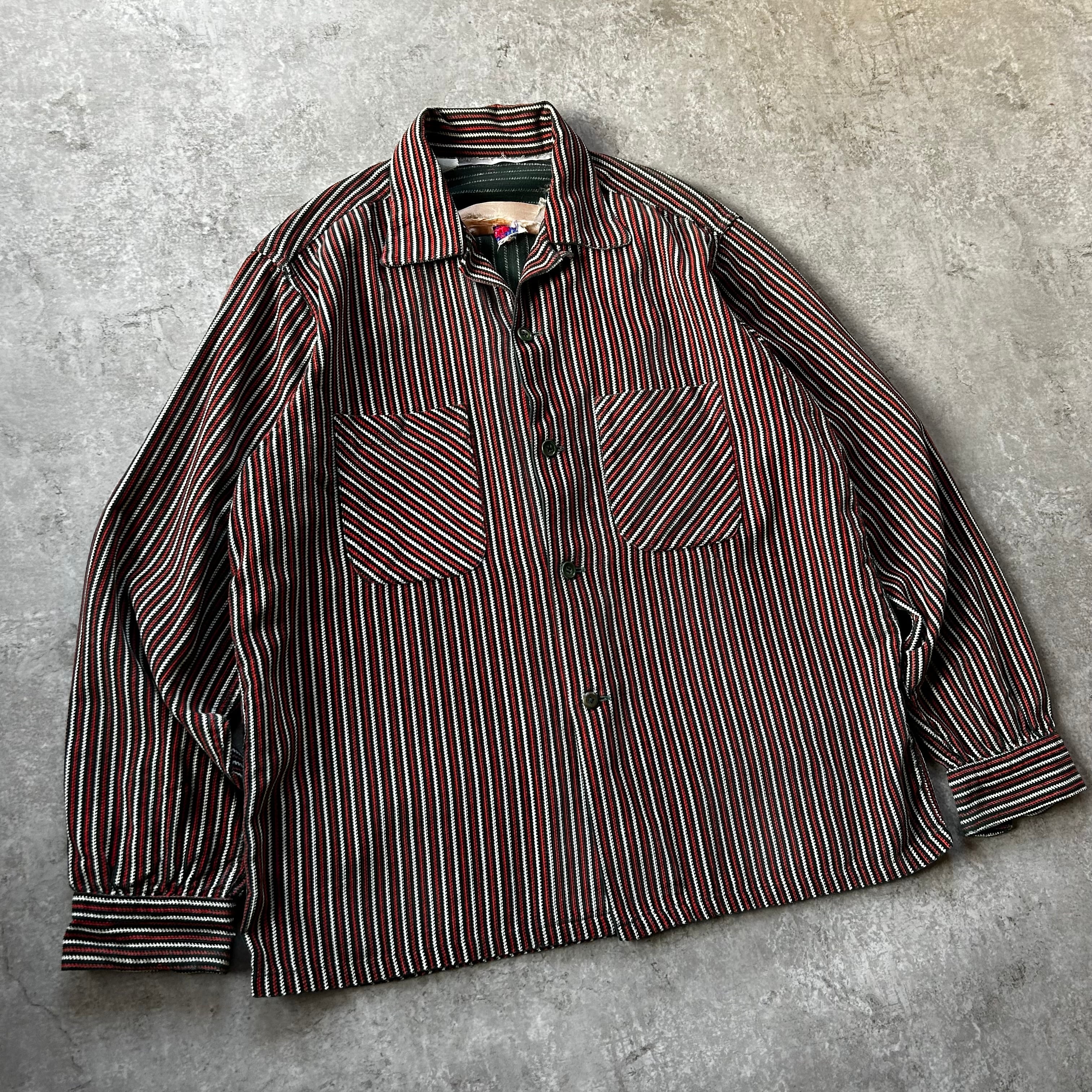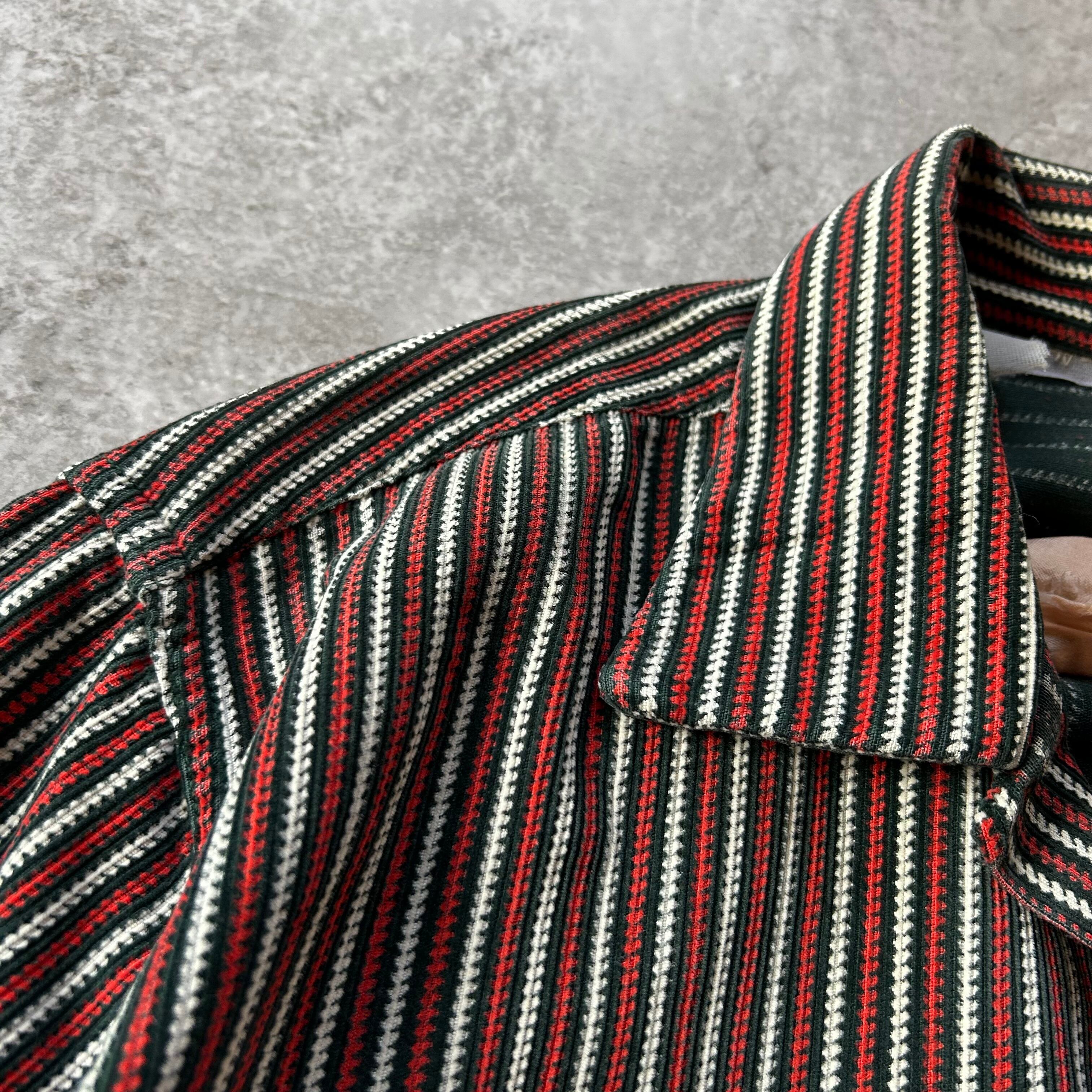 ヴィンテージならではの開襟(オープンカラー)、ボックスシルエットはもちろんのこと、ネイティブストライプ/ラグストライプのデザイン。