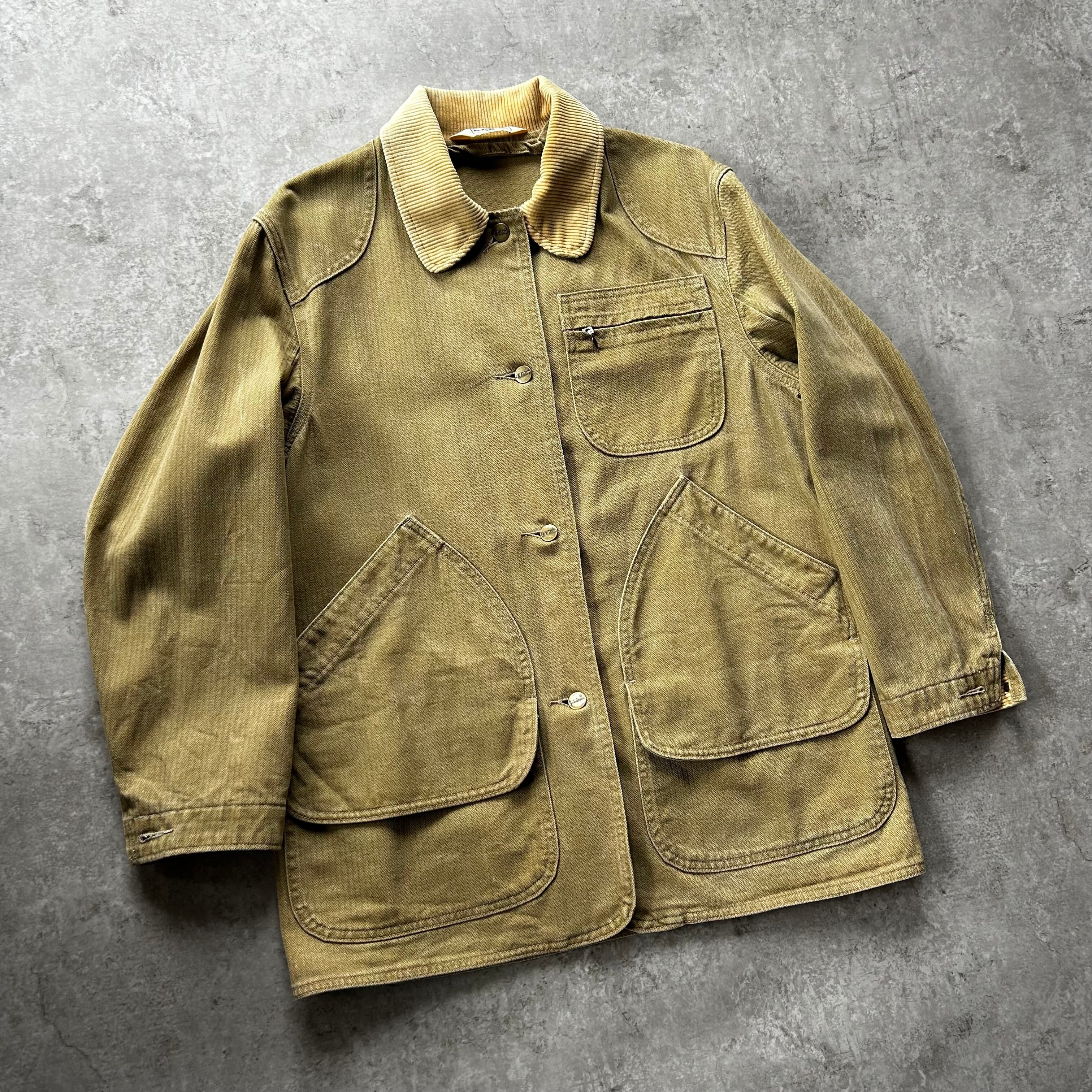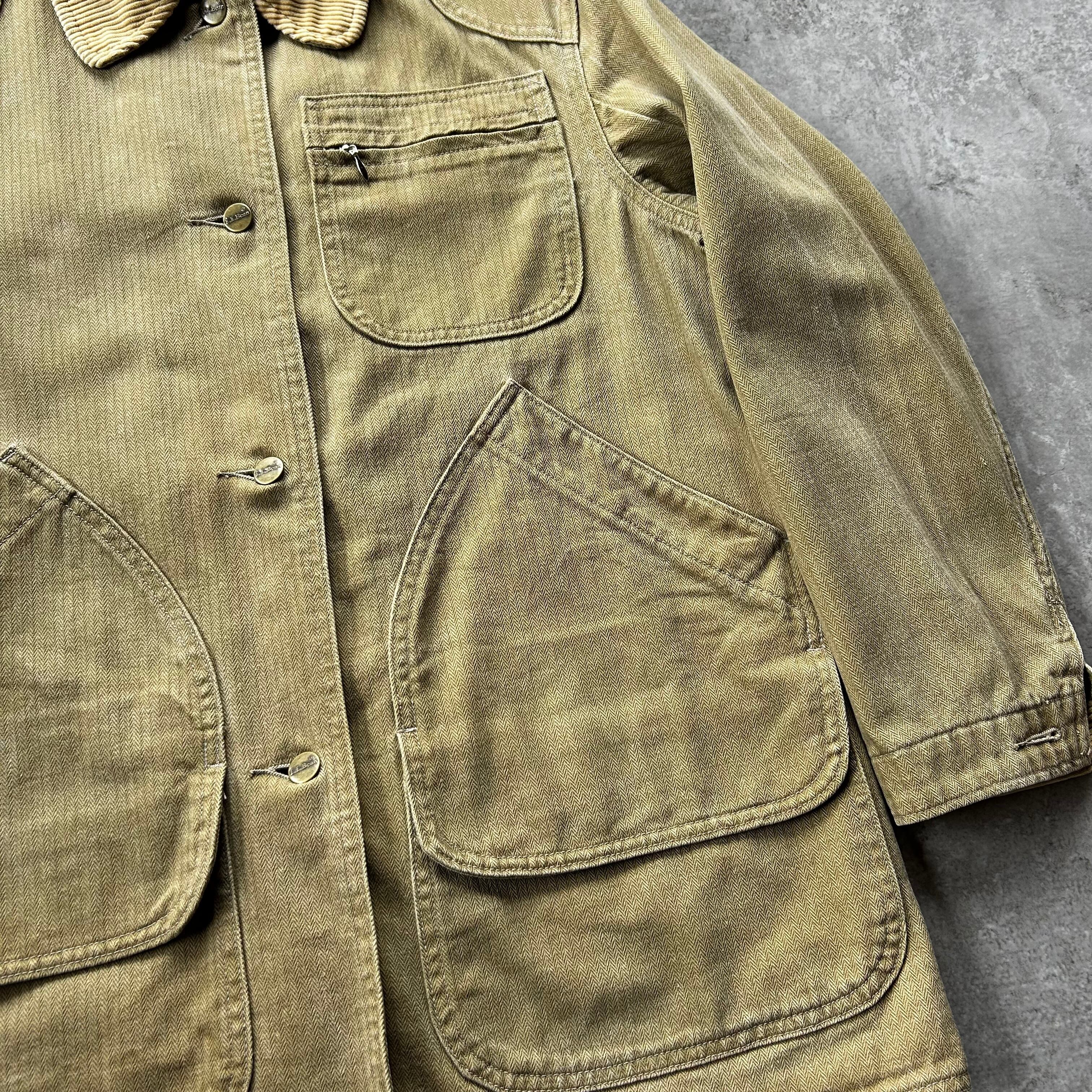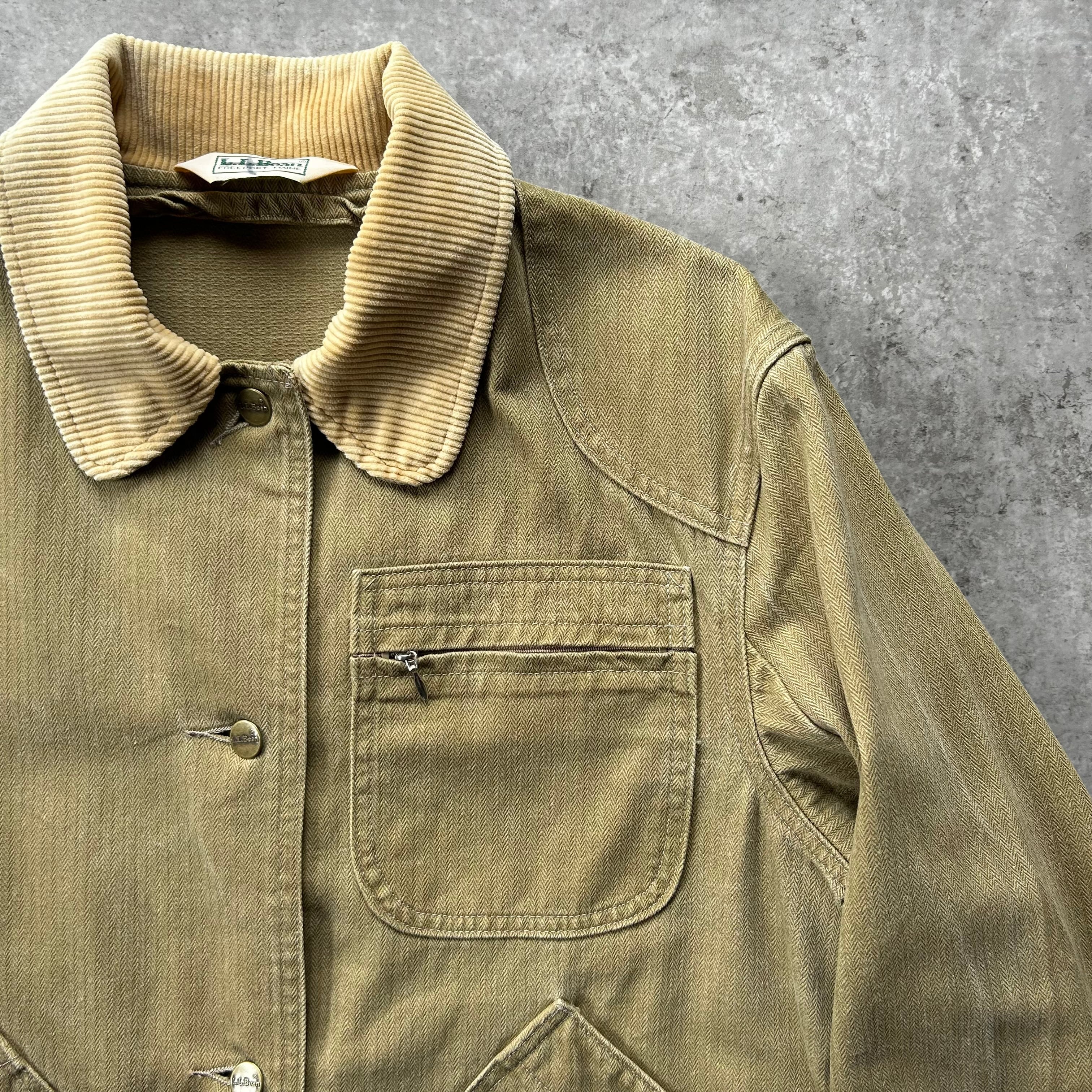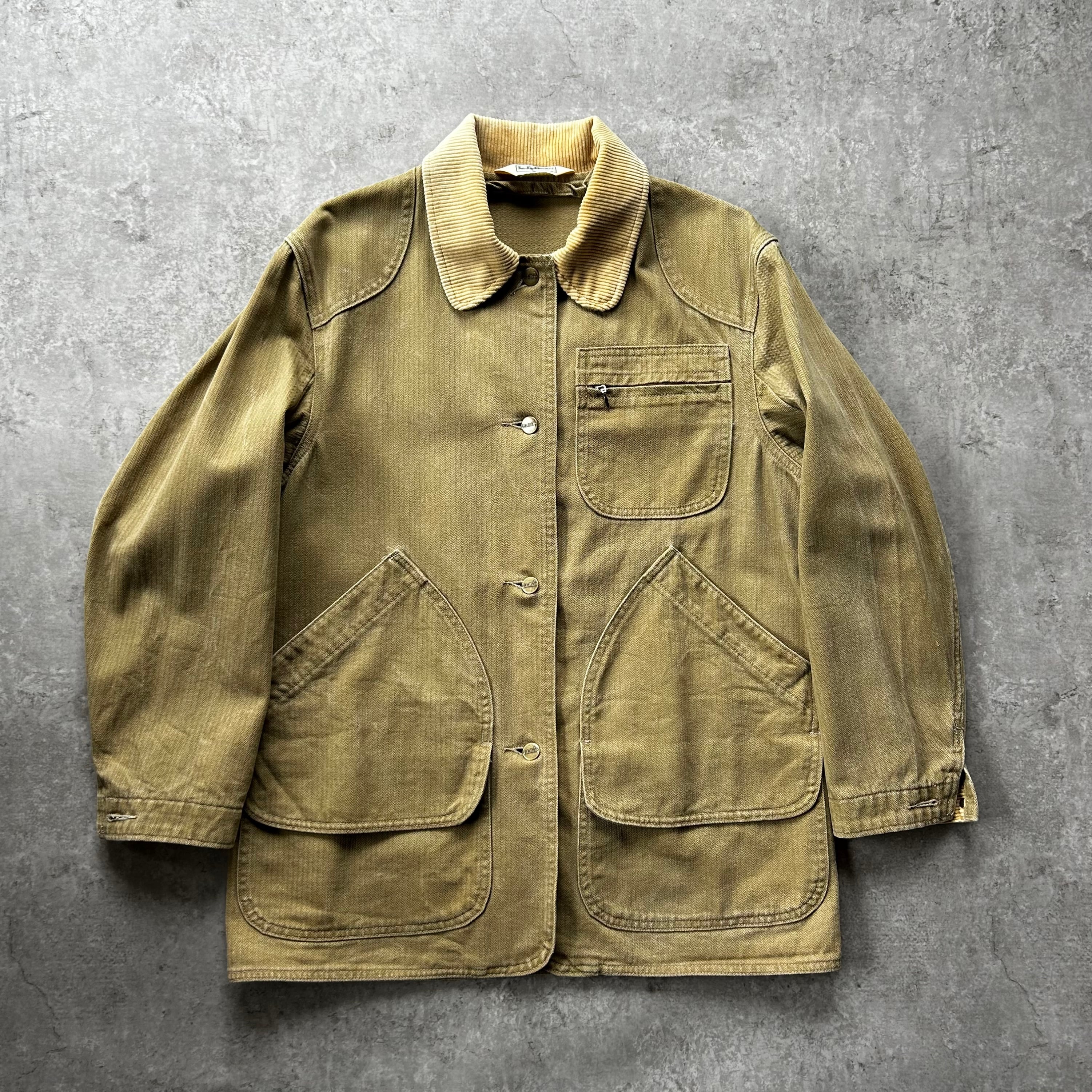70s80s エルエルビーン ハンティングジャケット カーキ ヘリンボーンツイル