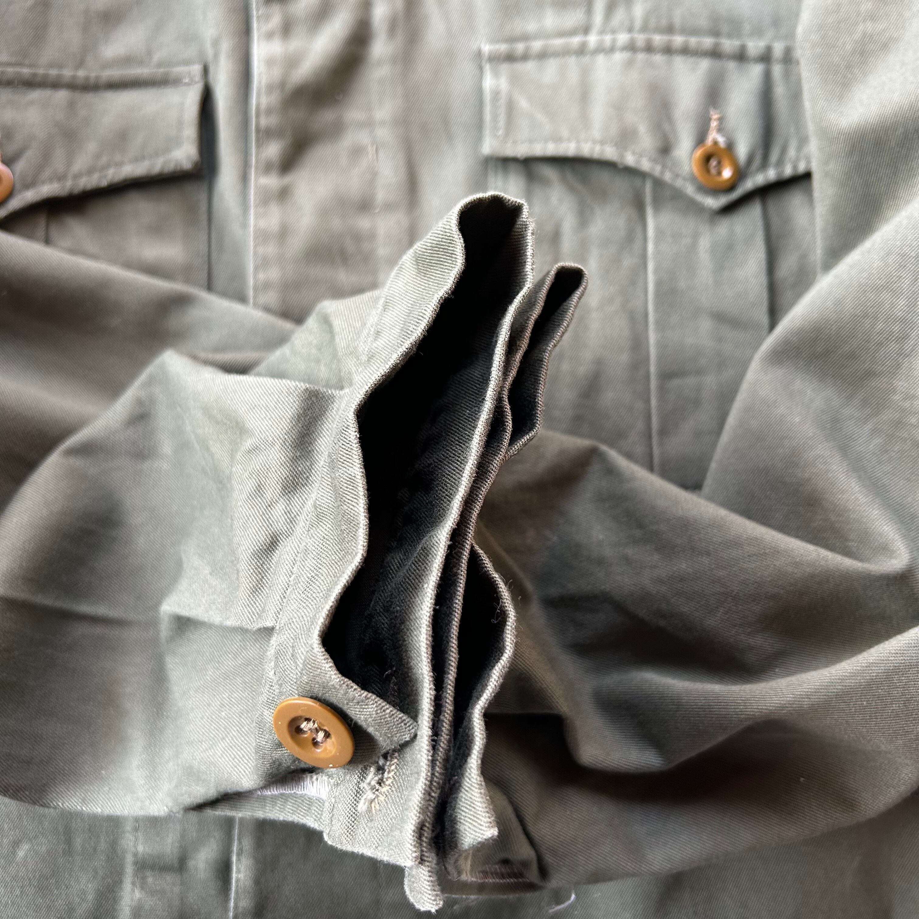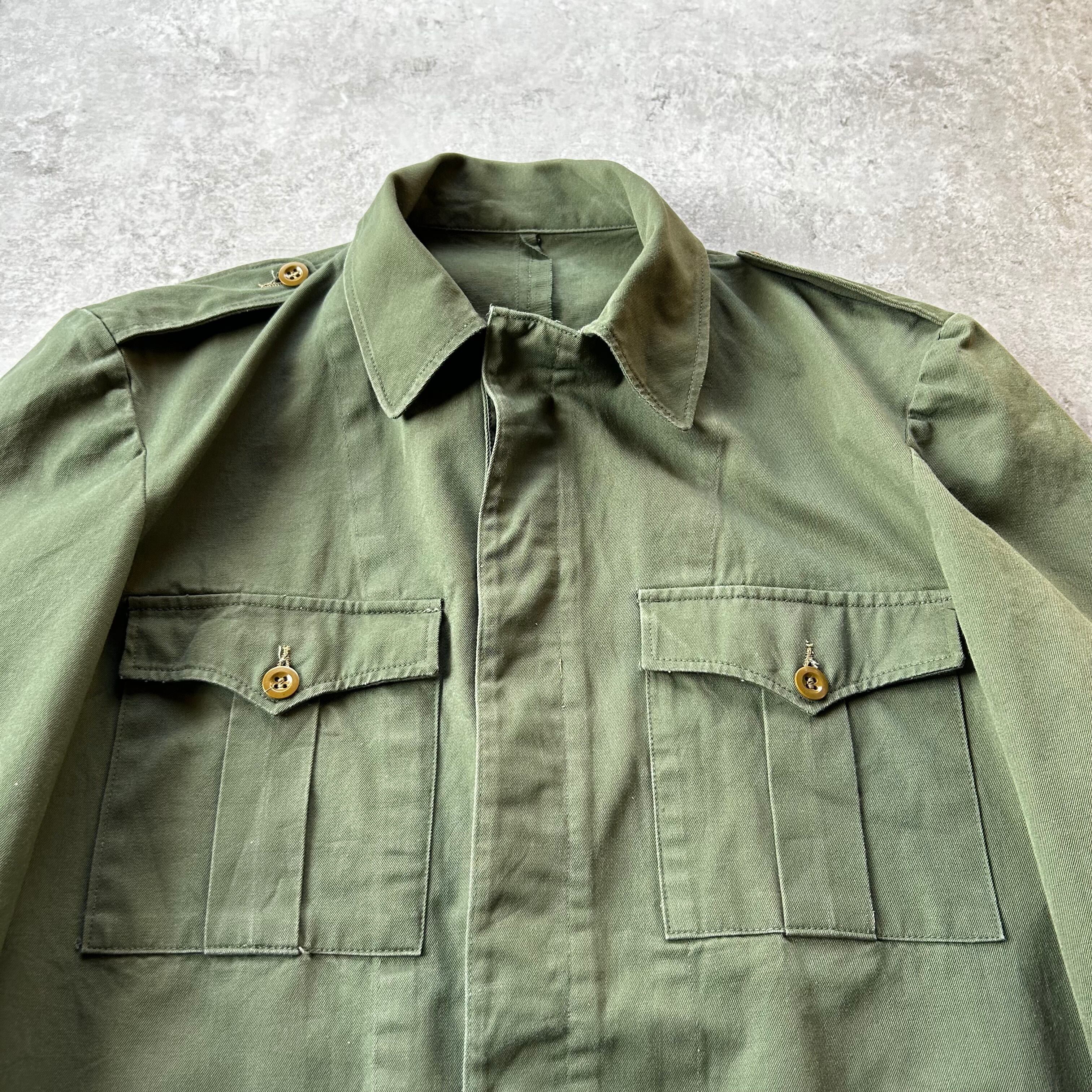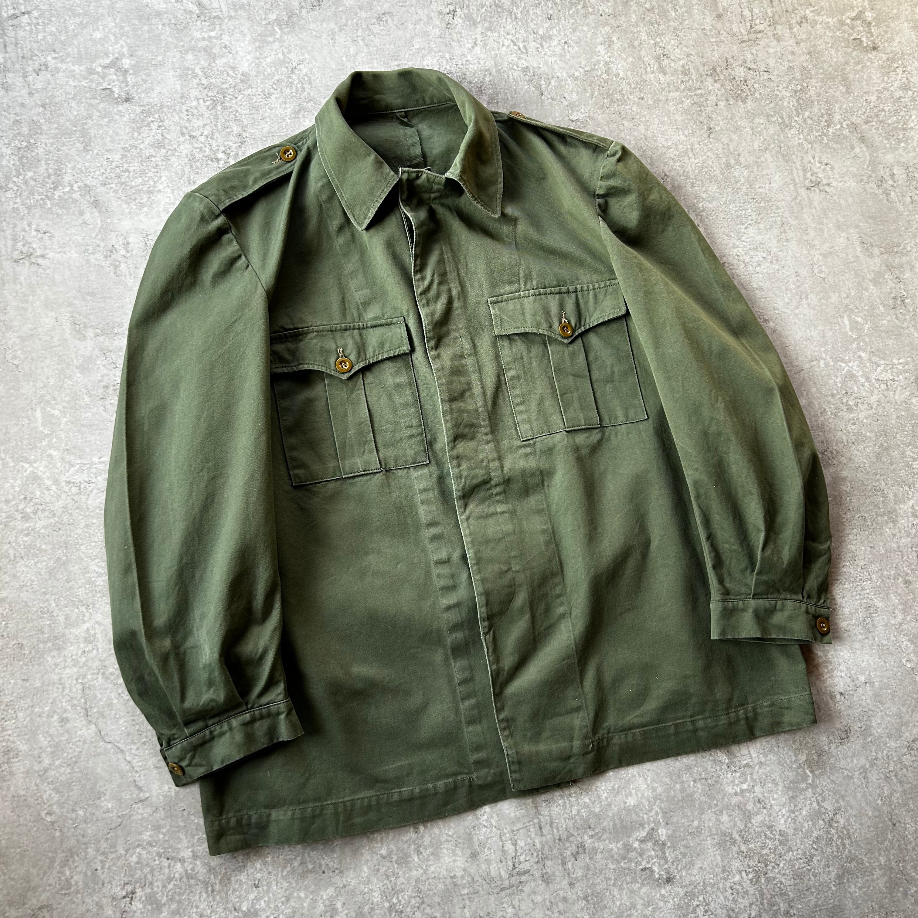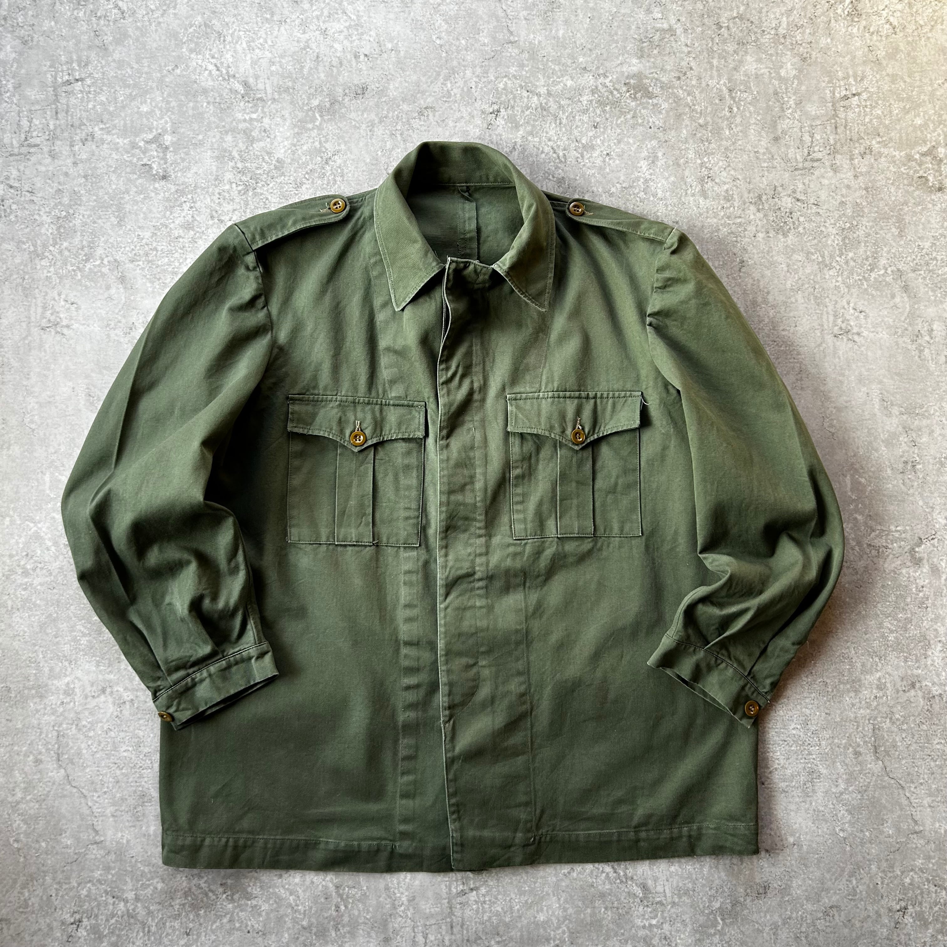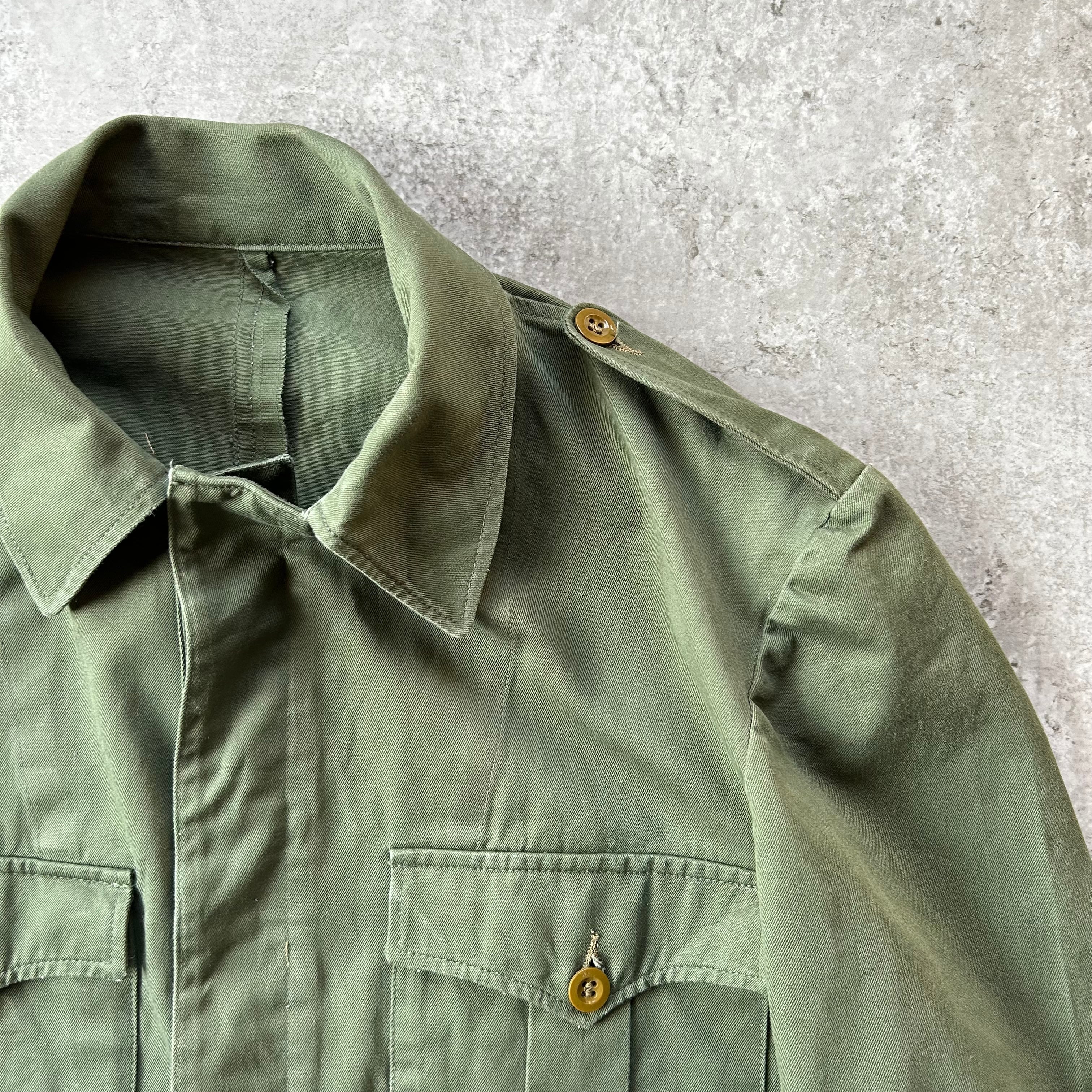 60s ユーロミリタリー ユーティリティジャケット オリーブ エポレット 比翼