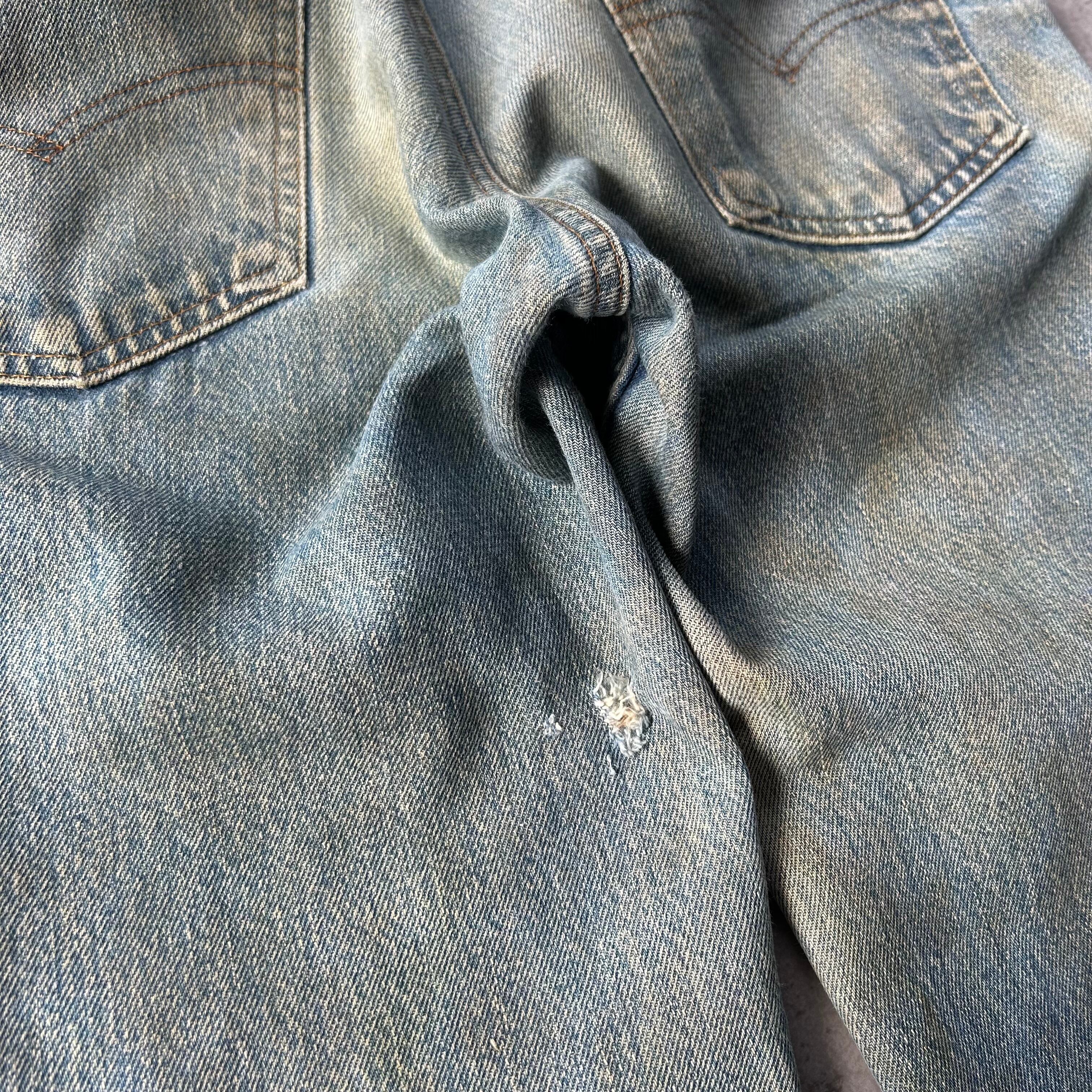 ダメージや色落ちは進んでいるものの全体的な雰囲気は良く、古着のジーンズとしては即戦力。