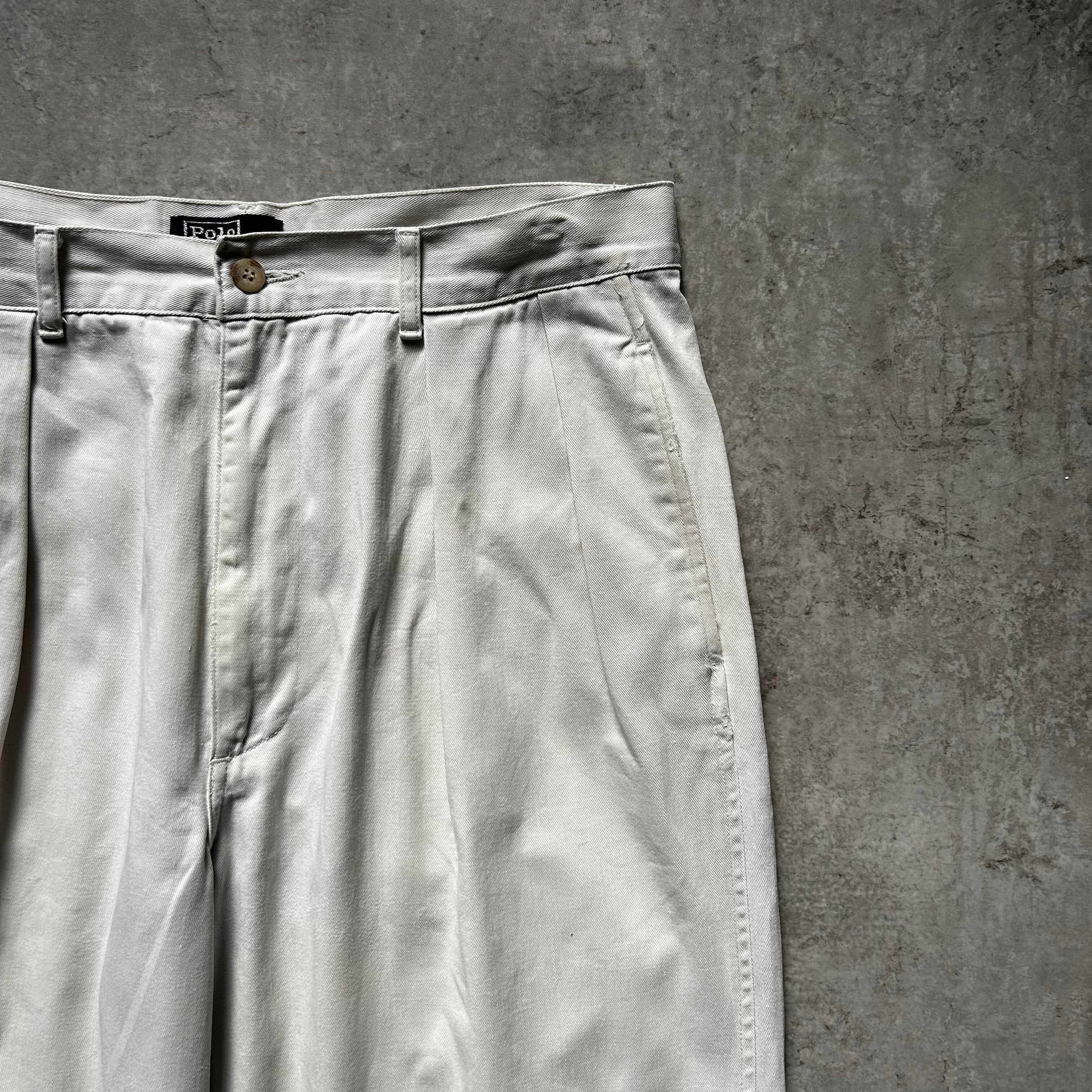 90s ラルフローレン チノパン USA製 ホワイト 32×30 ツータック入り
