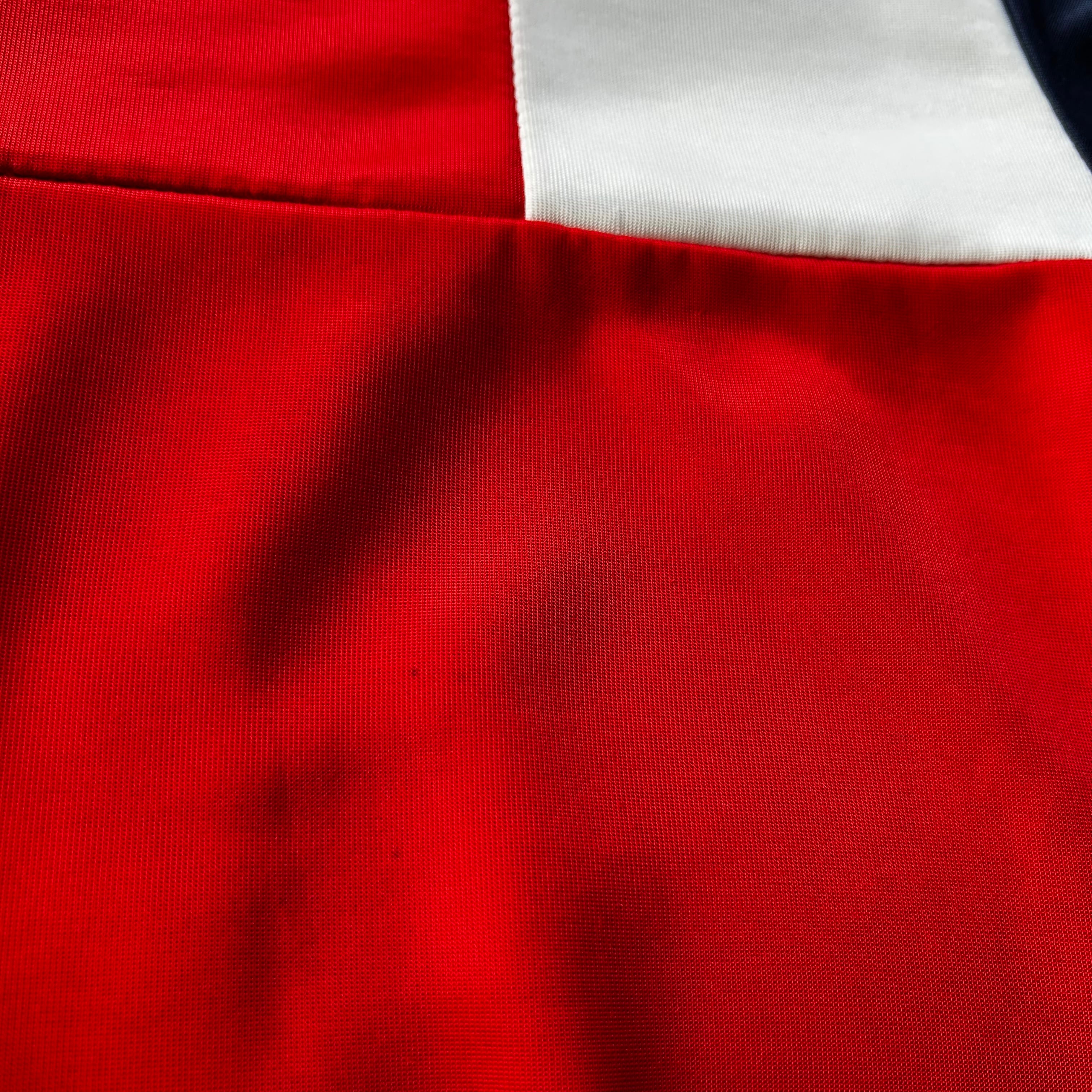 インパクトある発色の良いレッドボディにホワイト×ネイビーの切り替えが当時らしい好配色。