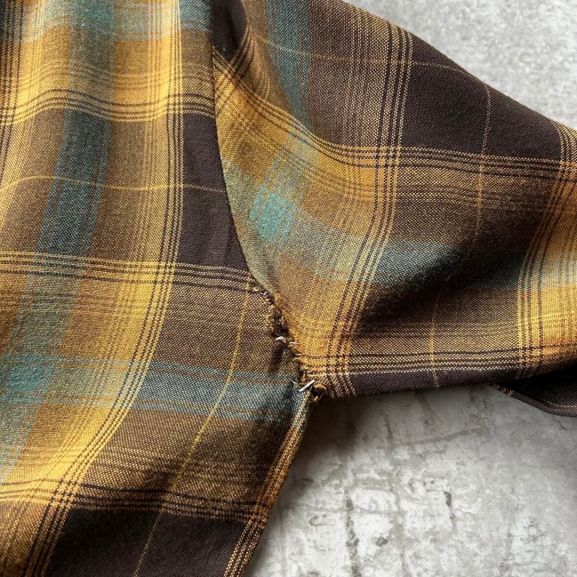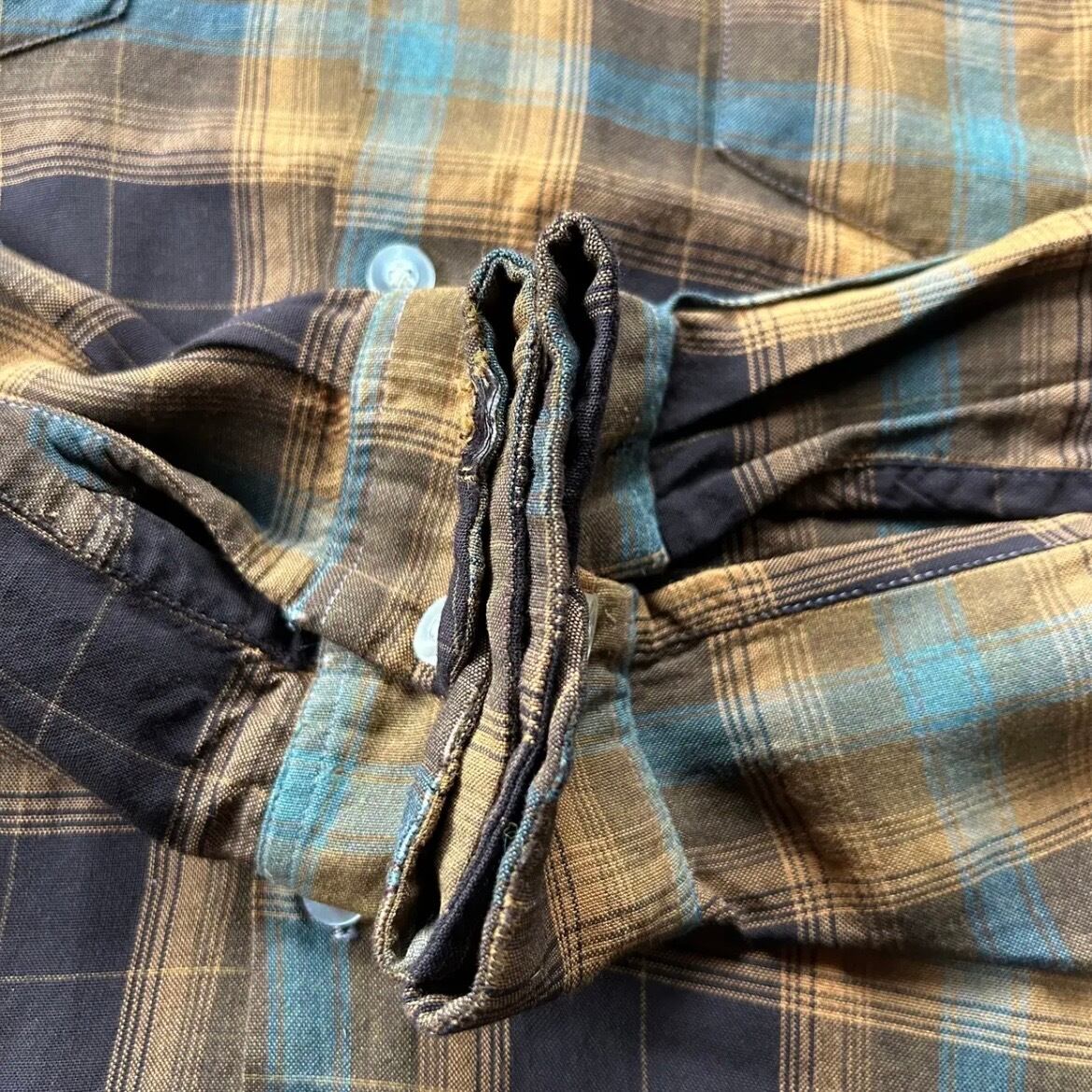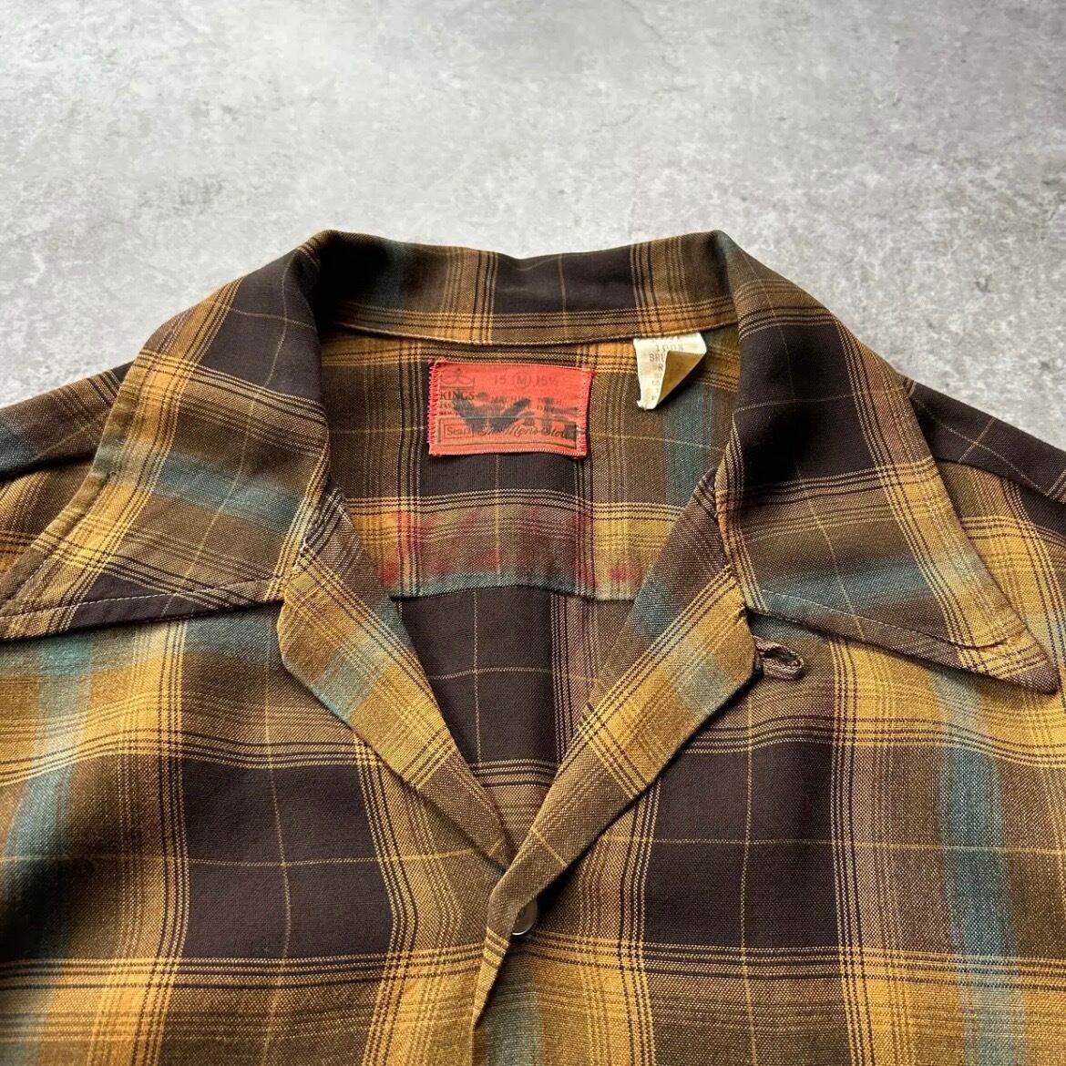 70s シアーズ オンブレチェックレーヨンシャツ ブラウン×イエロー M 襤褸