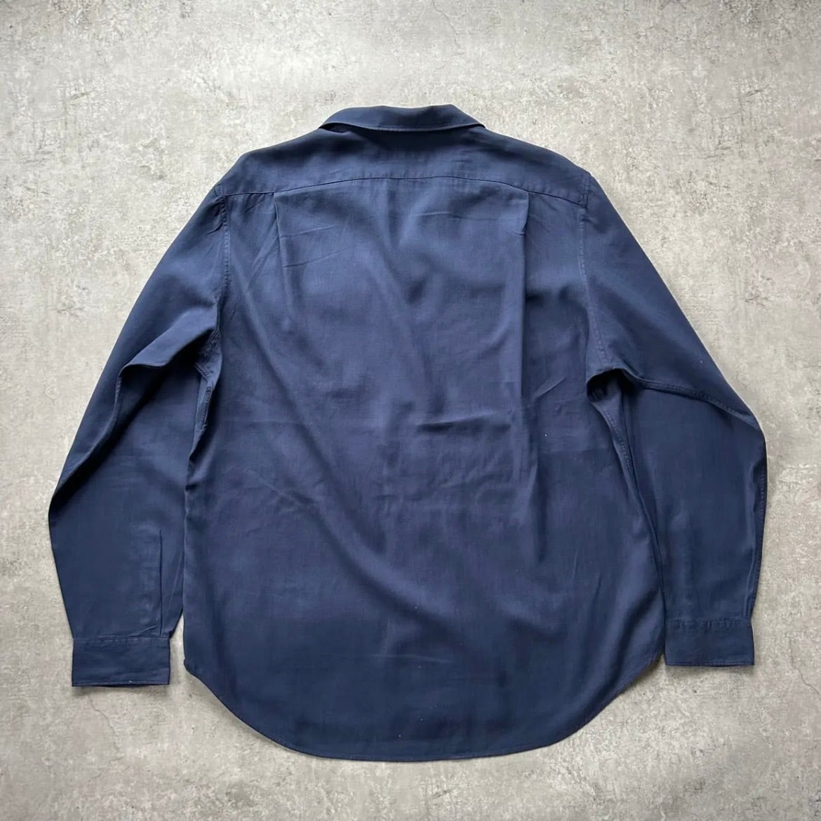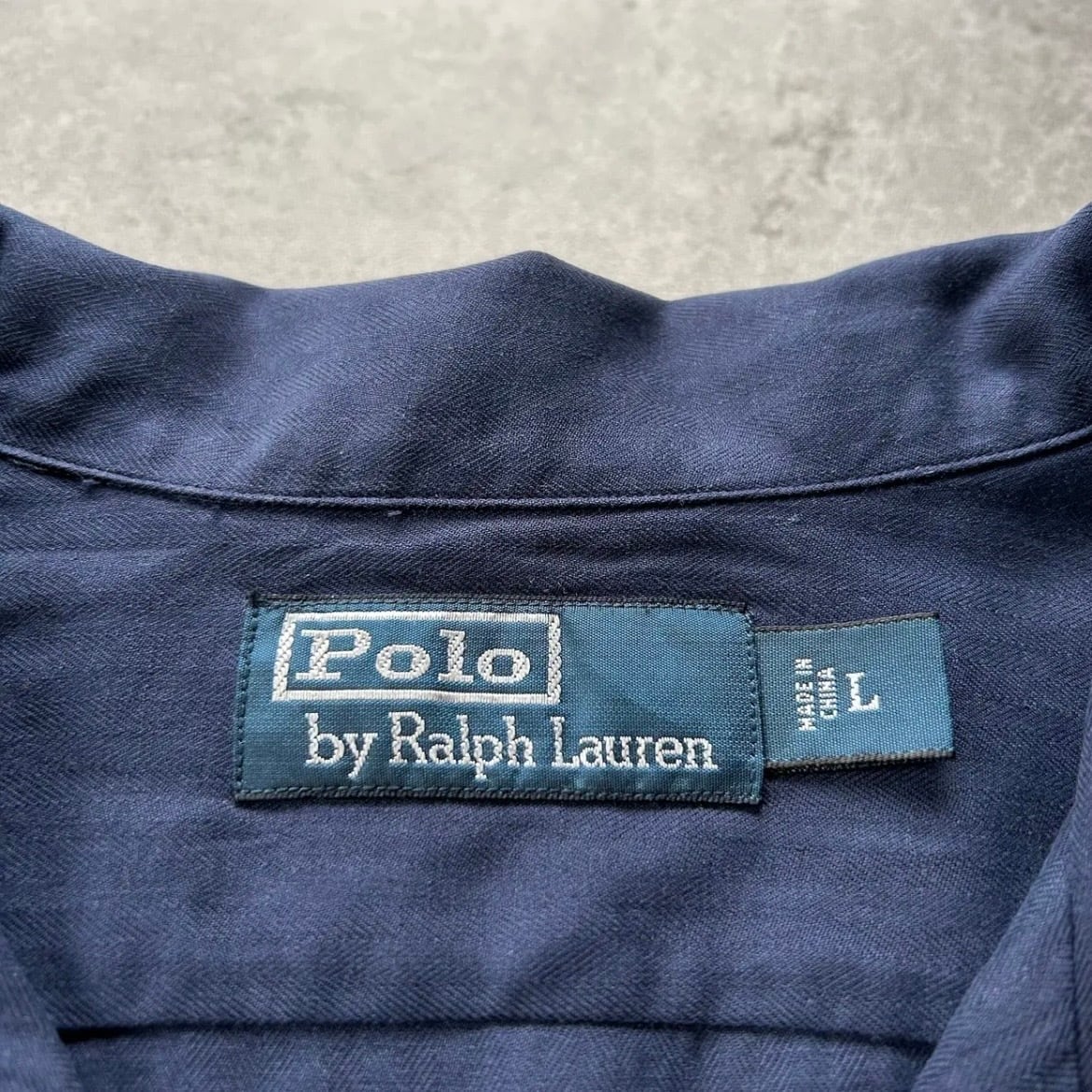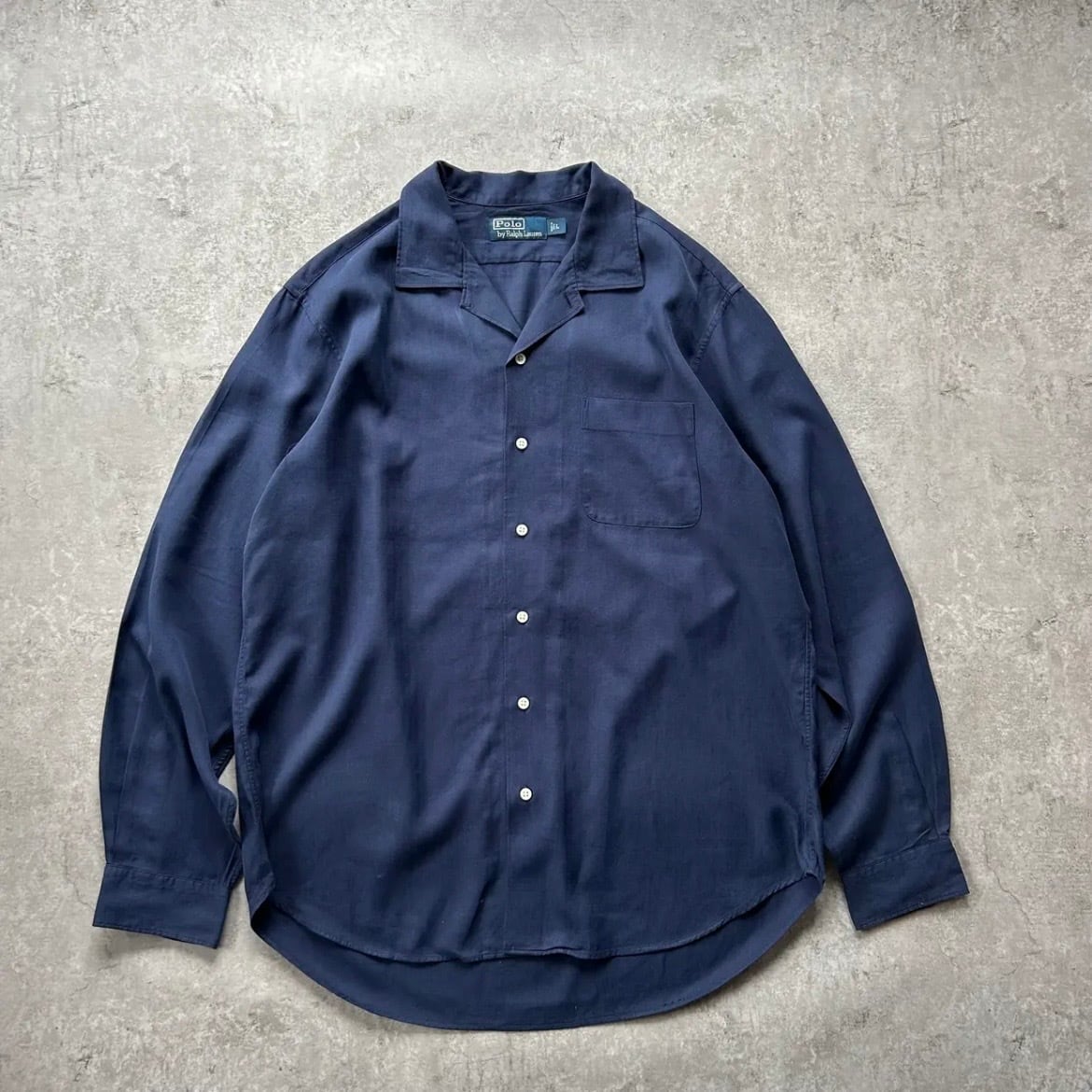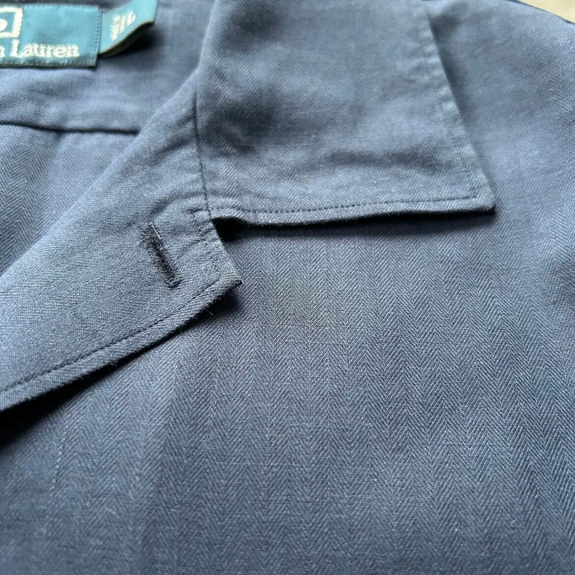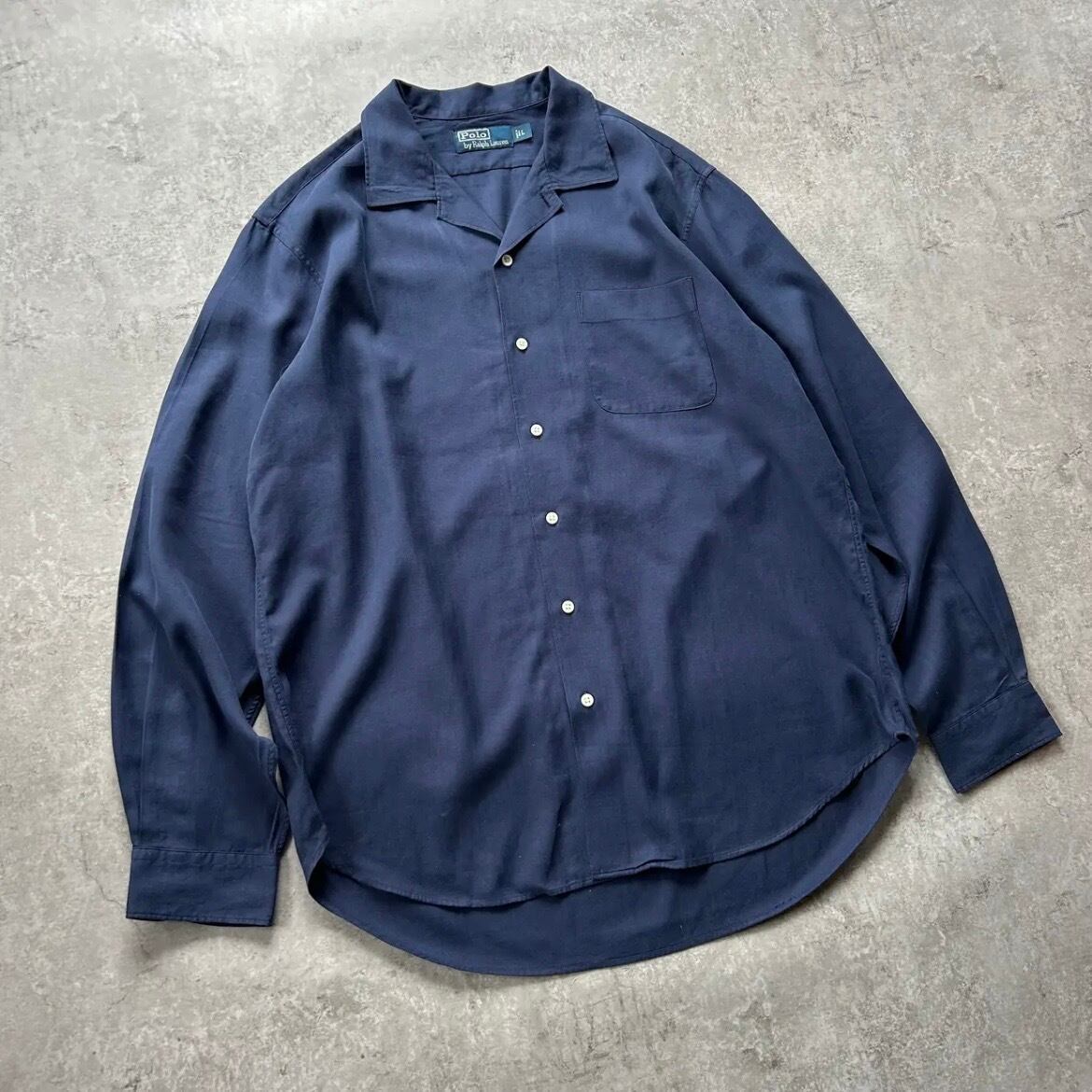 90s ラルフローレン 開襟シルクシャツ 長袖 ネイビー L ヘリンボーンツイル