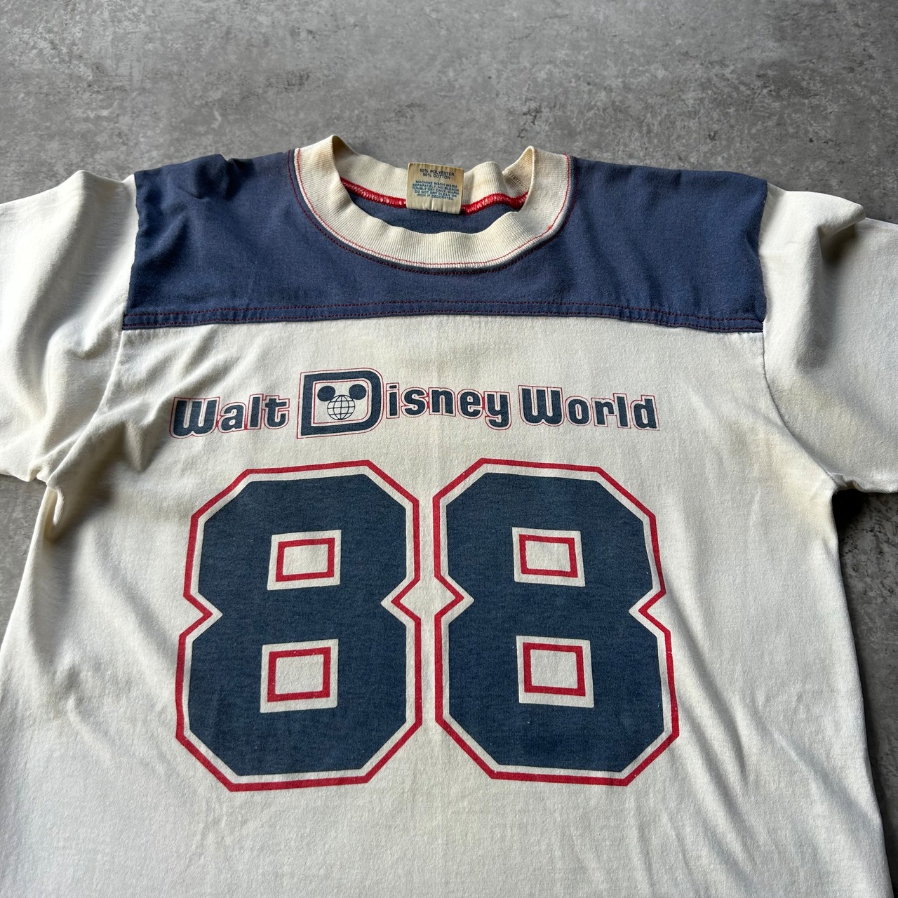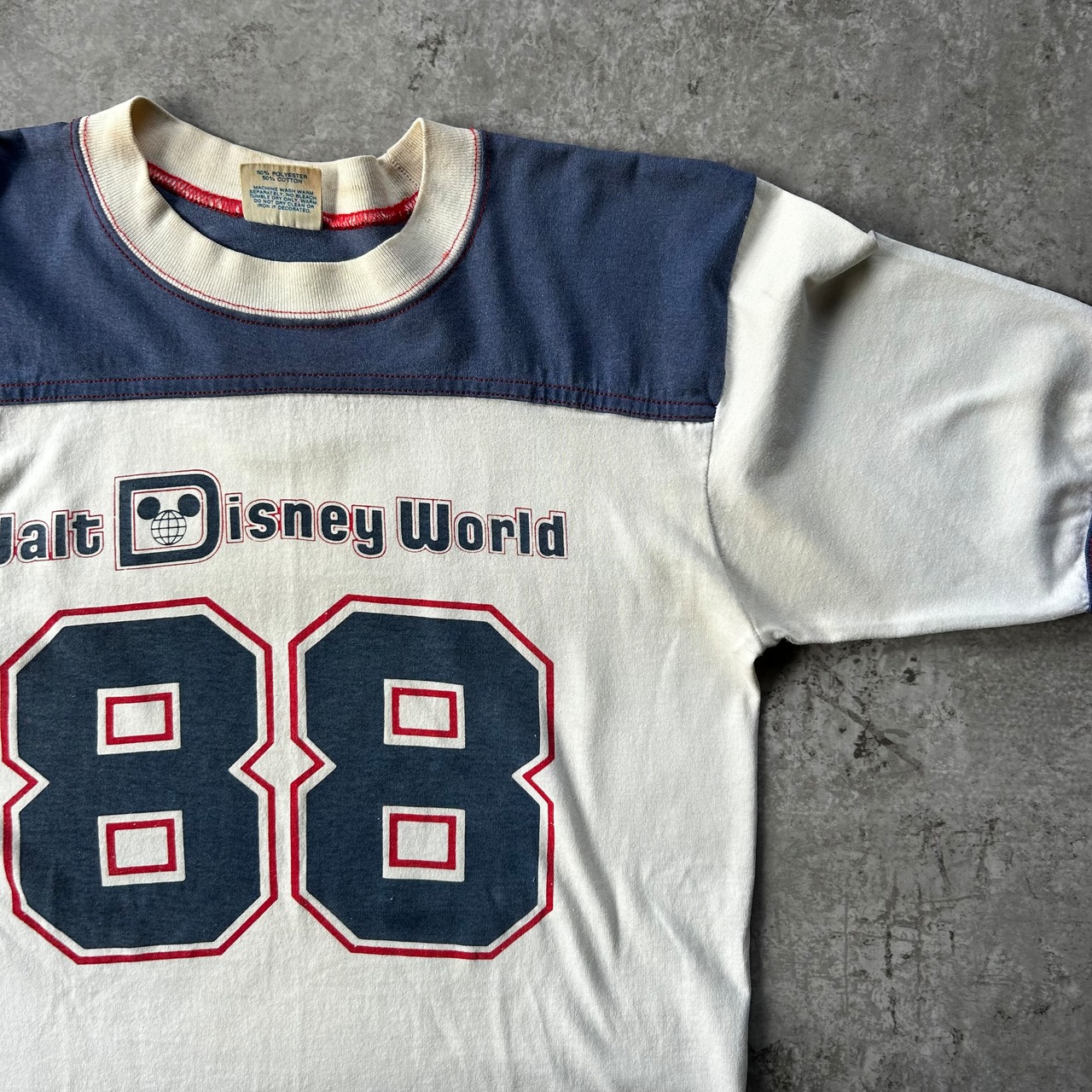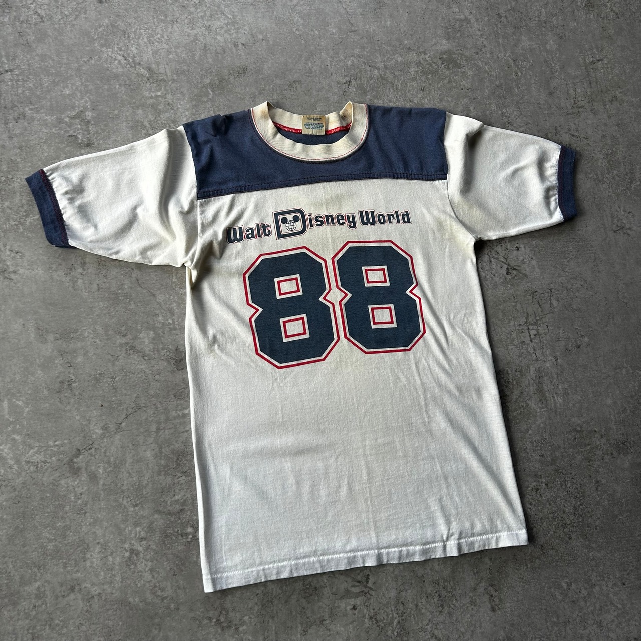 ディズニーヴィンテージとしてはやや珍しめなフットボールtシャツ型の一着。