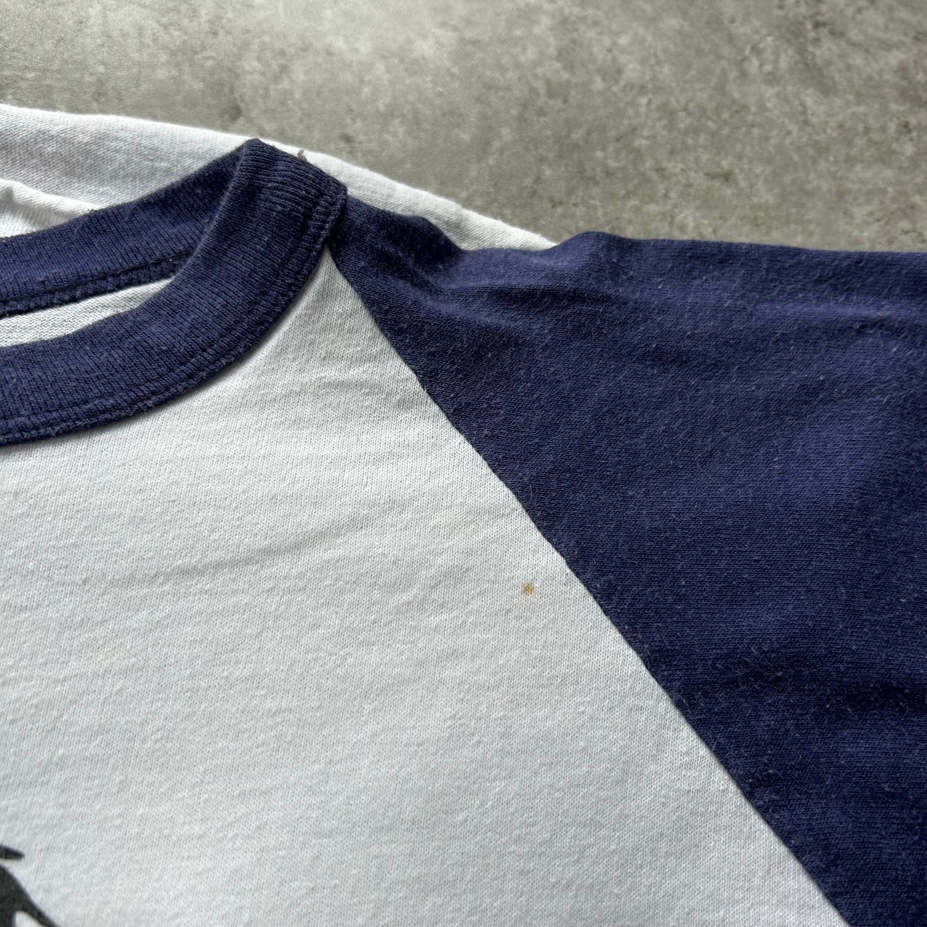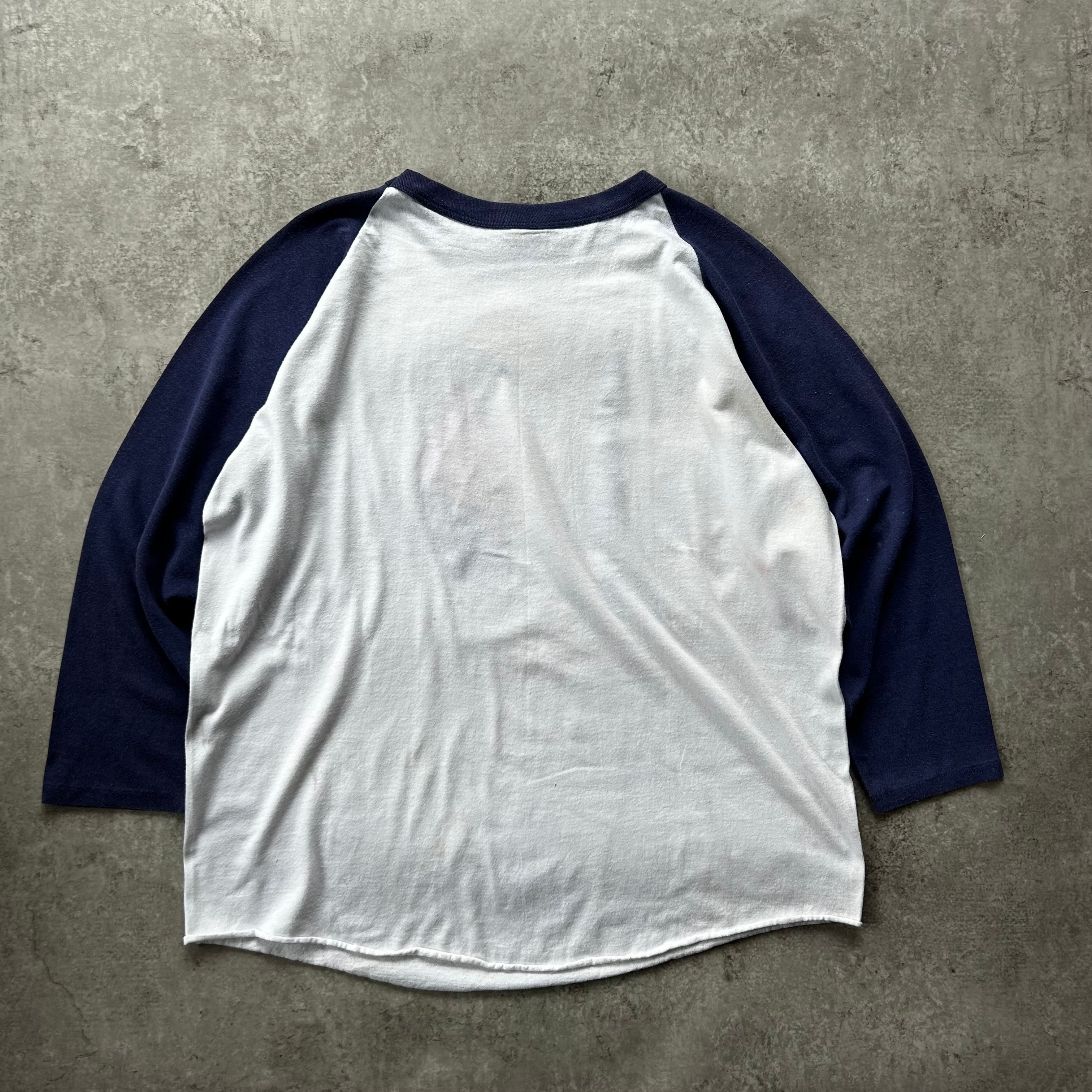 70s80s ラグランtシャツ USA製 XL ホワイト×ネイビー 七分丈