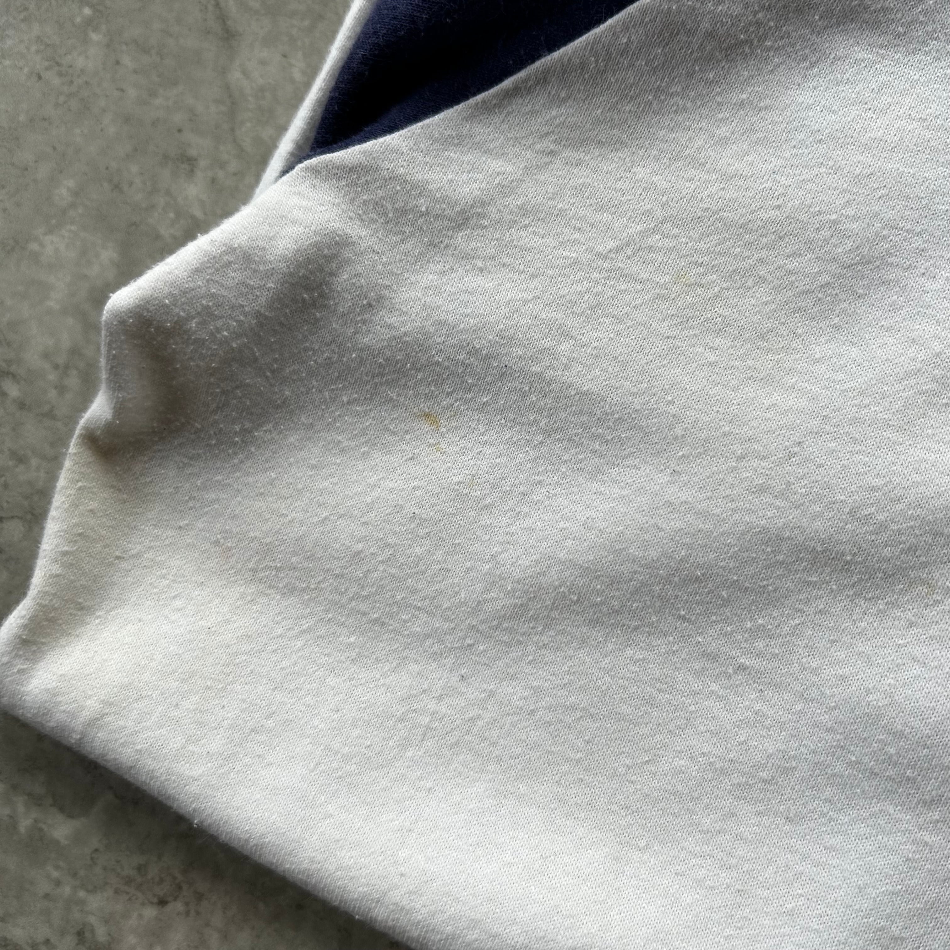 ホワイトボディにラグランはネイビーと定番の配色で、嬉しいXL表記の大きめなサイズが◎