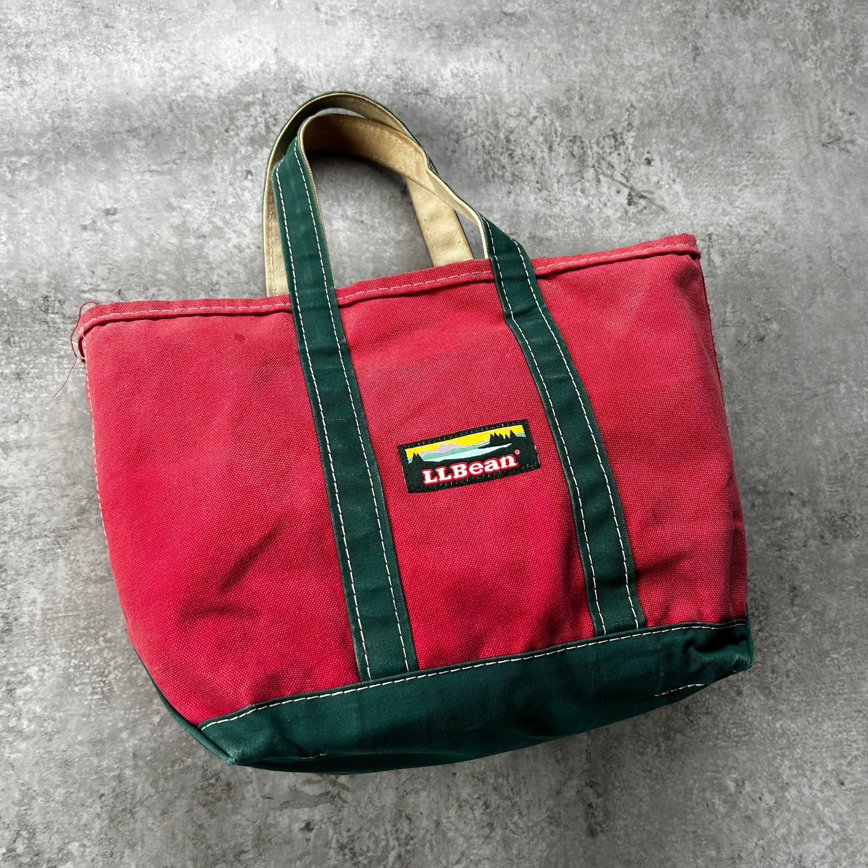 80s90s エルエルビーン デラックストートバッグ レッド×グリーン M