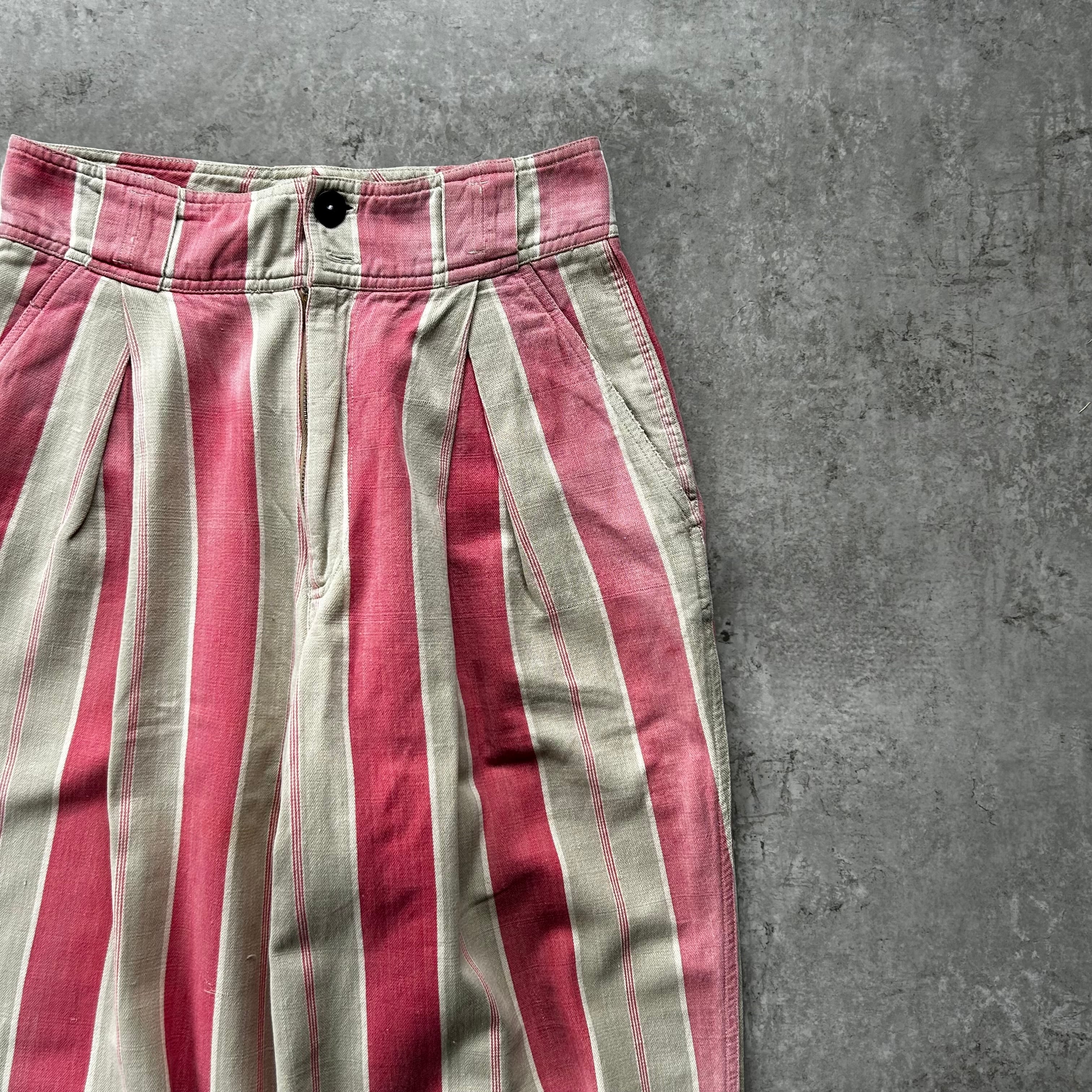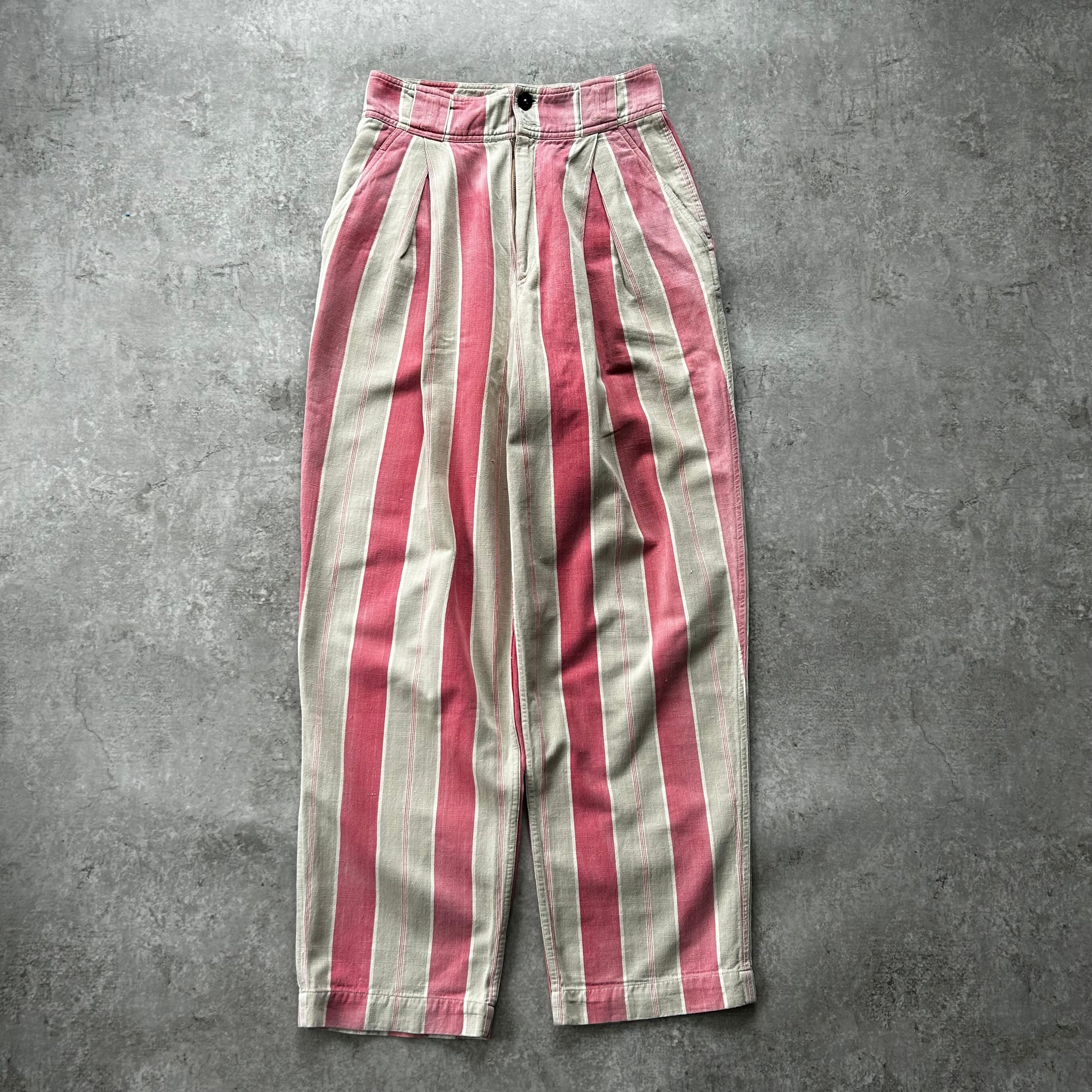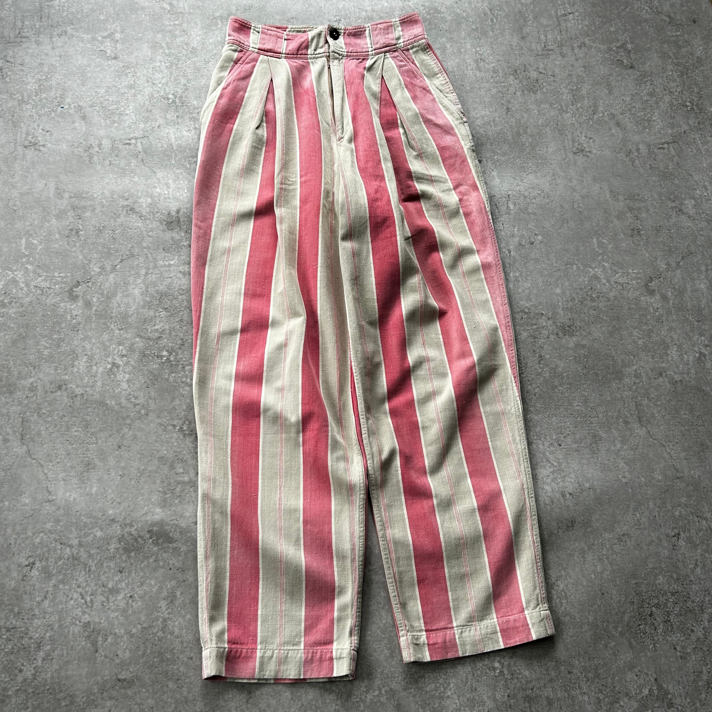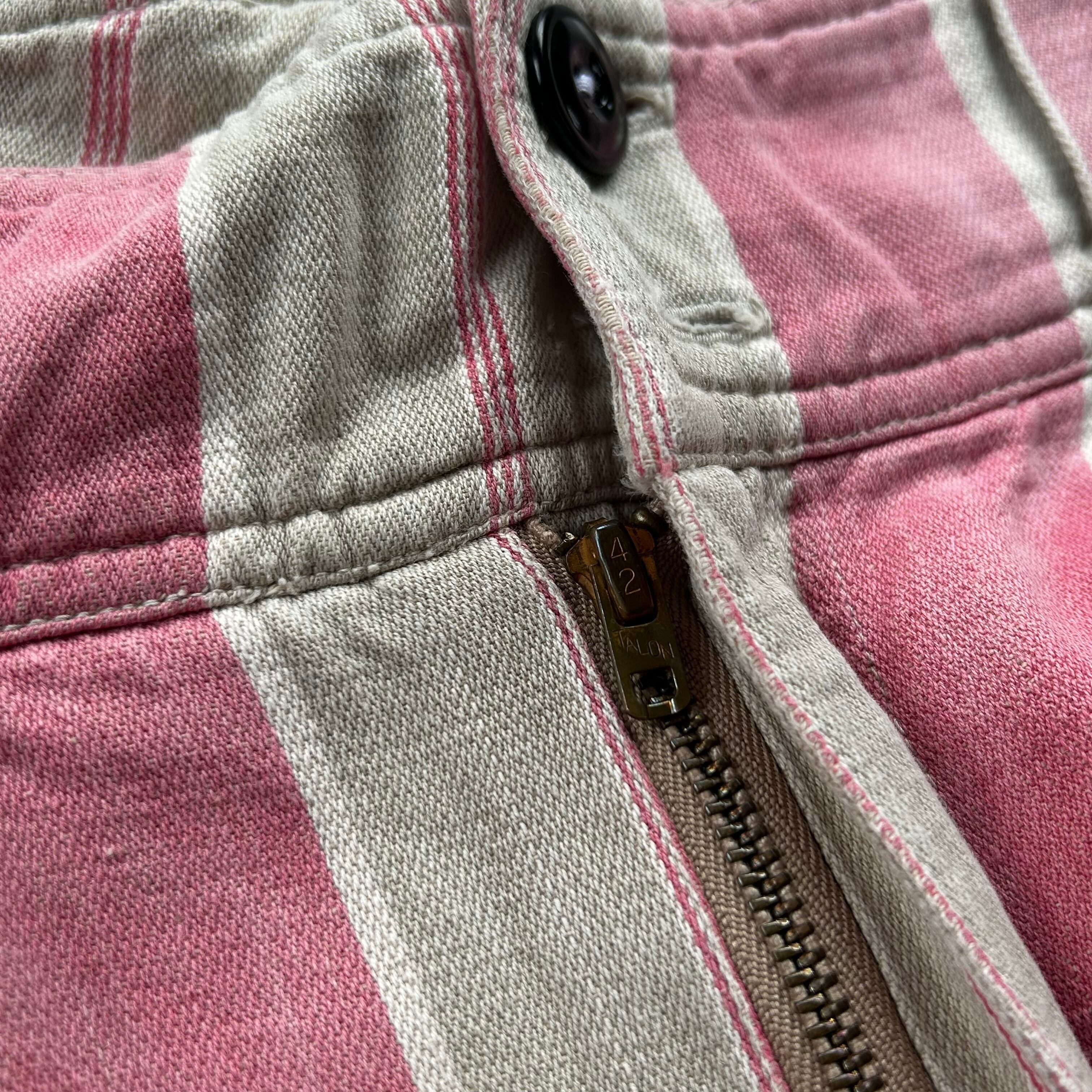 80s90s ポロカントリー ストライプワークパンツ USA製 グレー×ピンク