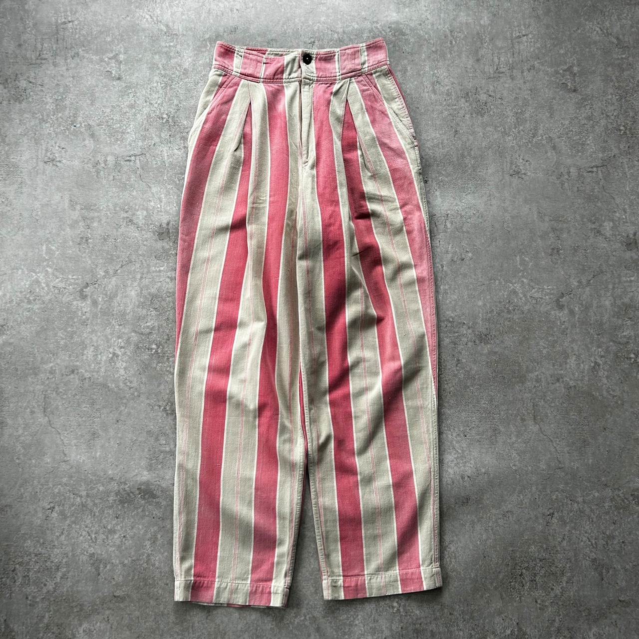 グレー×ピンクの好配色なストライプ柄がリアルなヴィンテージ調。