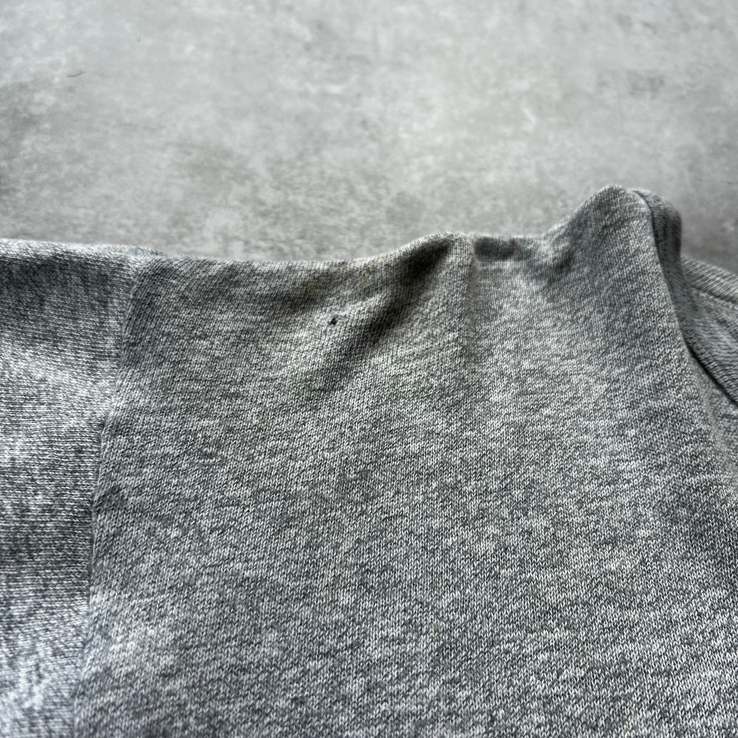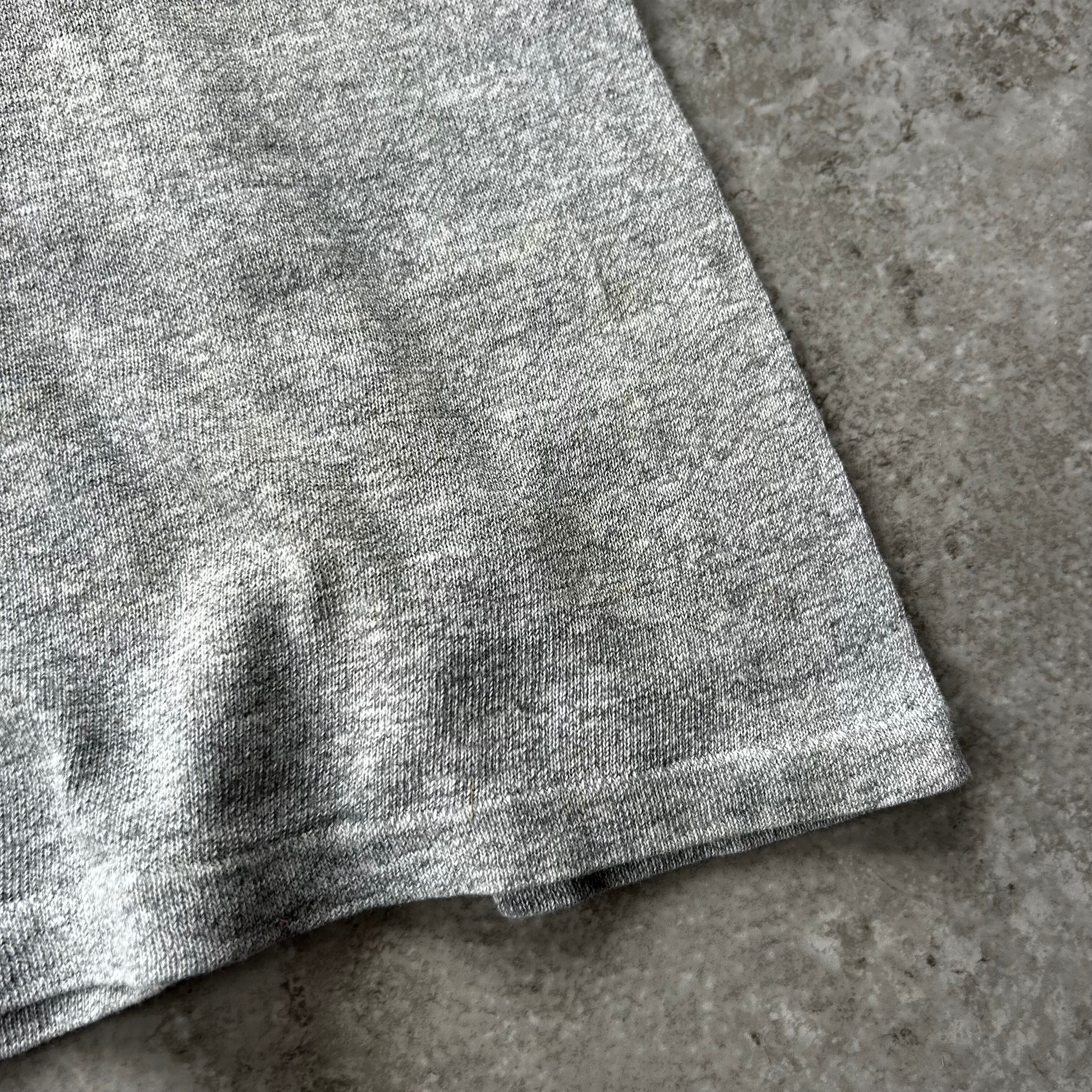 ヴィンテージ古着らしい杢グレーボディに三段プリントは染み込みプリント。
