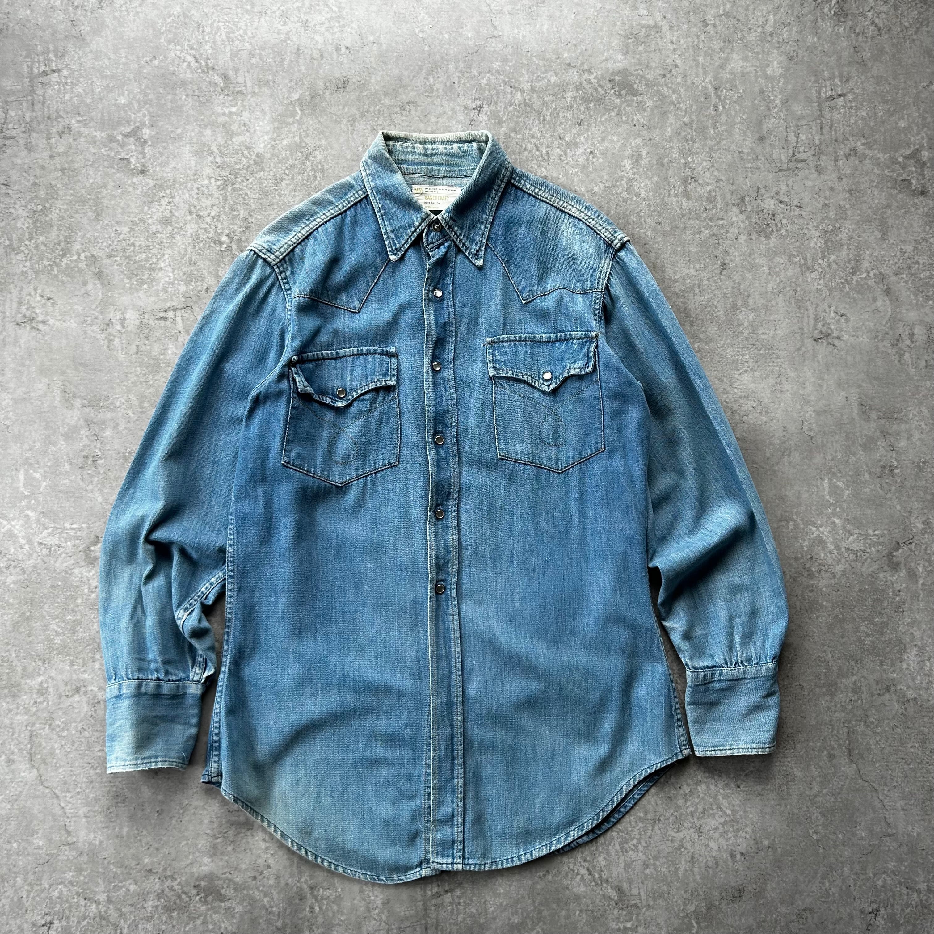 1970年代「j.c.penney:ranch craft/ジェーシーペニー:ランチクラフト」のウエスタンシャツ型のデニムシャツです。