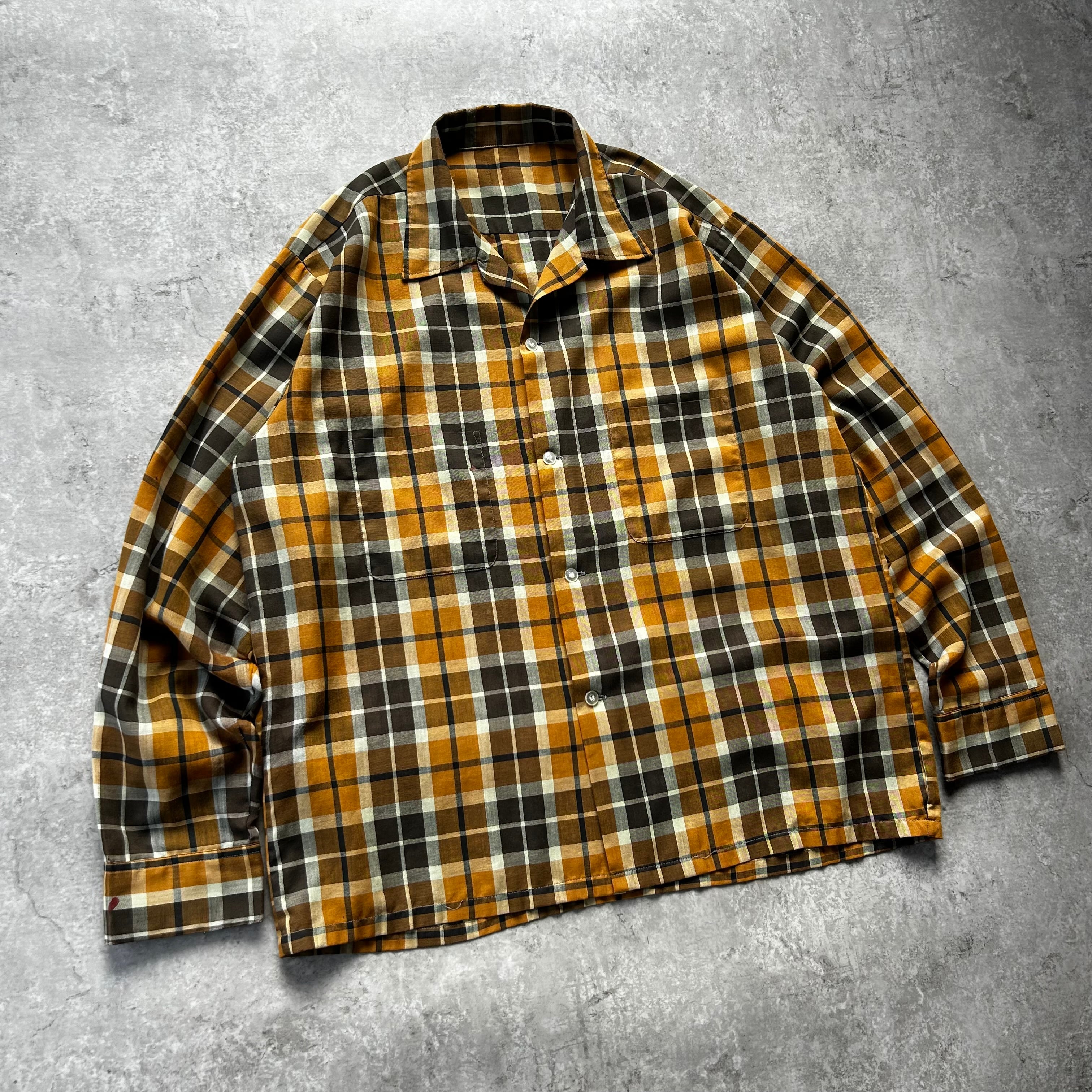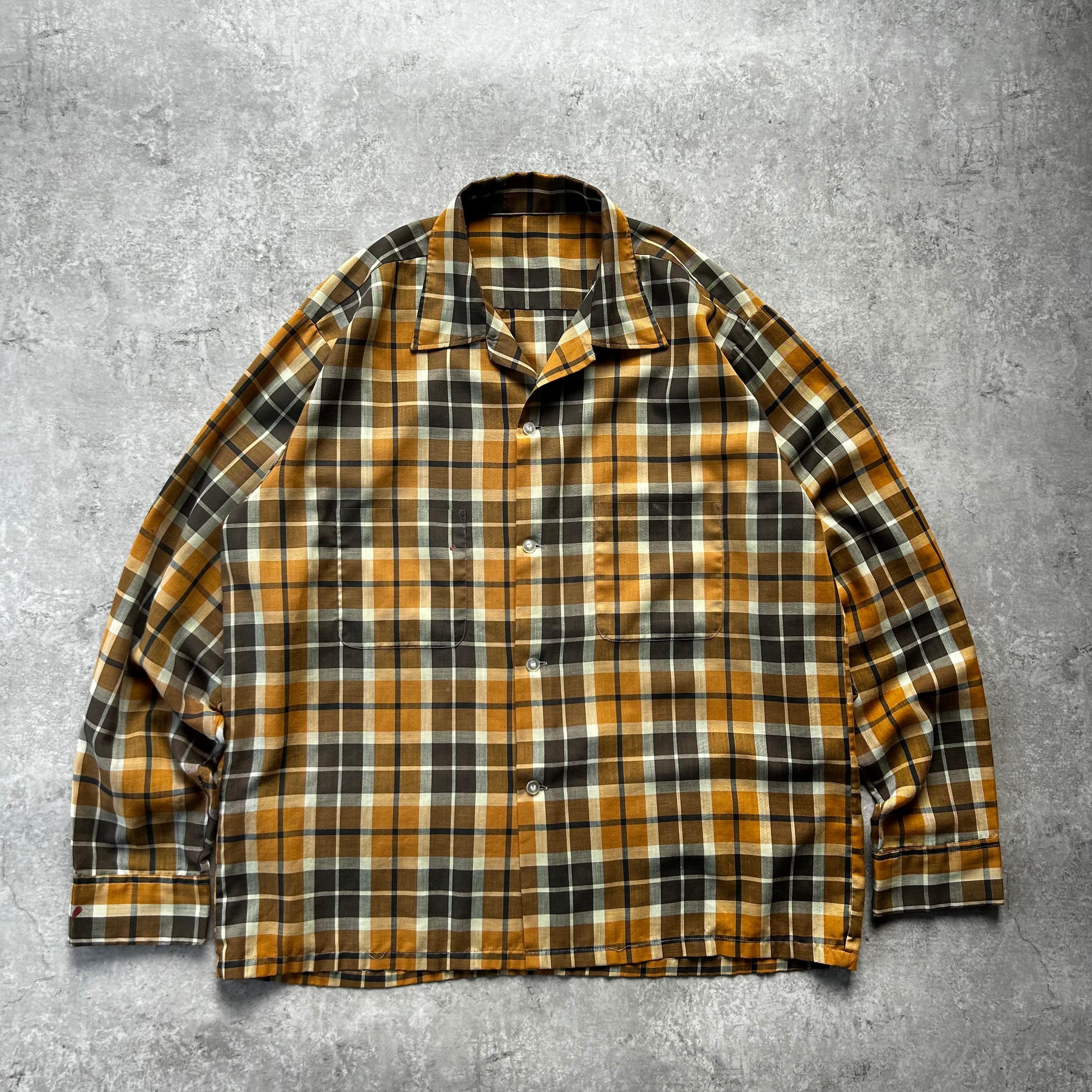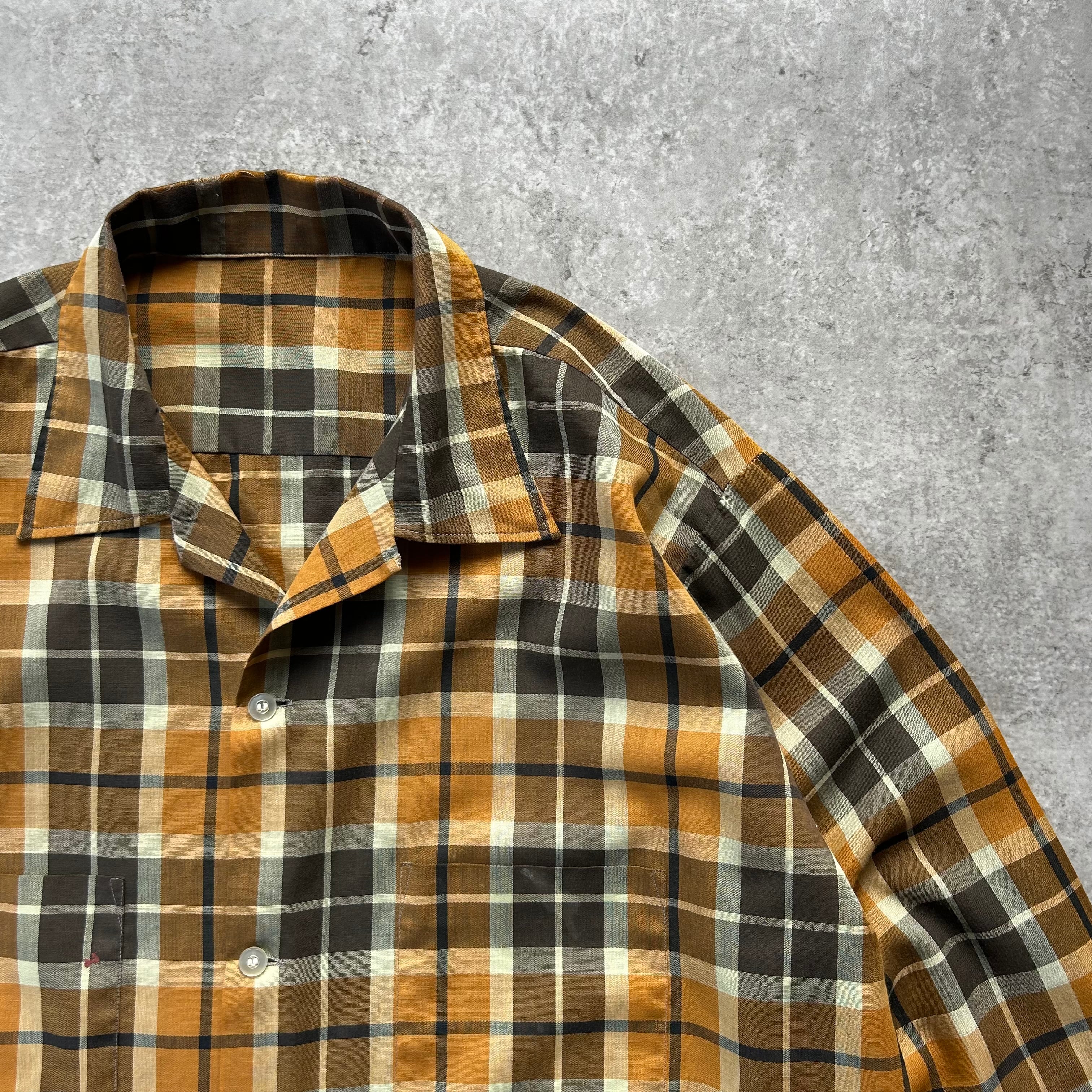 60s70s オープンカラーシャツ XL相当 マスタード×ブラウン ボックス