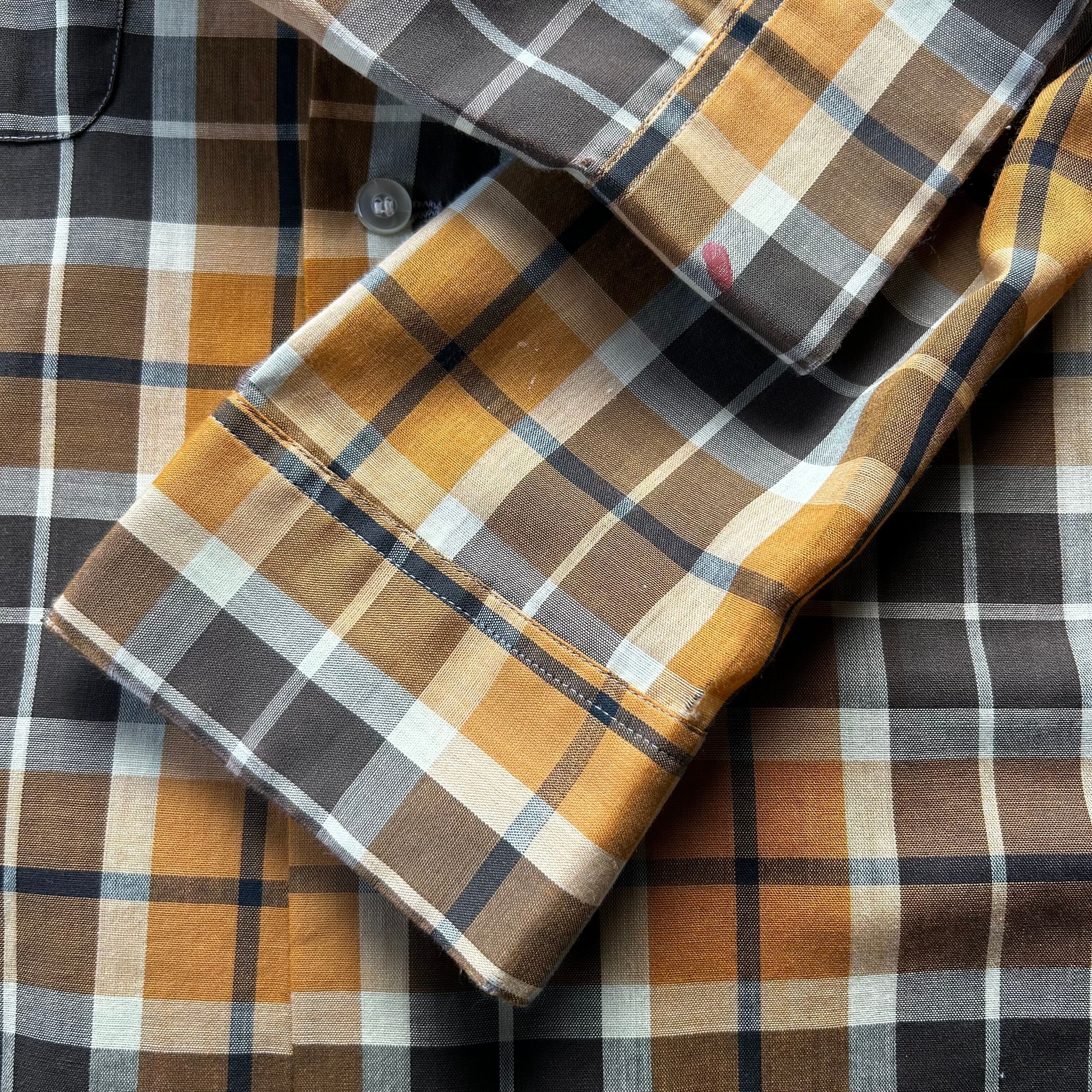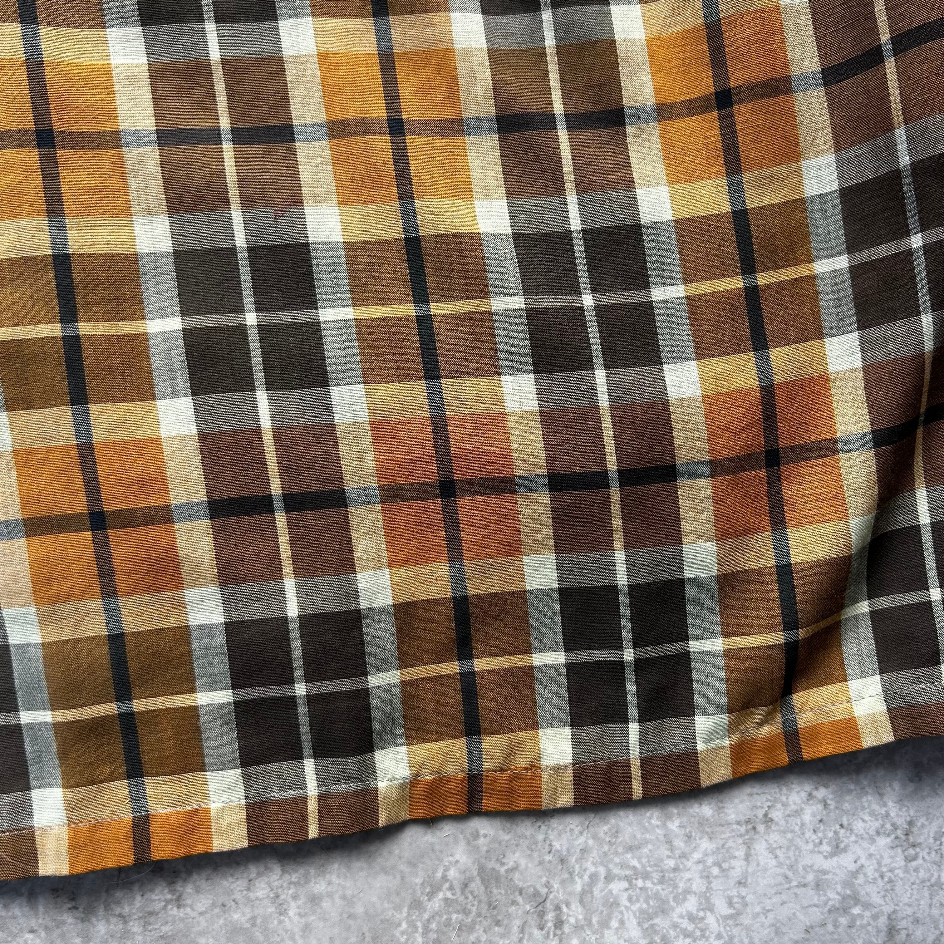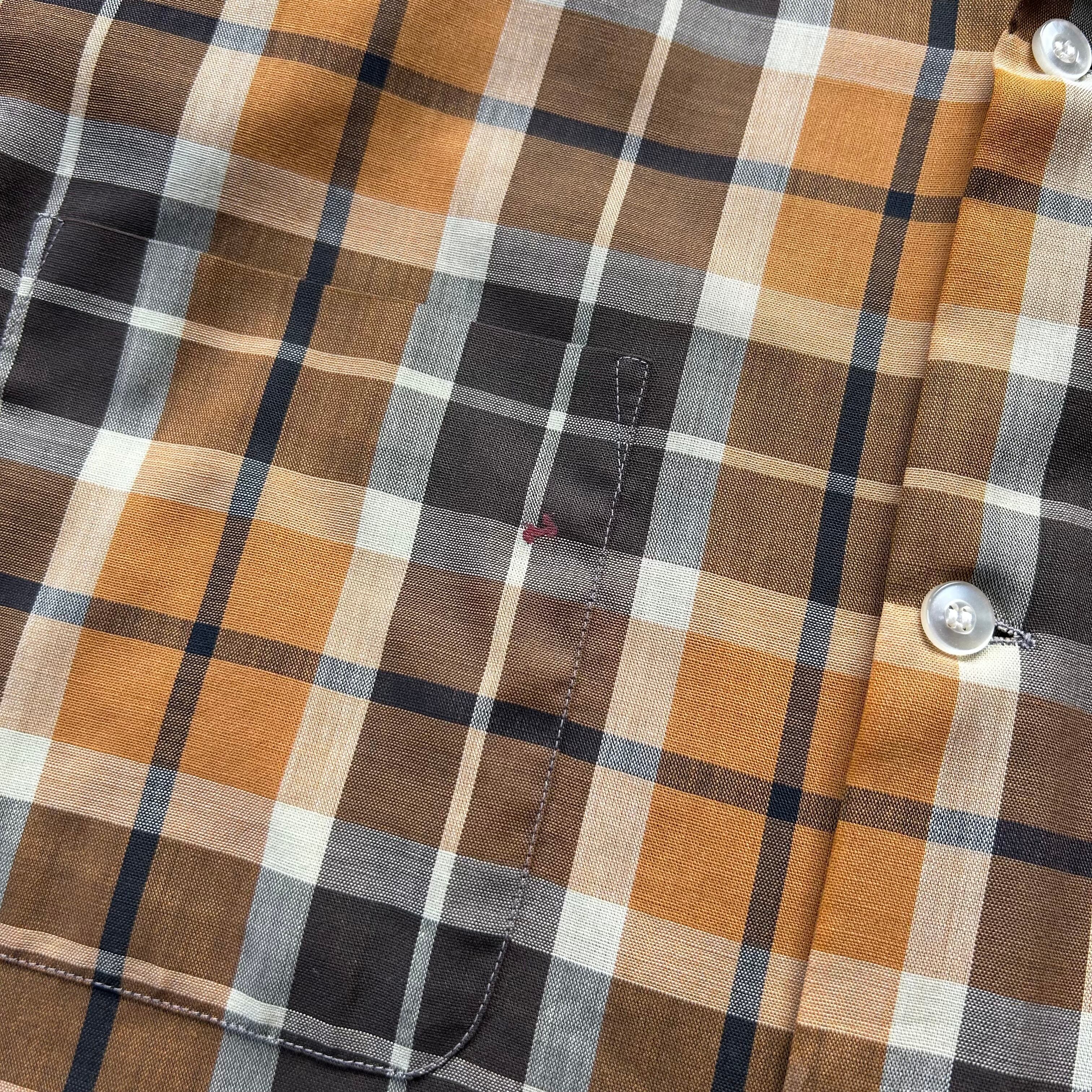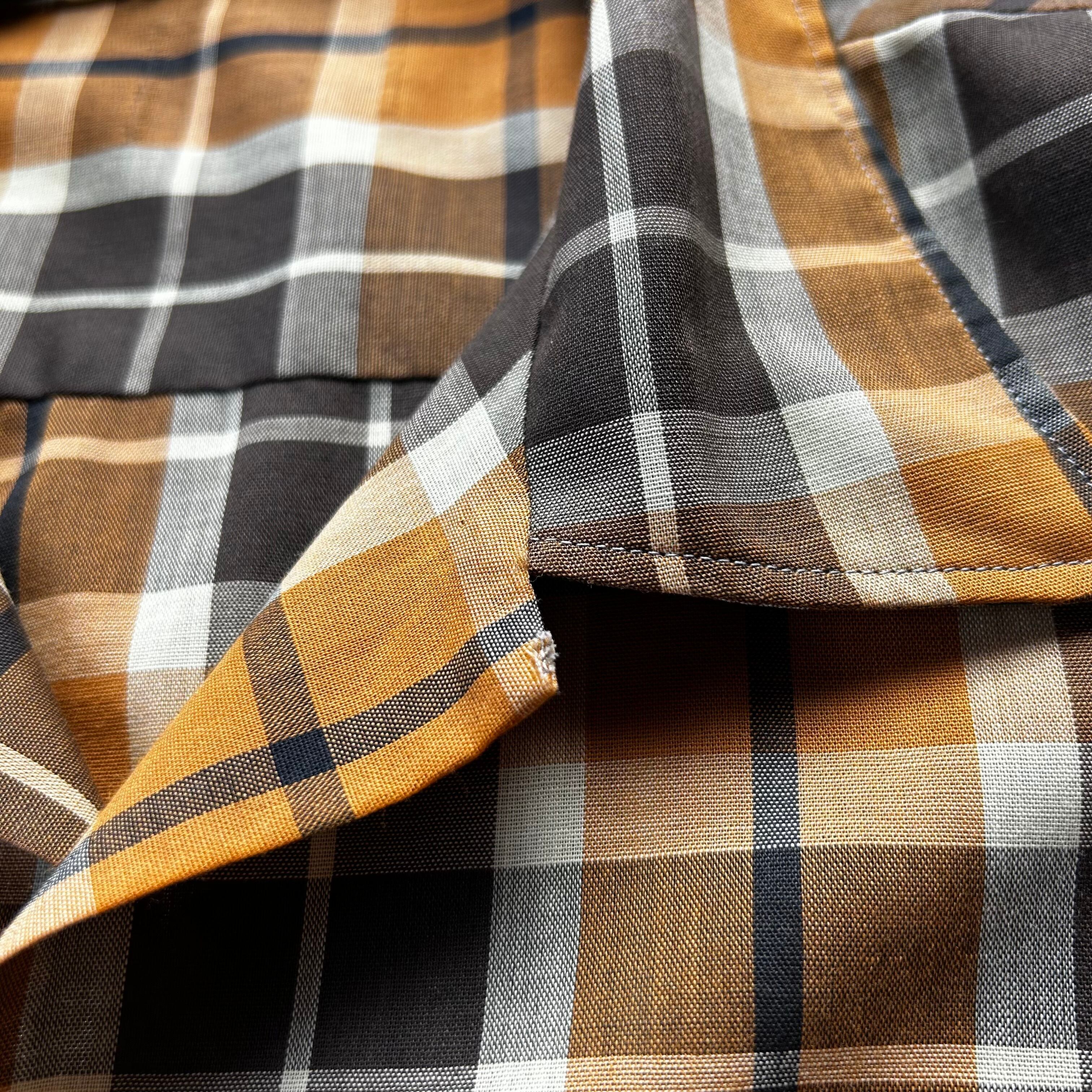 60s70s オープンカラーシャツ XL相当 マスタード×ブラウン ボックス