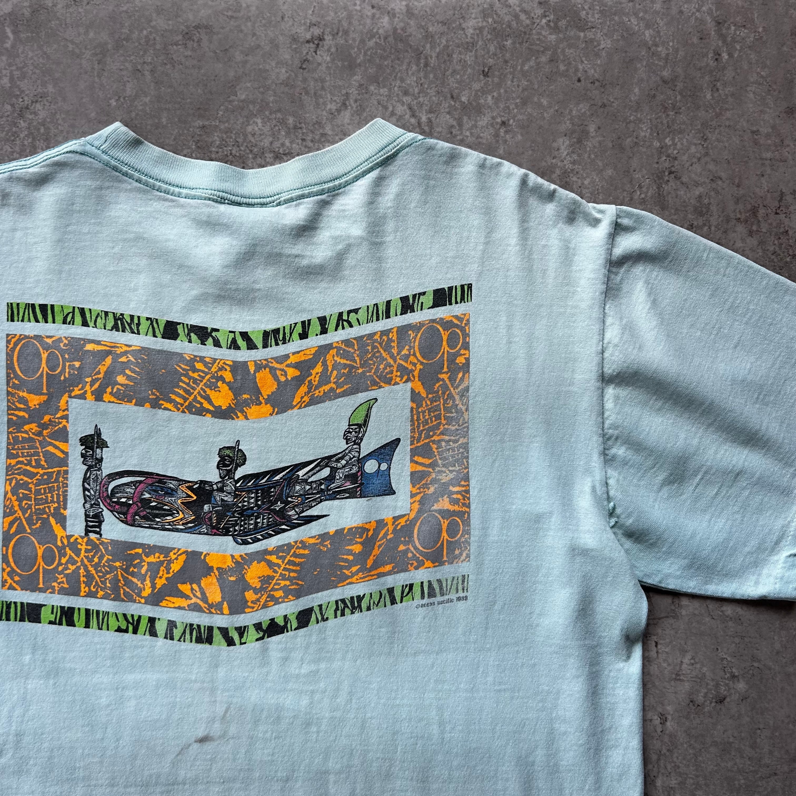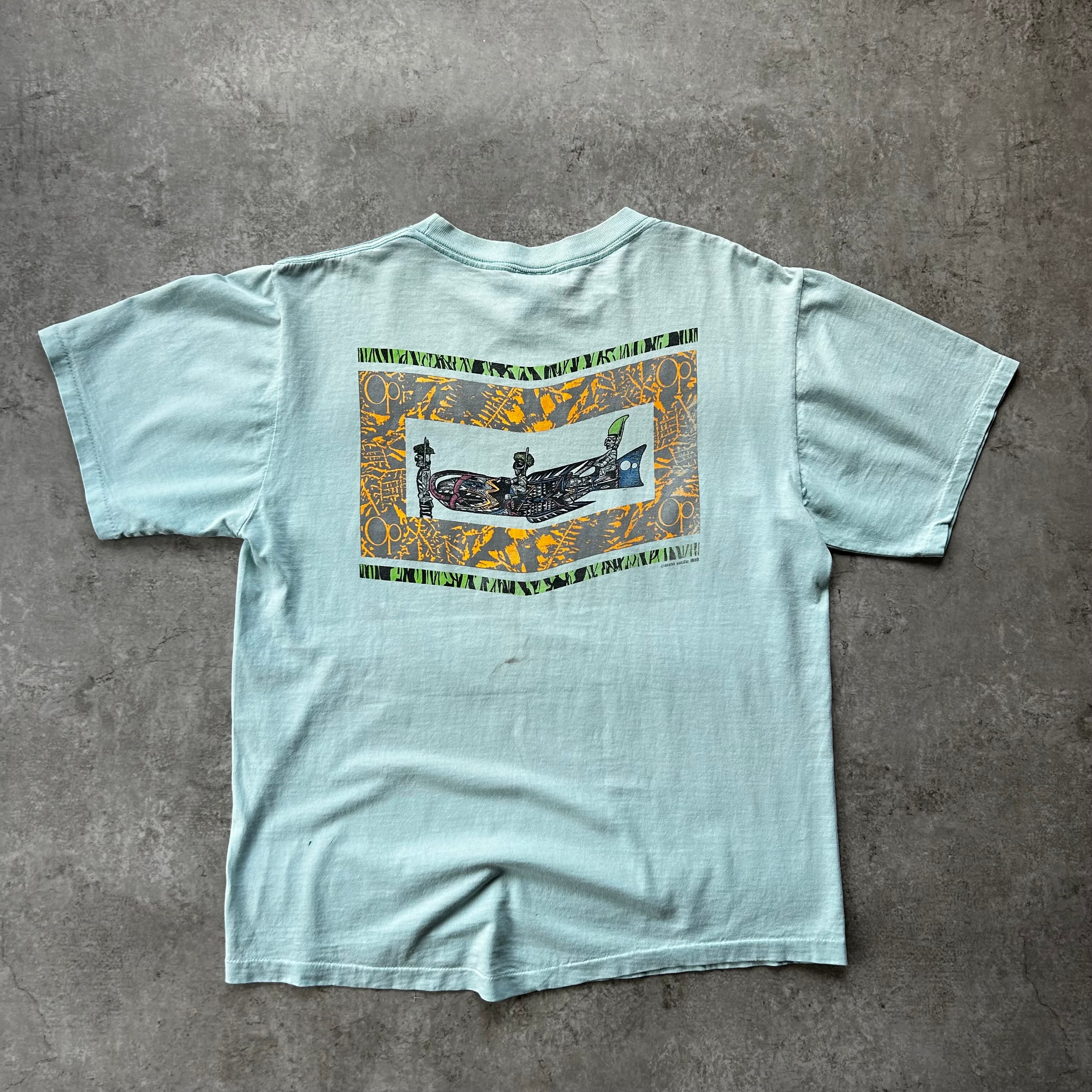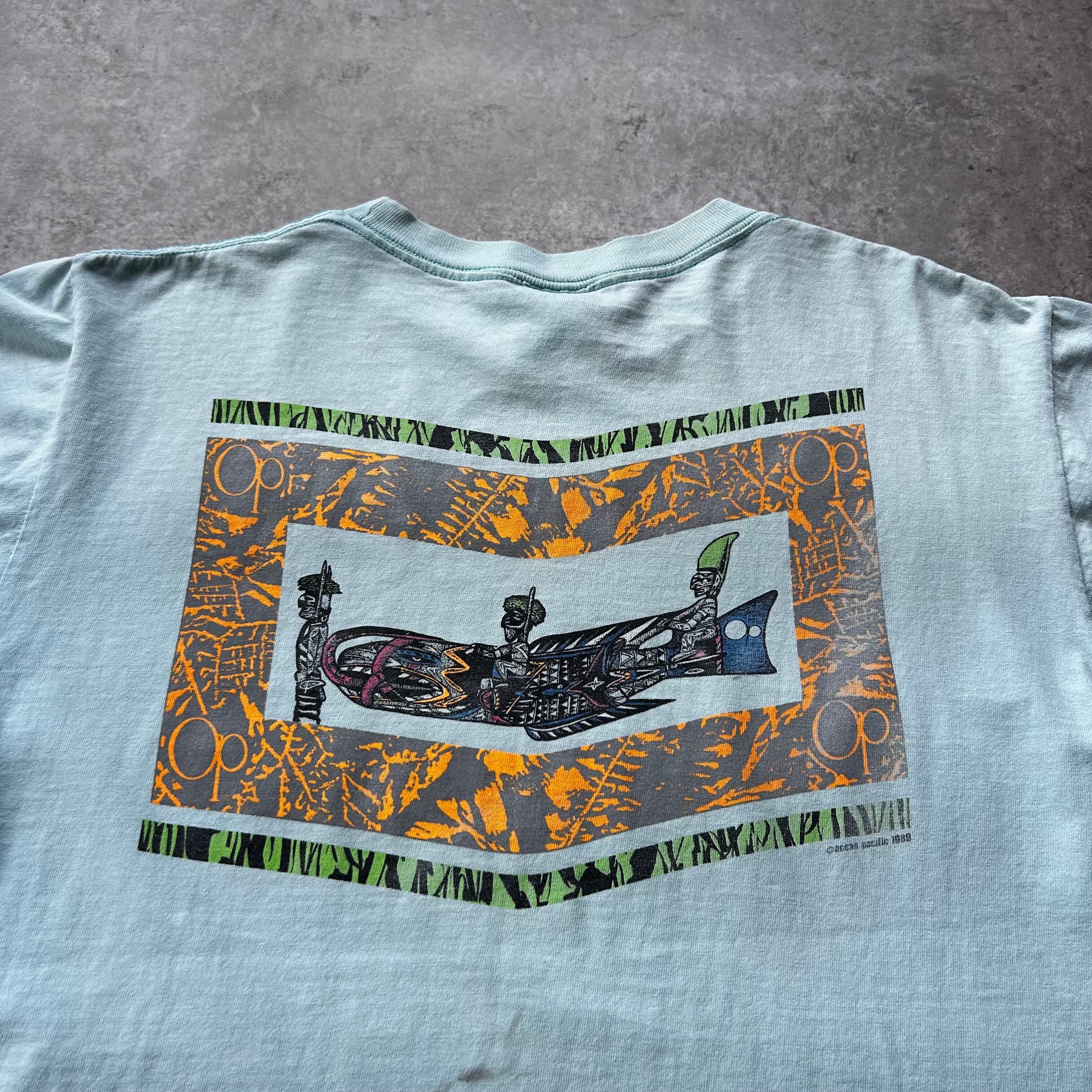 80s オーシャンパシフィック tシャツ USA製 ライトブルー L ネイティブ
