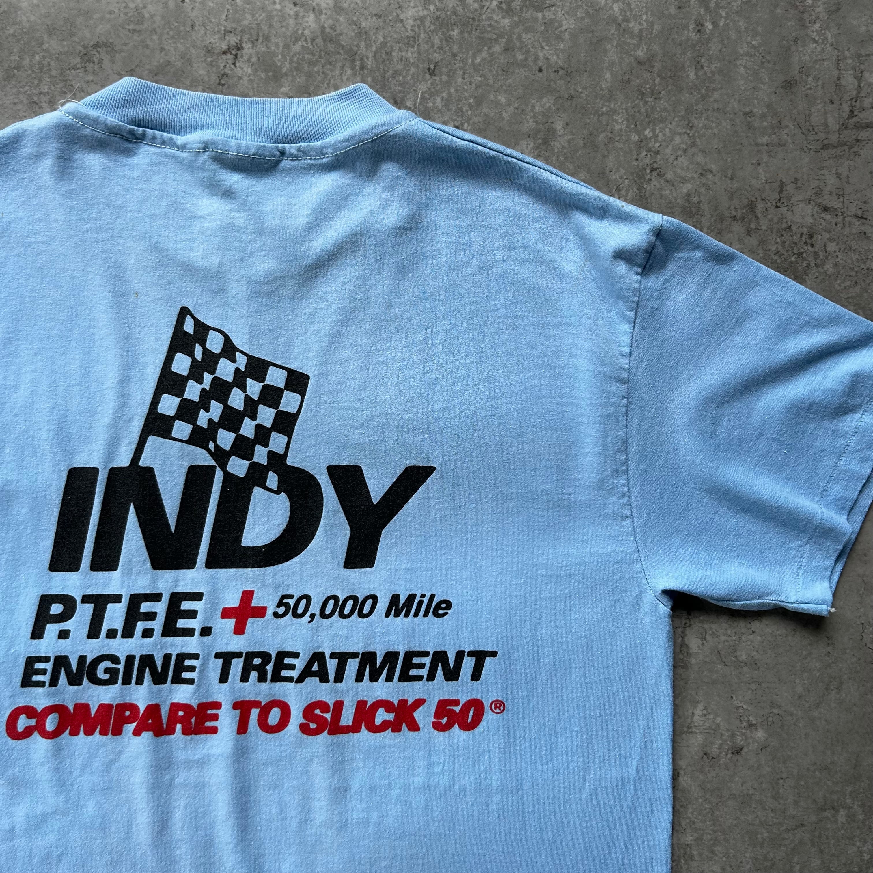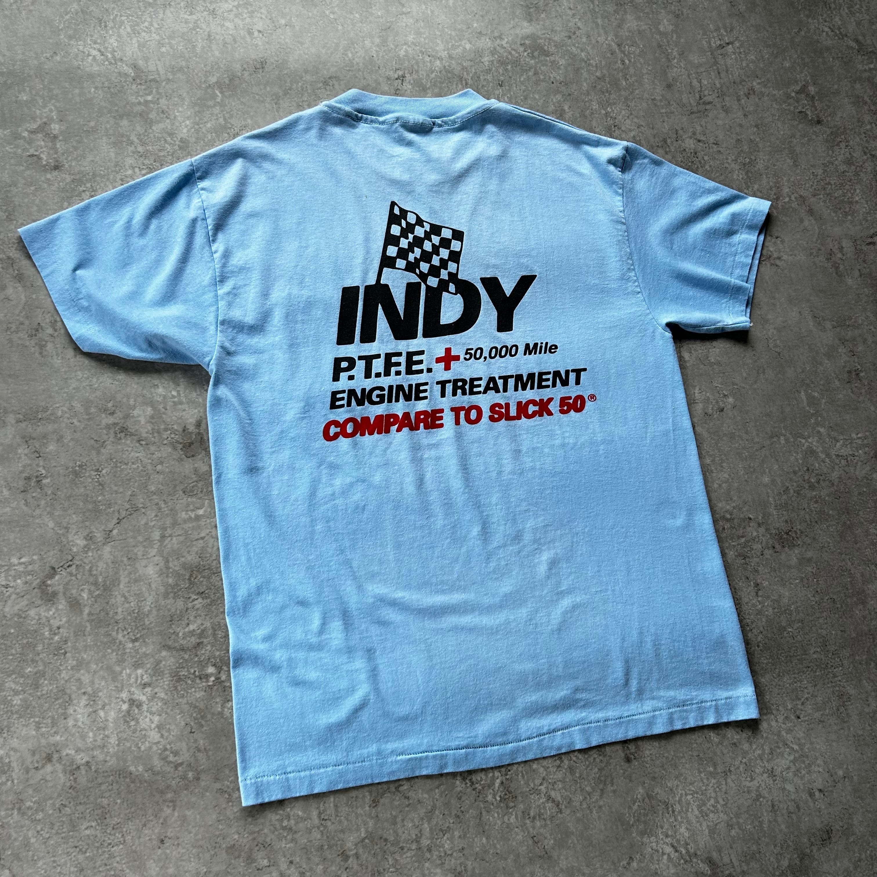 インディ社によるエンジン添加剤・潤滑系商品の販促Tシャツの一着。